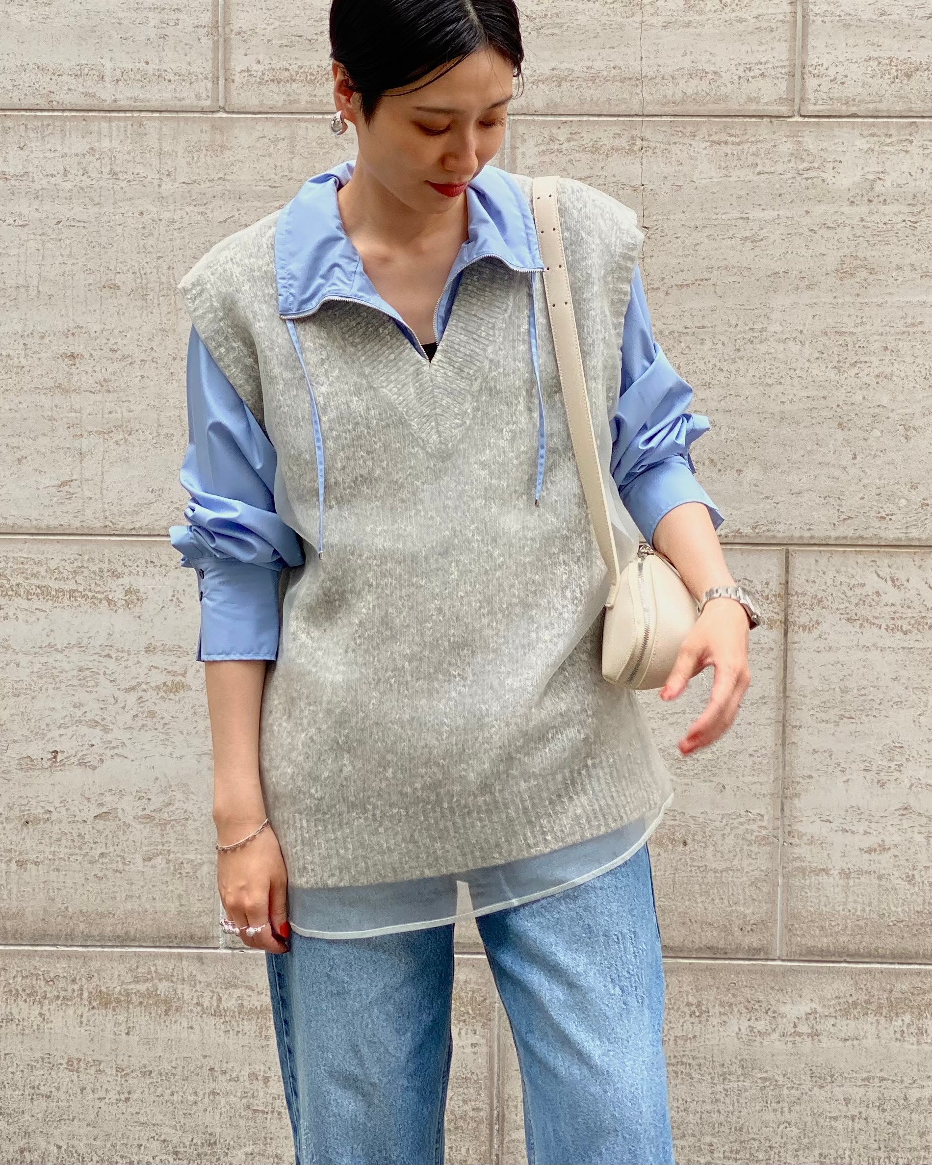 ほっこり感のあるニットと軽やかなオーガンジーが