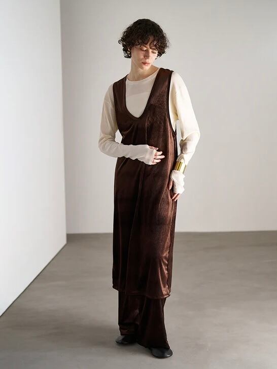 ベルベット特有の上品な光沢感を表現したカットソー素材のリラックスワンピース。