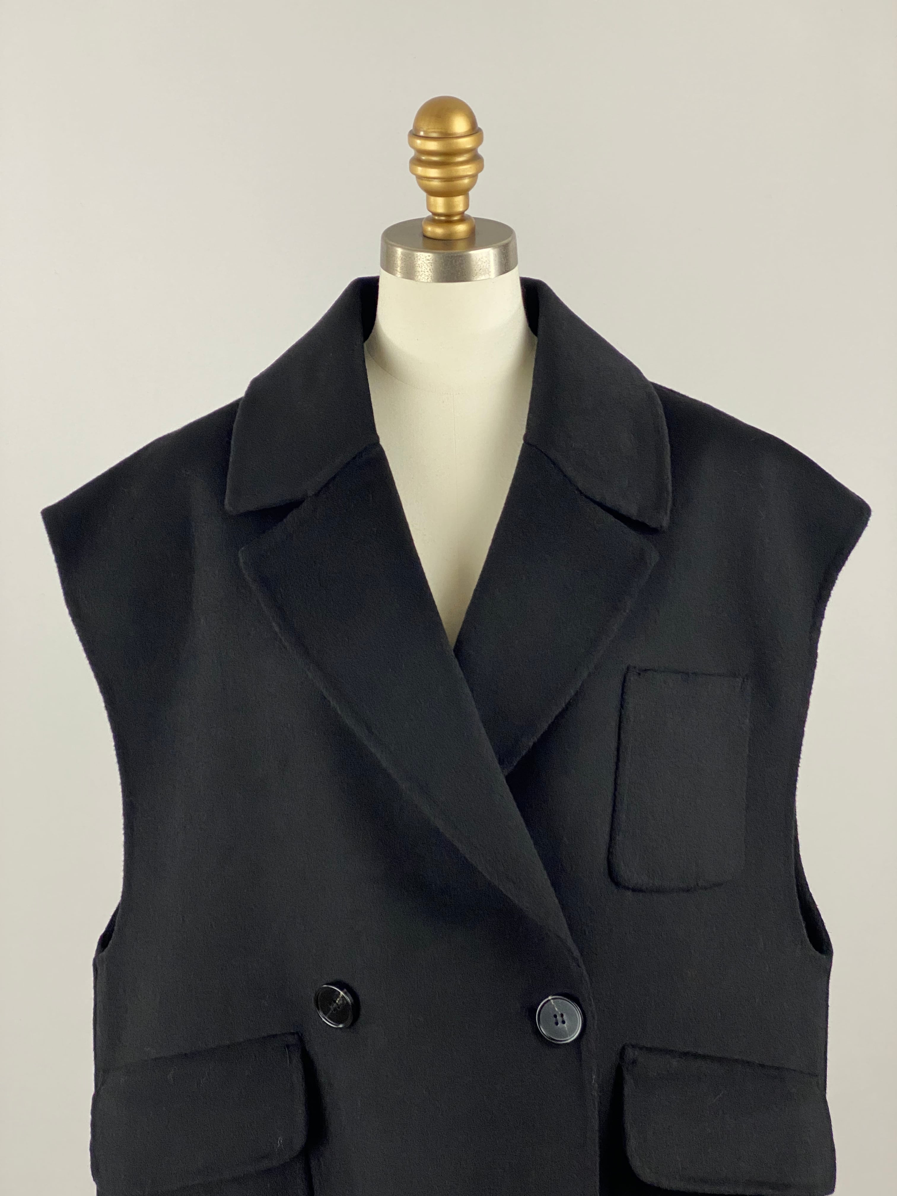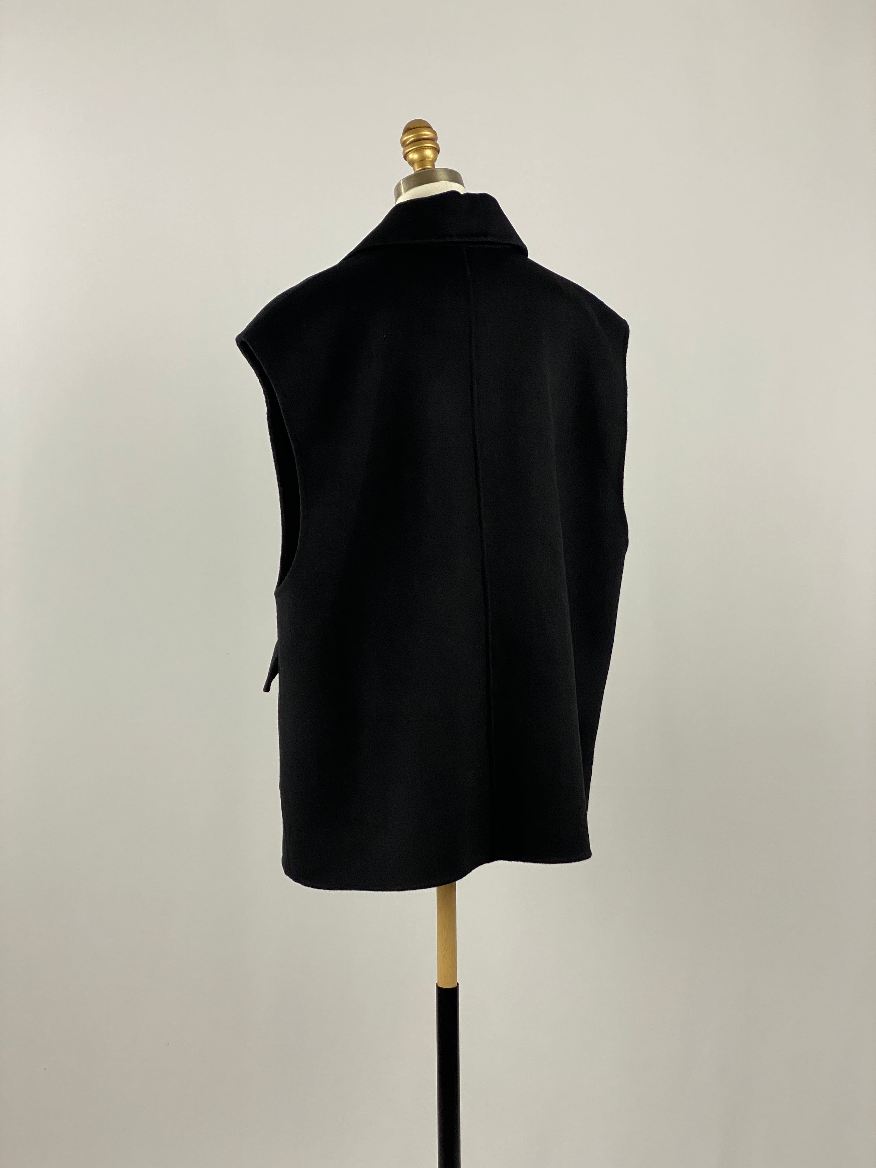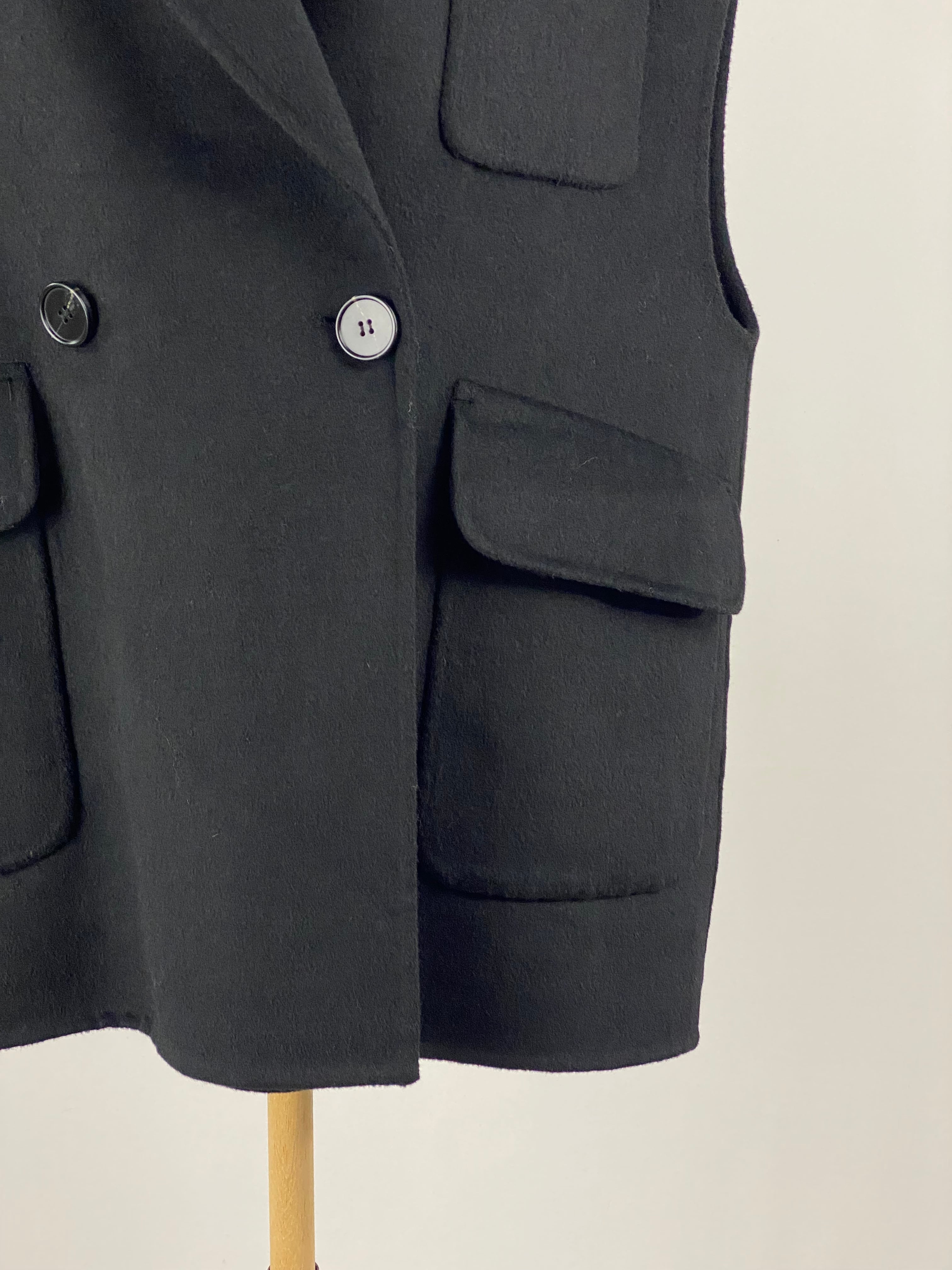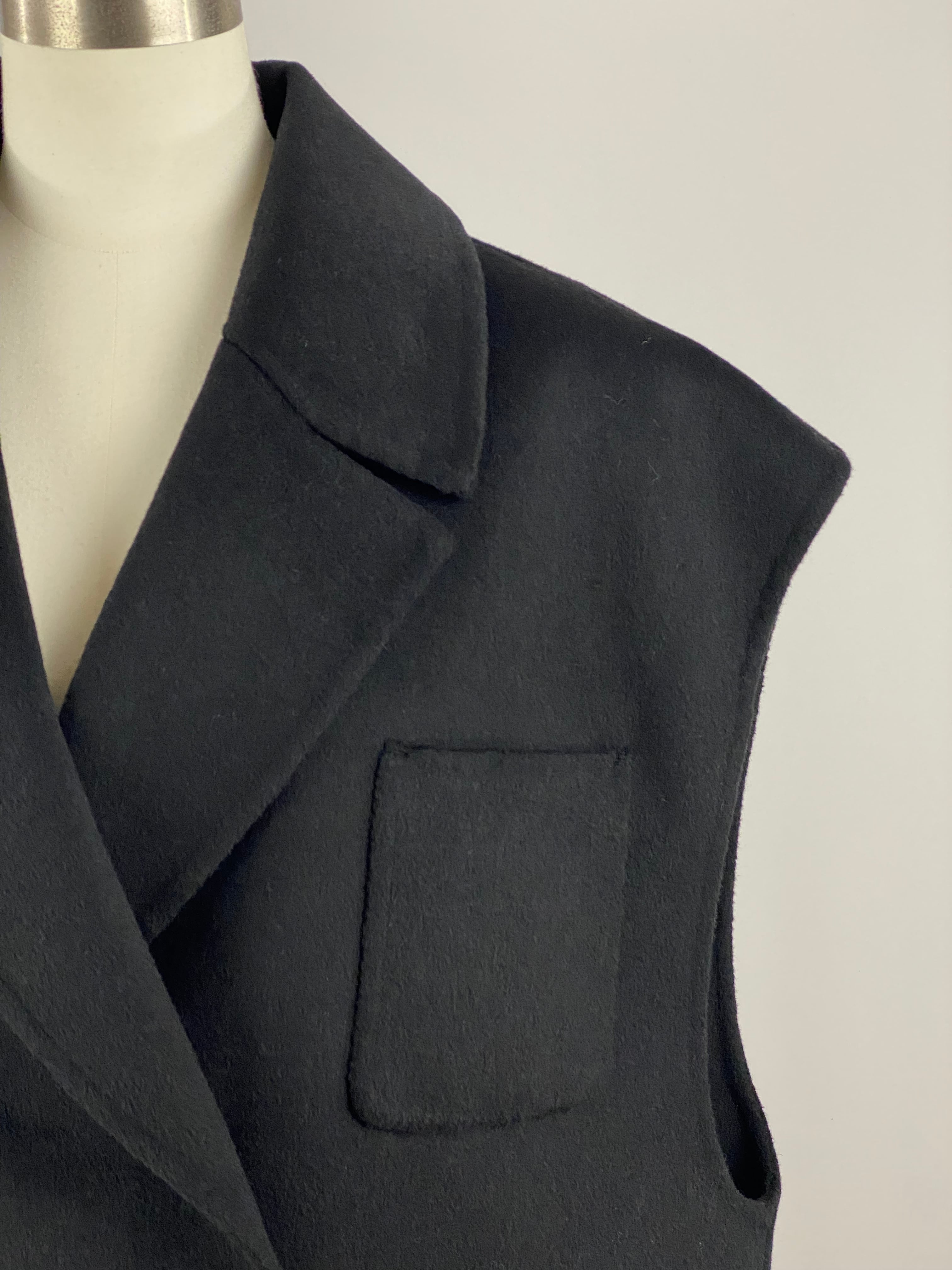 リバー仕立てのベスト型ジャケットです。 リバー仕立てとは、2枚の生地を貼り合わせ、手作業でまつり縫いをすることで、縫い目が見えない洗練されたデザインになる仕立てで、軽くて柔らかい着心地が特徴です。