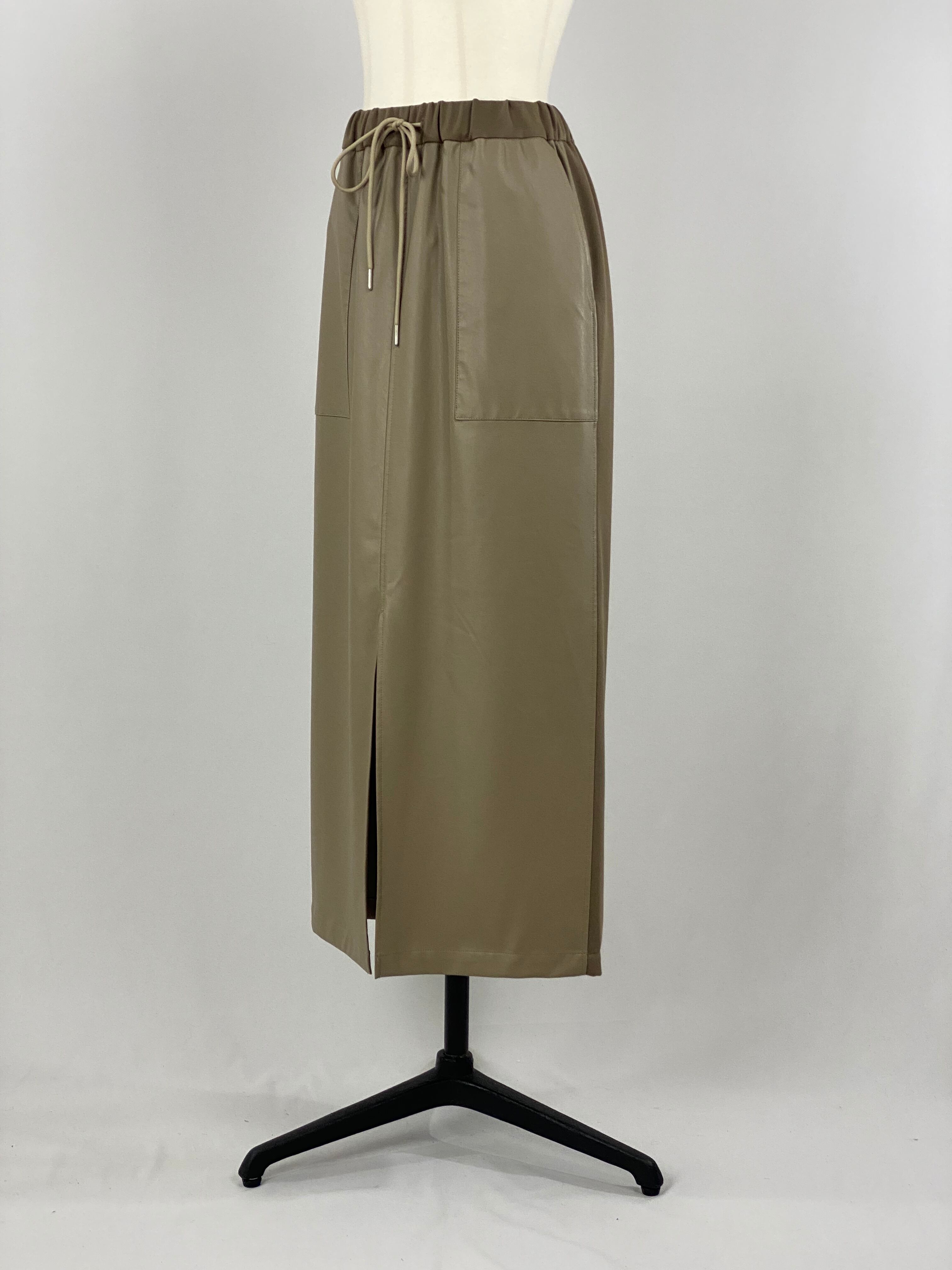 フェイクレザーベイカースカート|ベージュ|CHIGNON