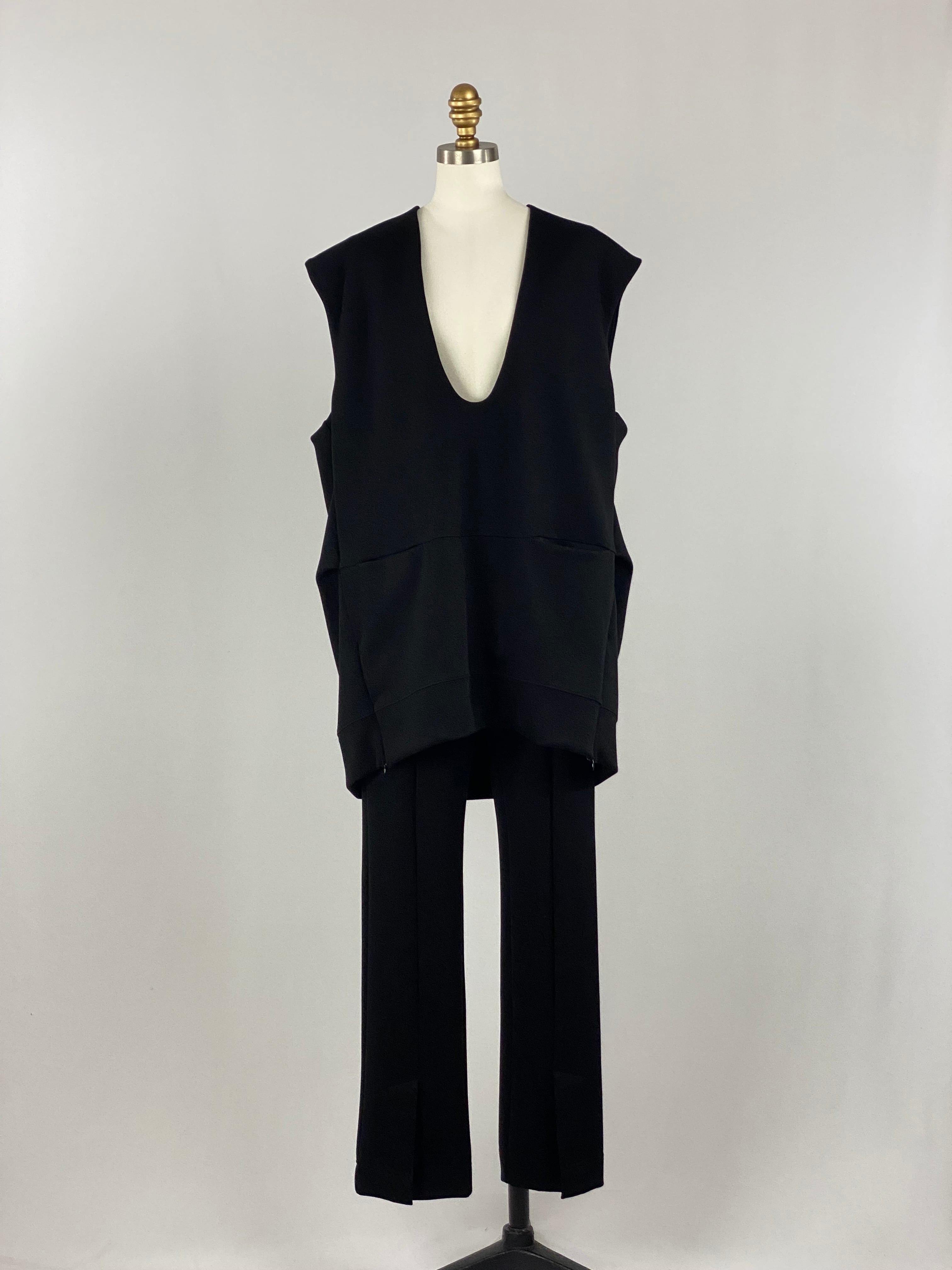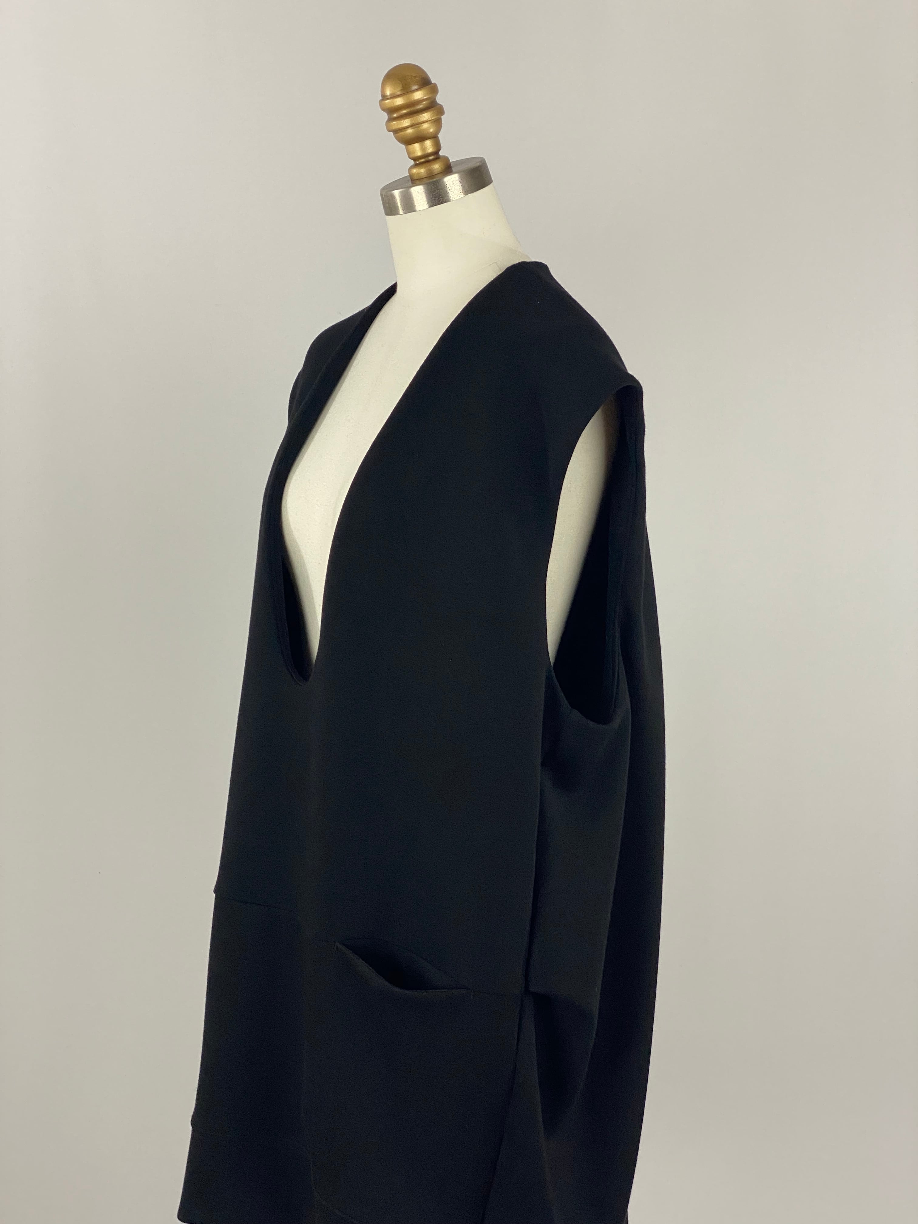 ゆったりめのシルエットにヒップが隠れる丈感で、フロントは切り替え部分にポケットがついています。