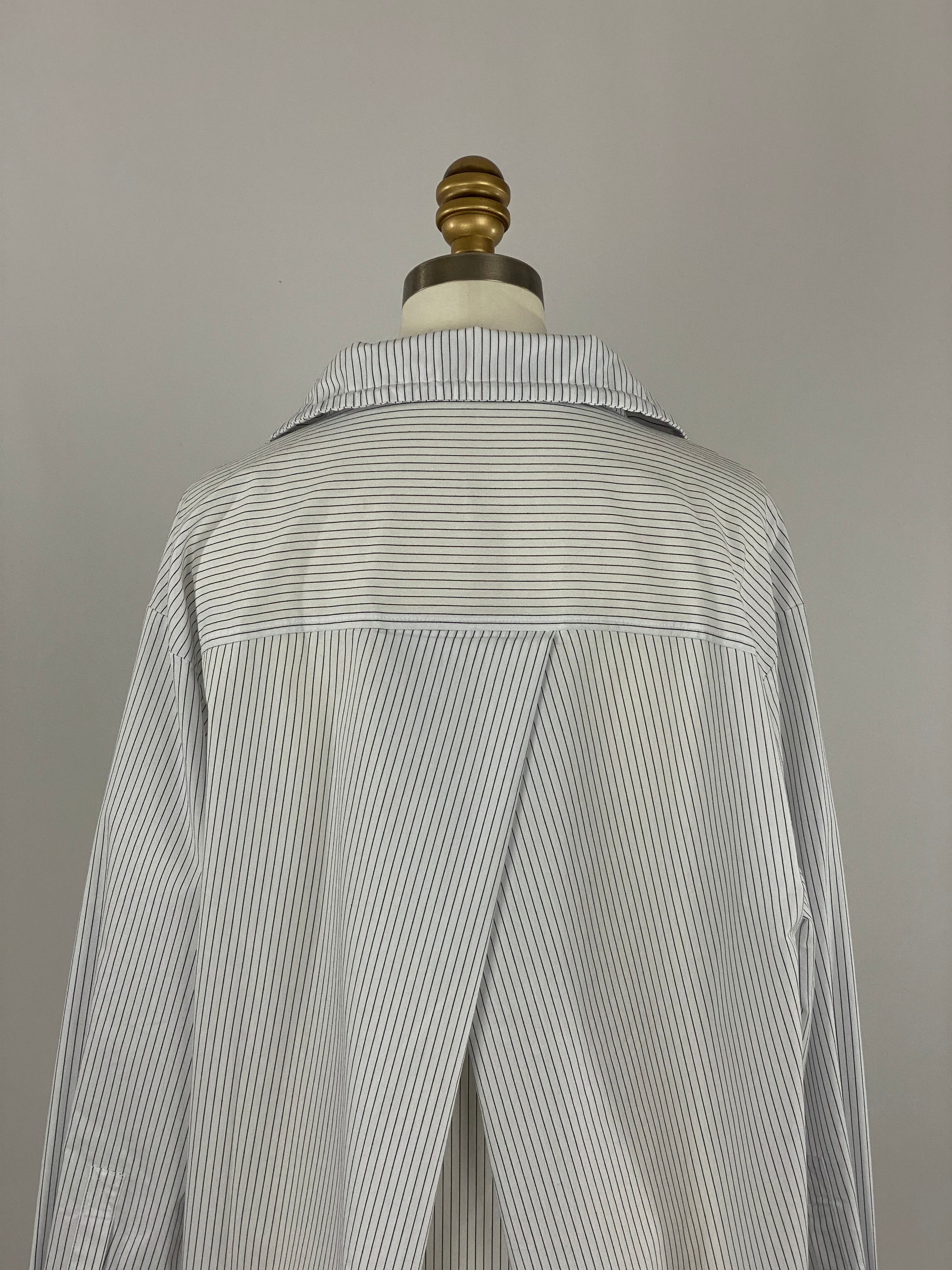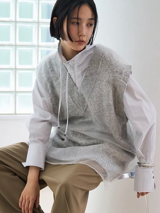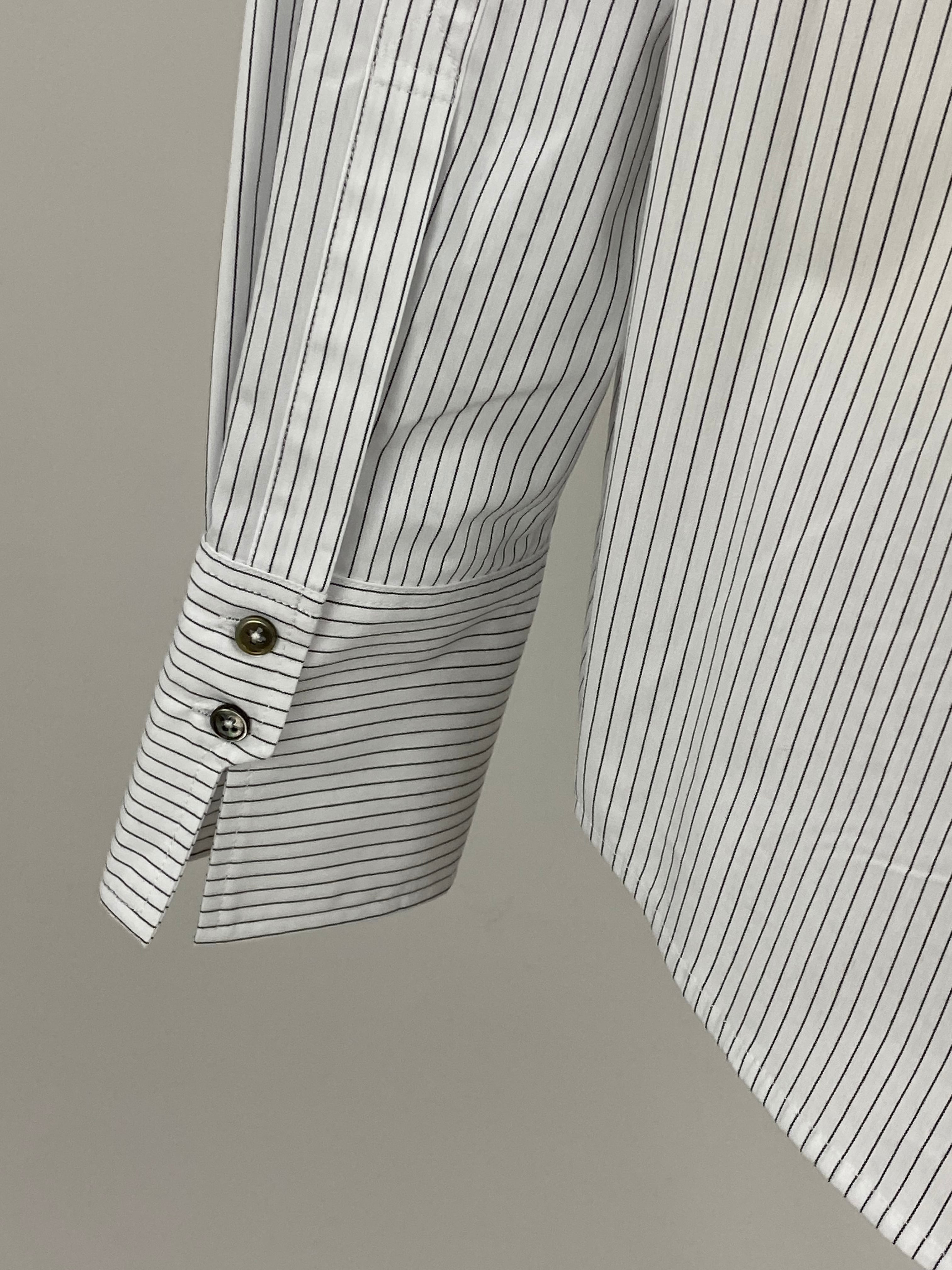後身頃の斜めのタックや変形カフスなど、さりげないディティールに拘った1枚です。