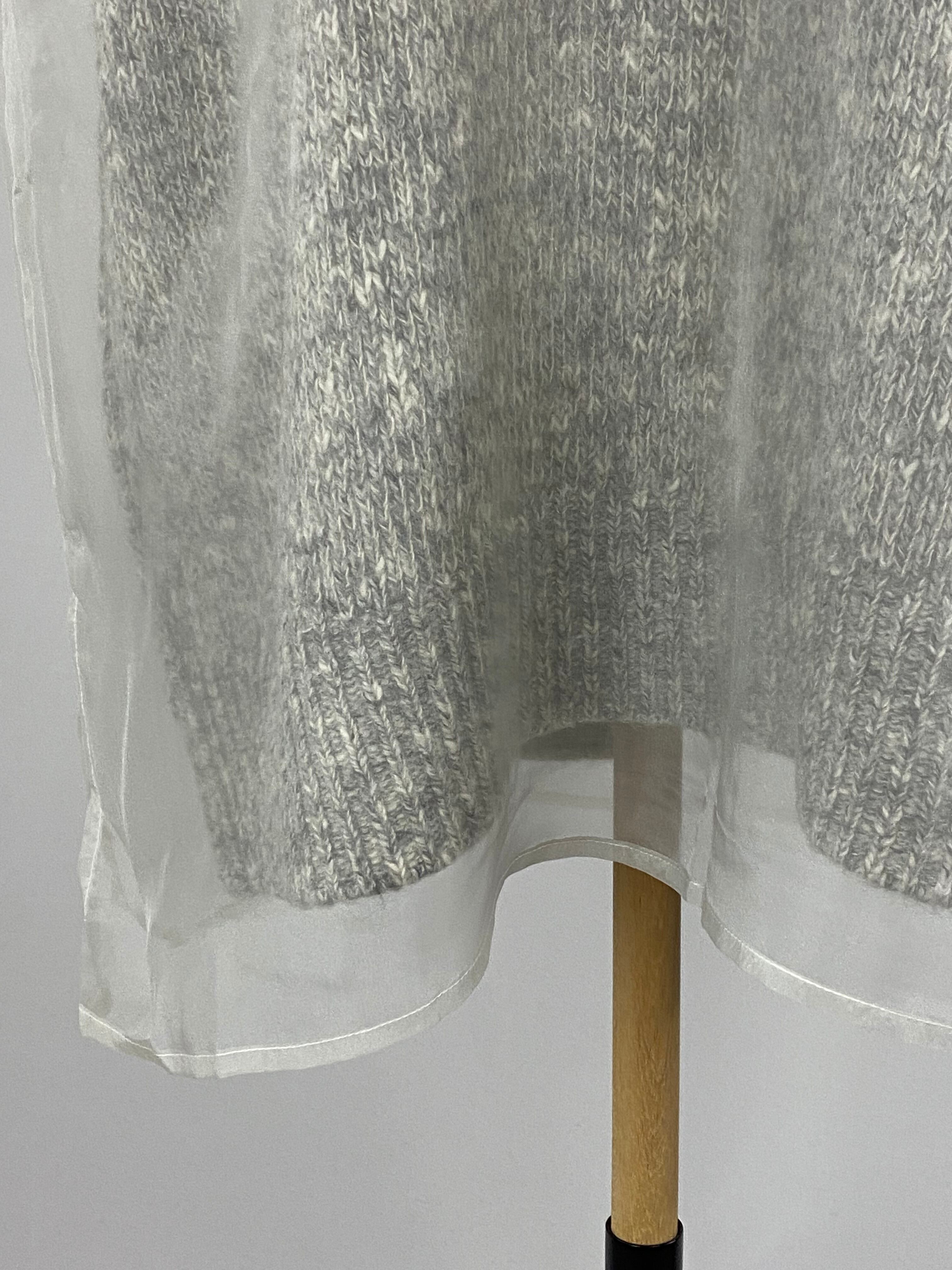 杢調のニットをシアーオーガンジーとの二重仕立てにして、リバーシブルで2パターンの表面感を楽しめます。