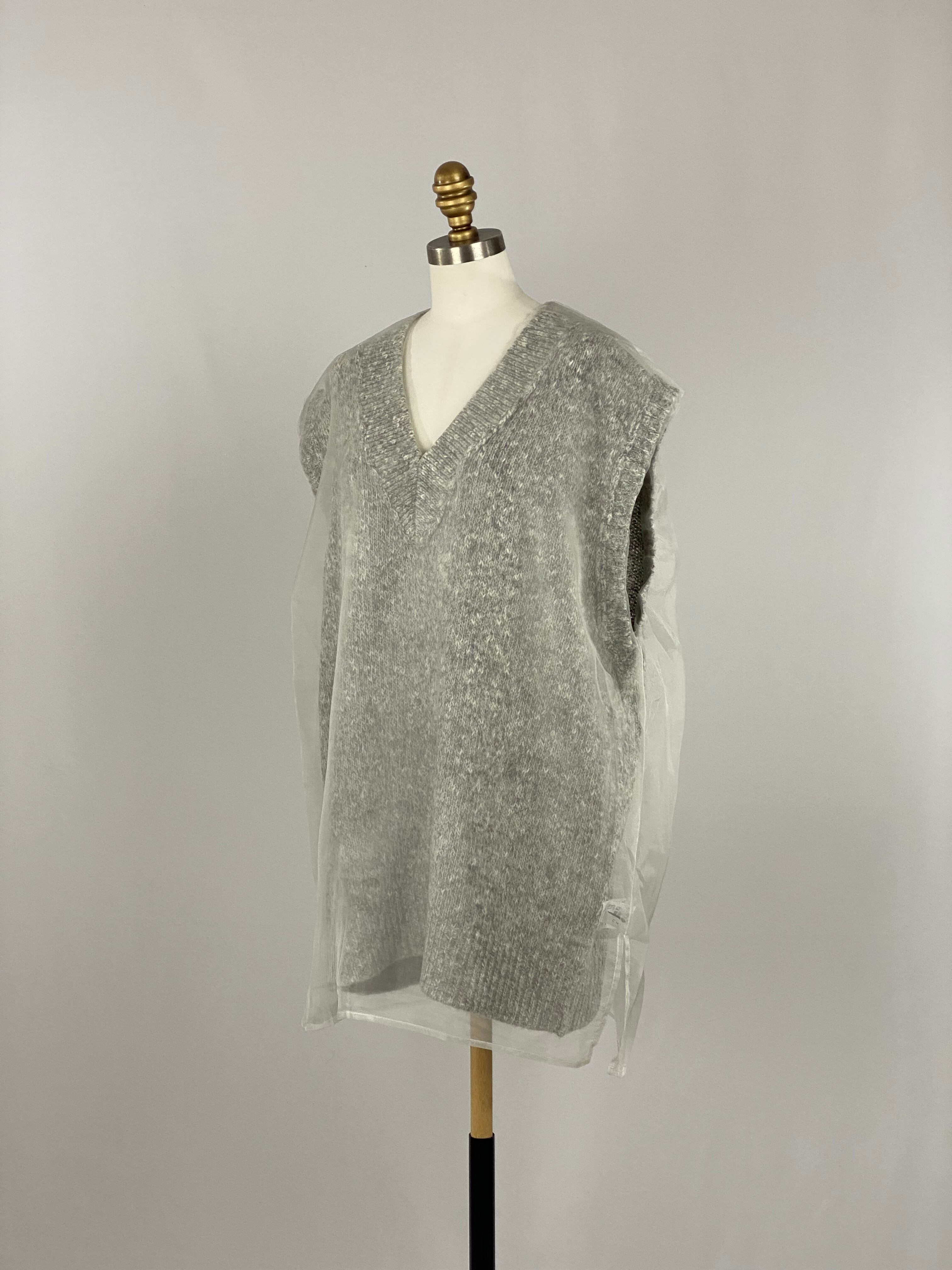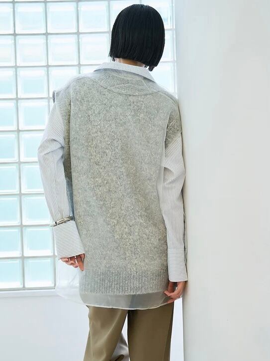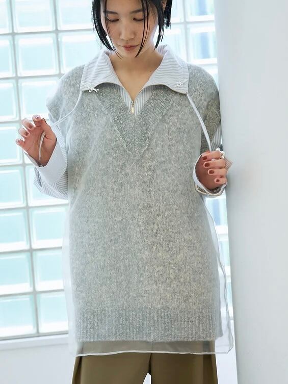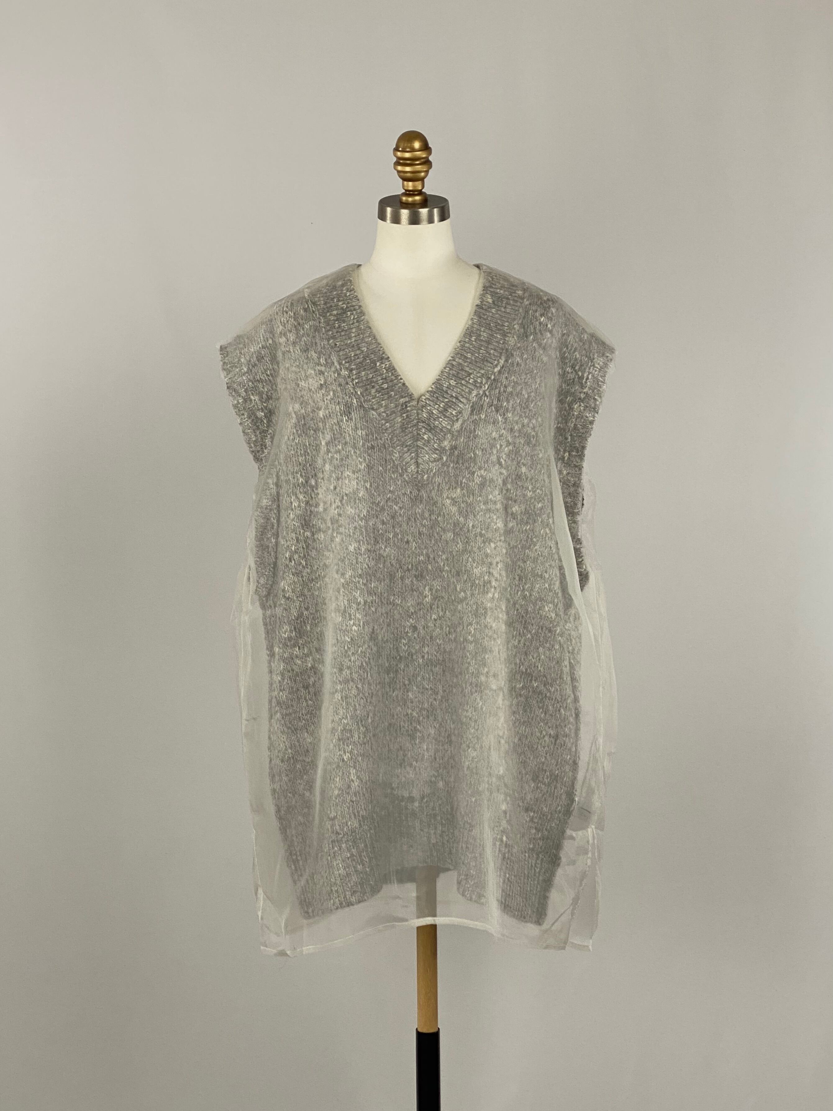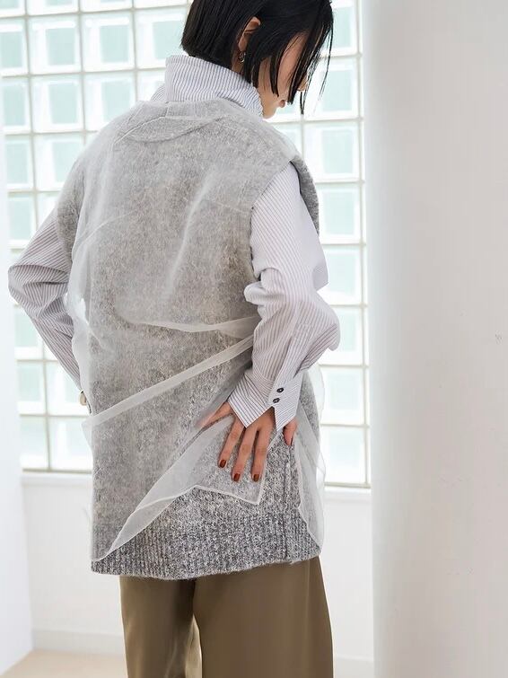 ニットとオーガンジーをドッキングさせたリバーシブルベスト。