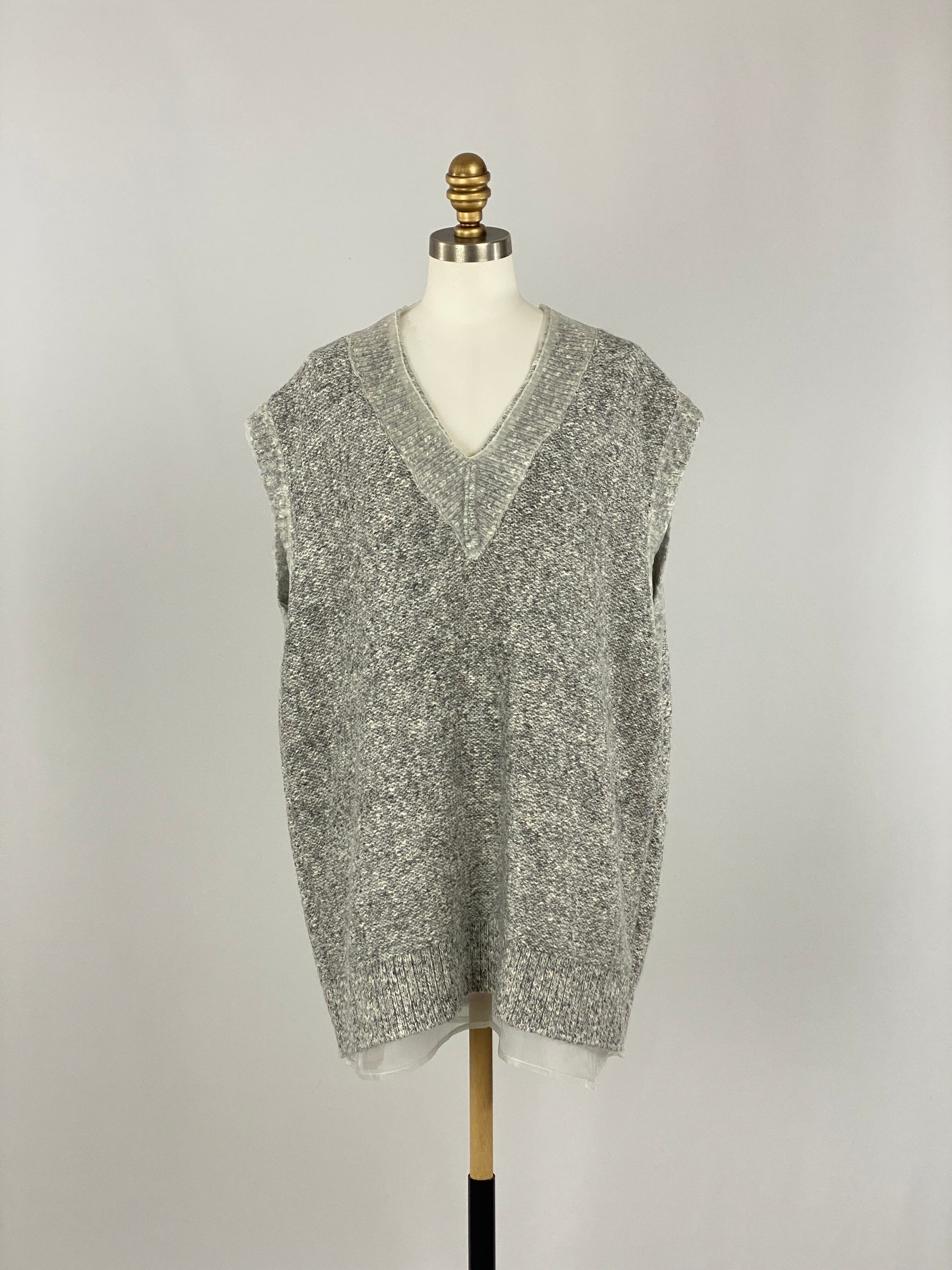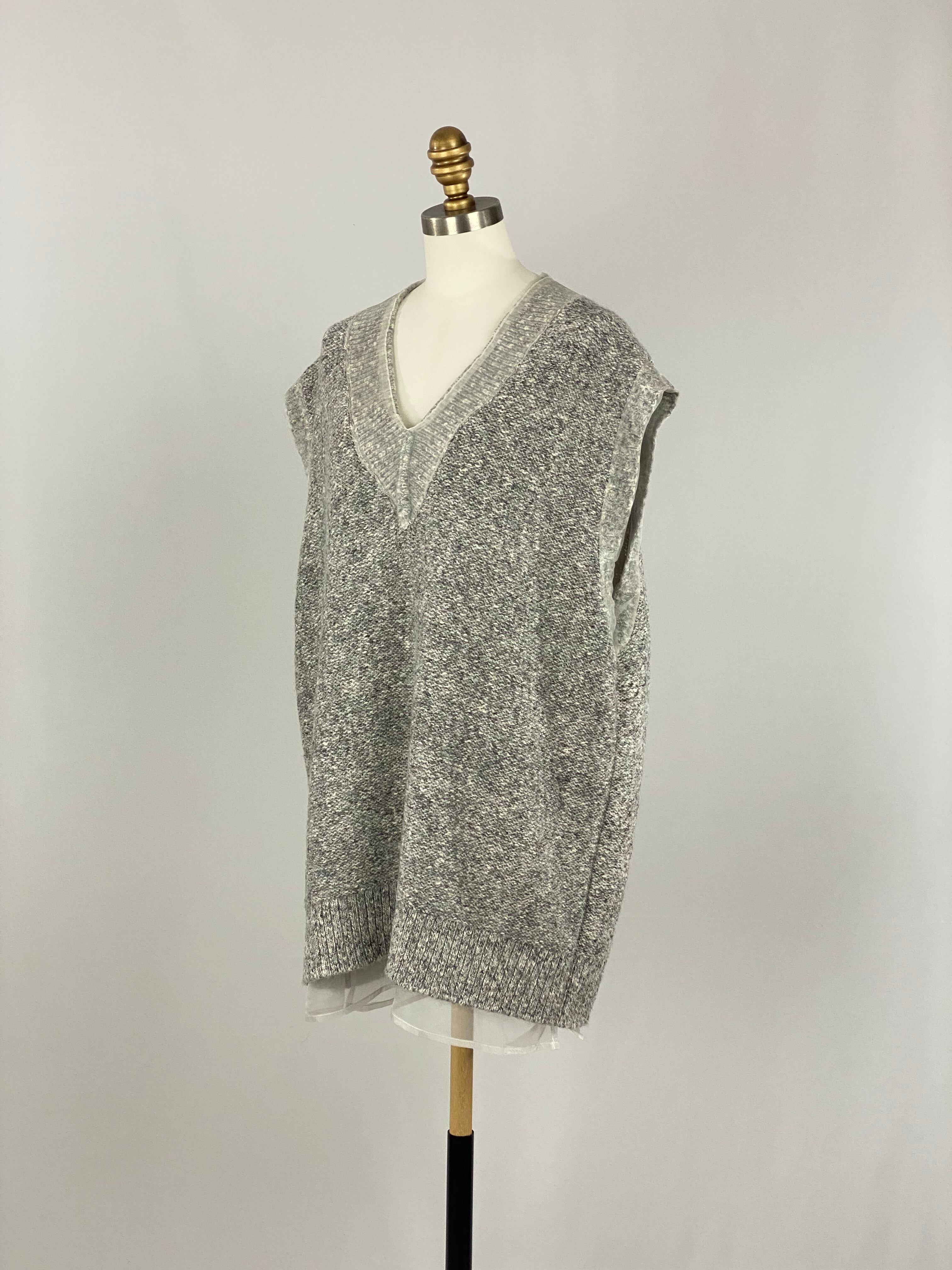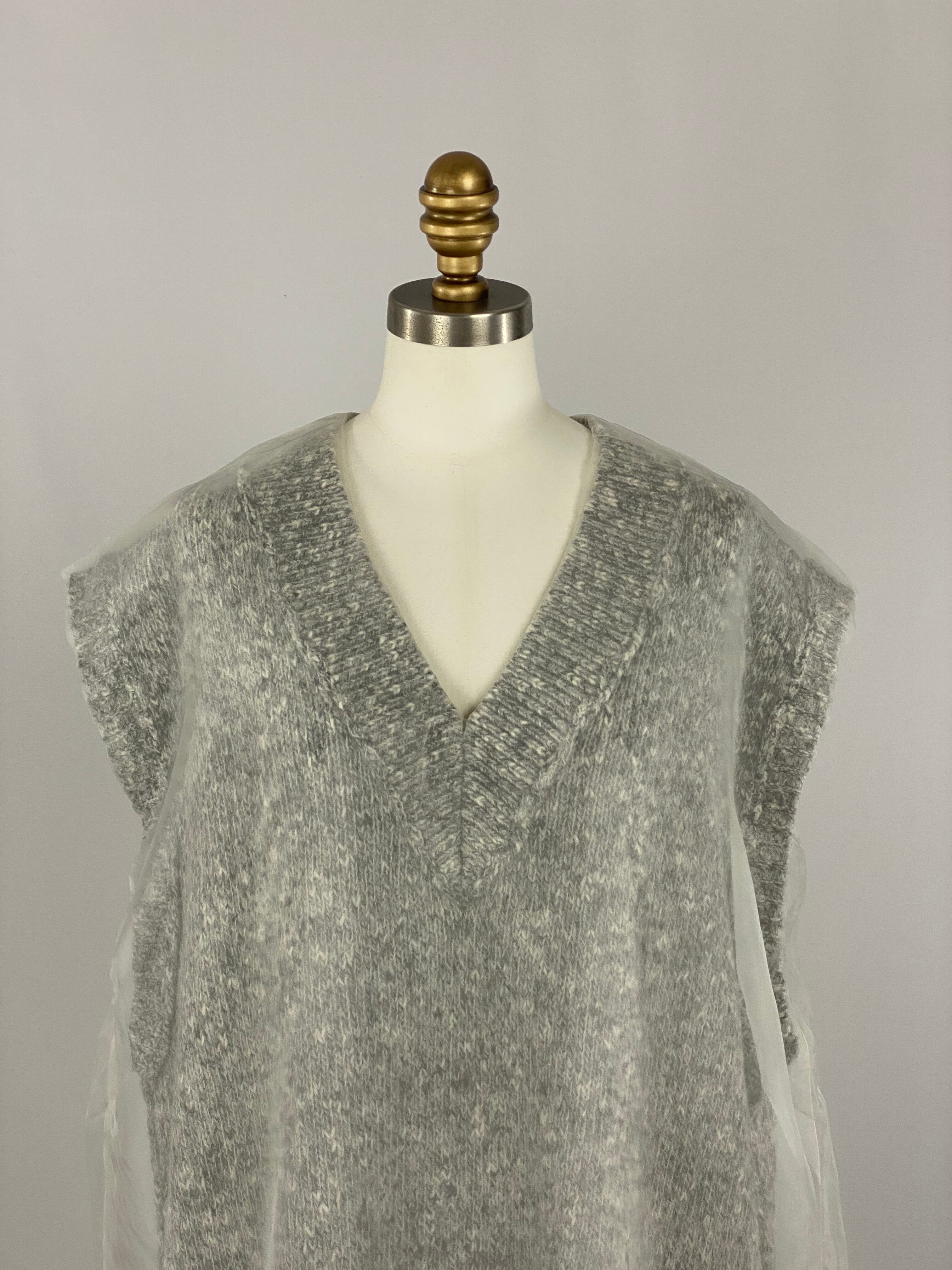 ニットとオーガンジーをドッキングさせたリバーシブルベスト。
