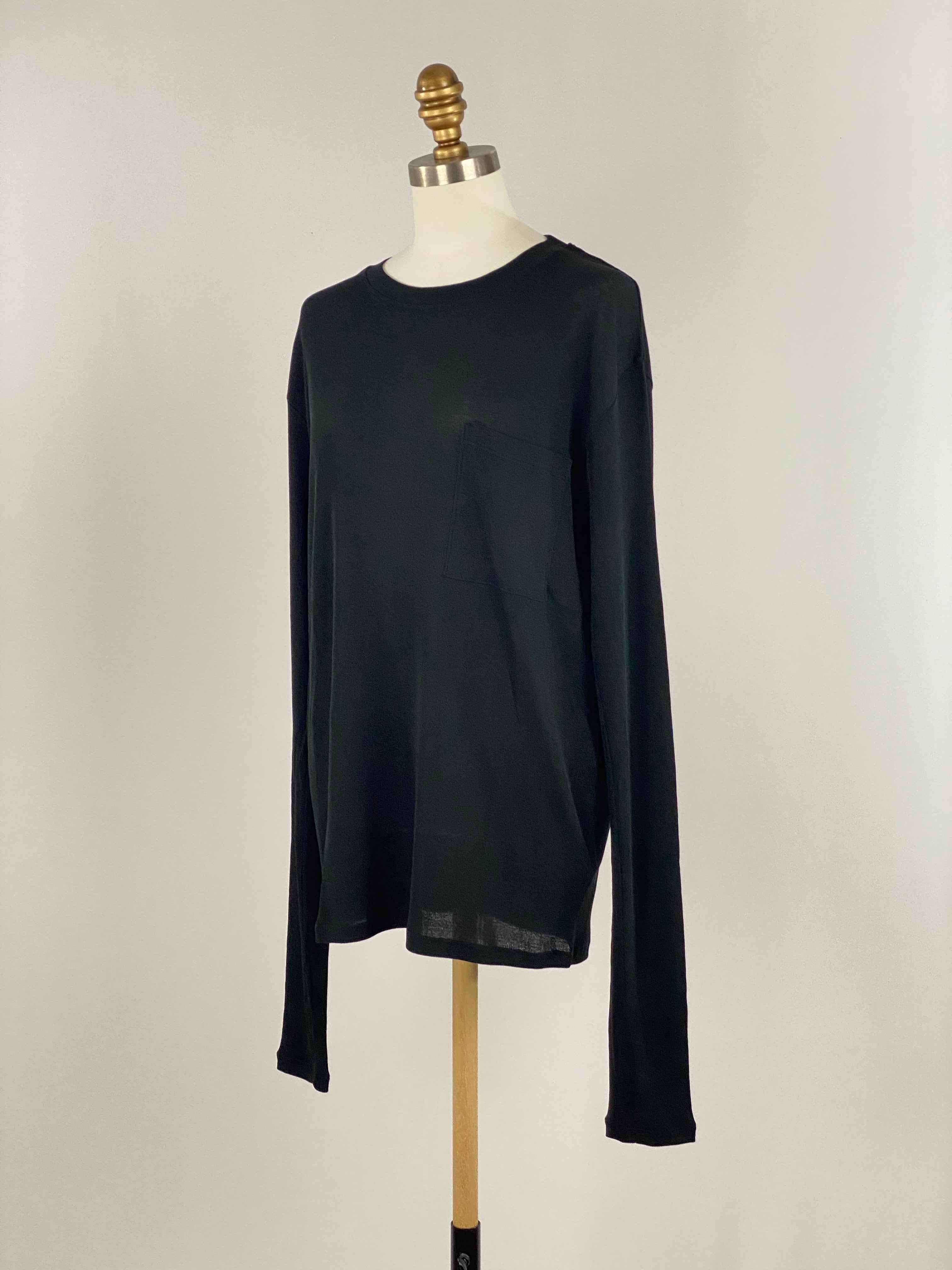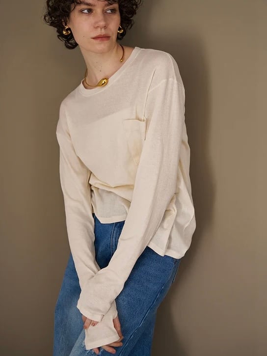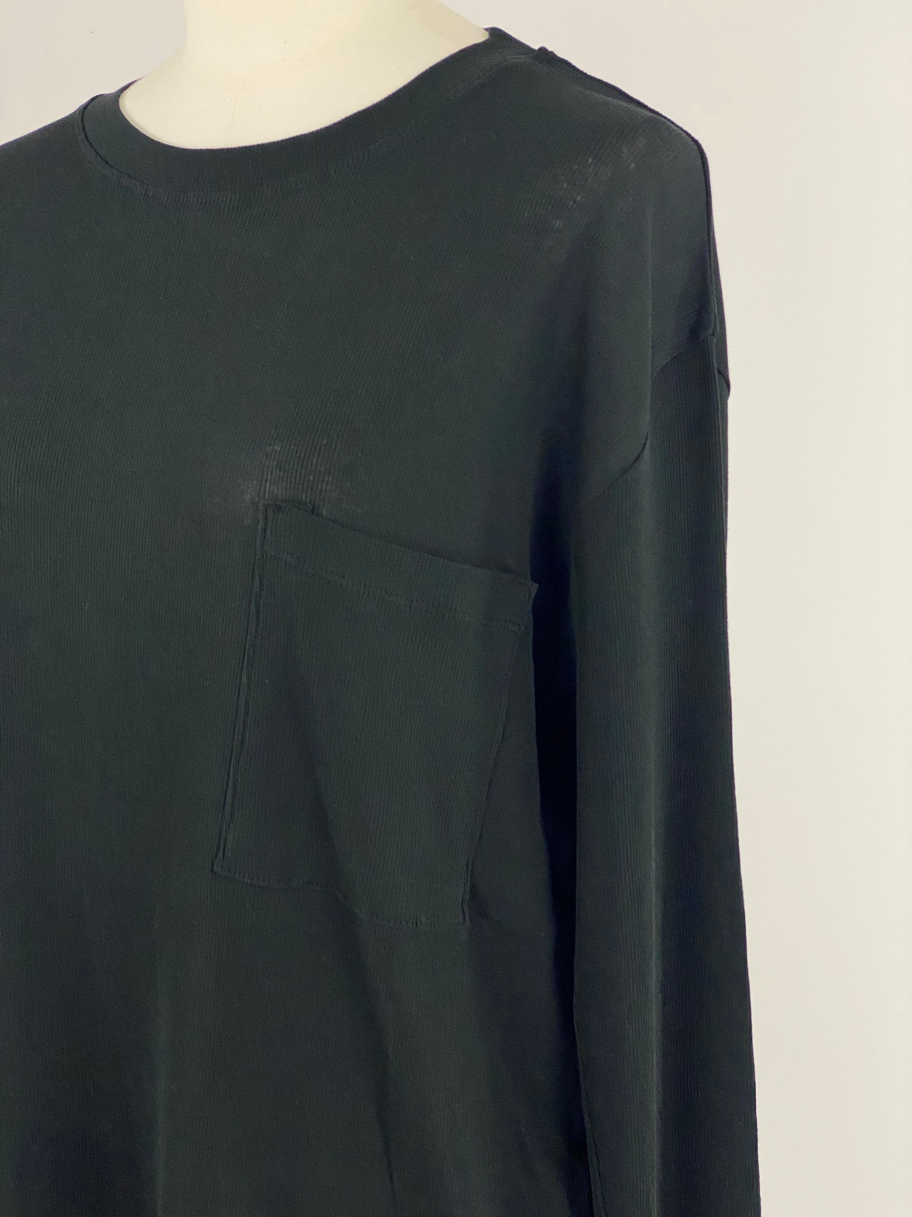 透け感と肌触りがポイントのリブ素材を使用したポケット付きのリブトップス。