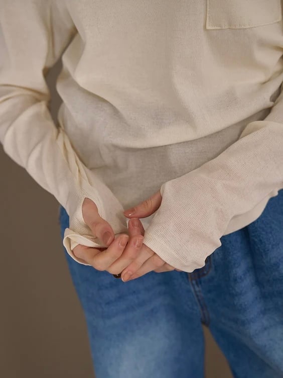 デザインのポイントとして、袖口に指抜きデザインを取り入れています。
