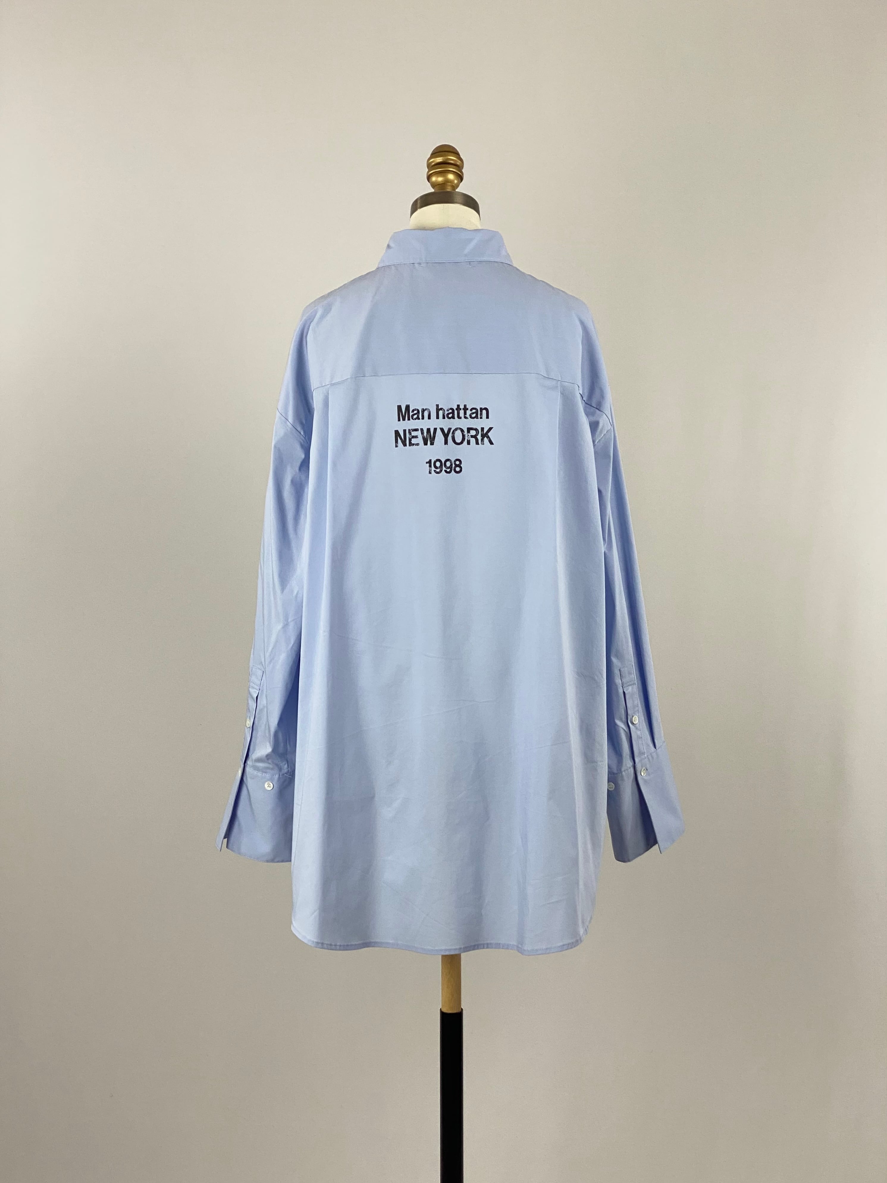 ヨーク下にヴィンテージ風に擦れたロゴプリントをさりげなく入れています。