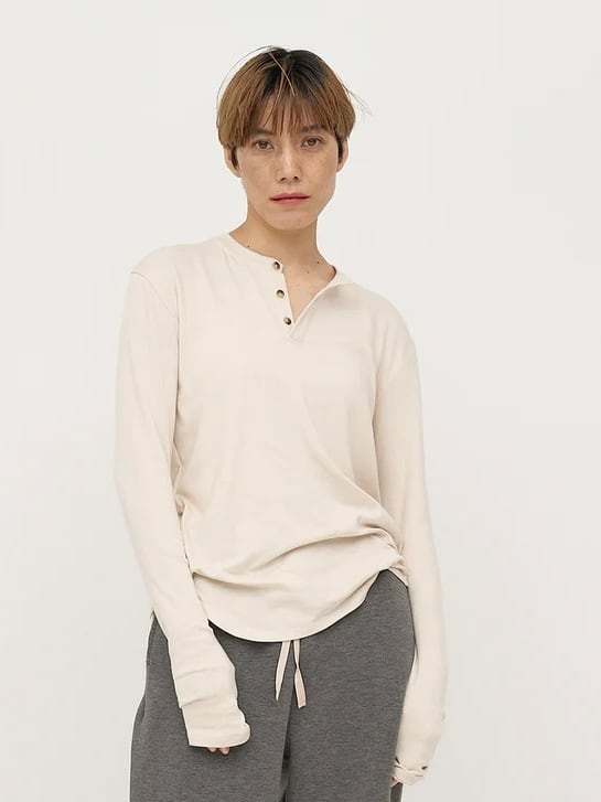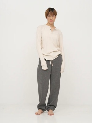 ニットのような柔らかさと暖かみが特徴のカットソー生地を使用したヘンリーネックロンTです。
