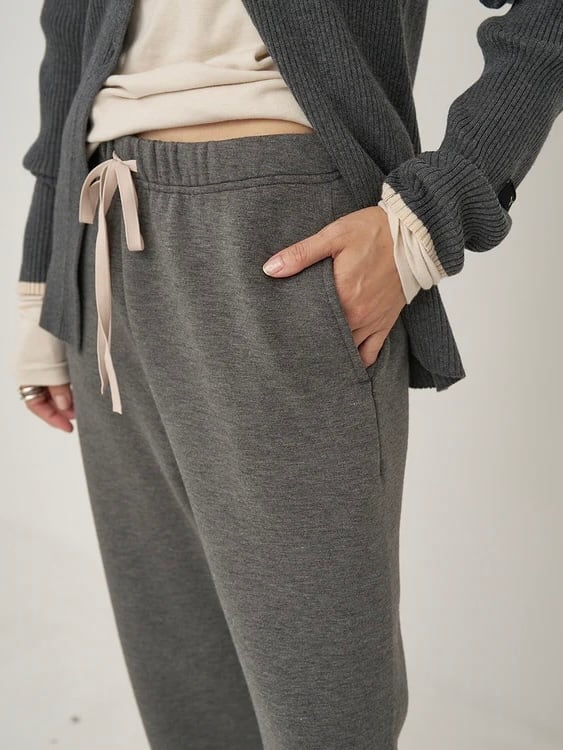 スポーティーでカジュアルな印象のジョグパンツを、大人の女性が着こなしやすい野暮ったくならないサイズ感を追求して作りました。