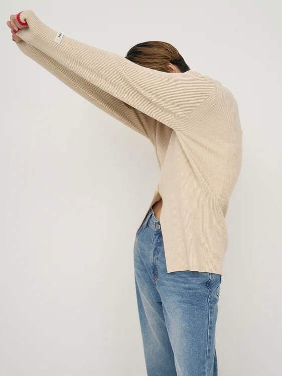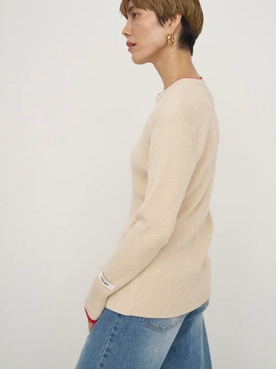 WOOL RIB CREW CD|ライトベージュ|YENN