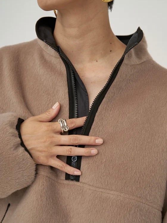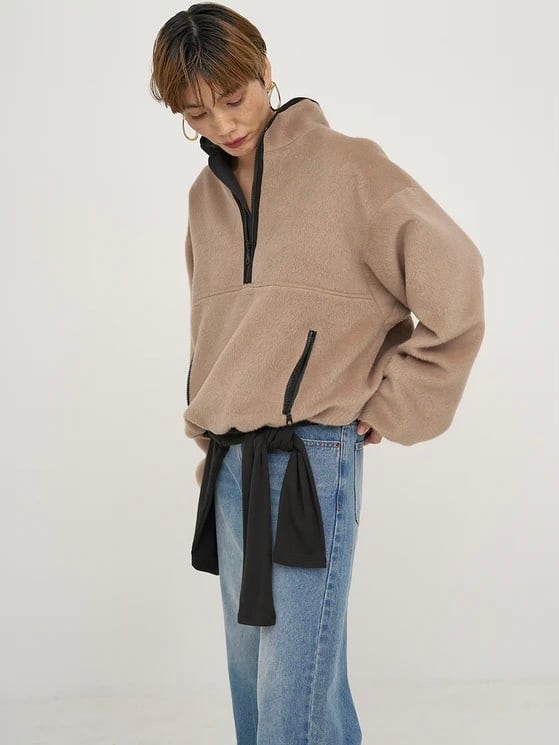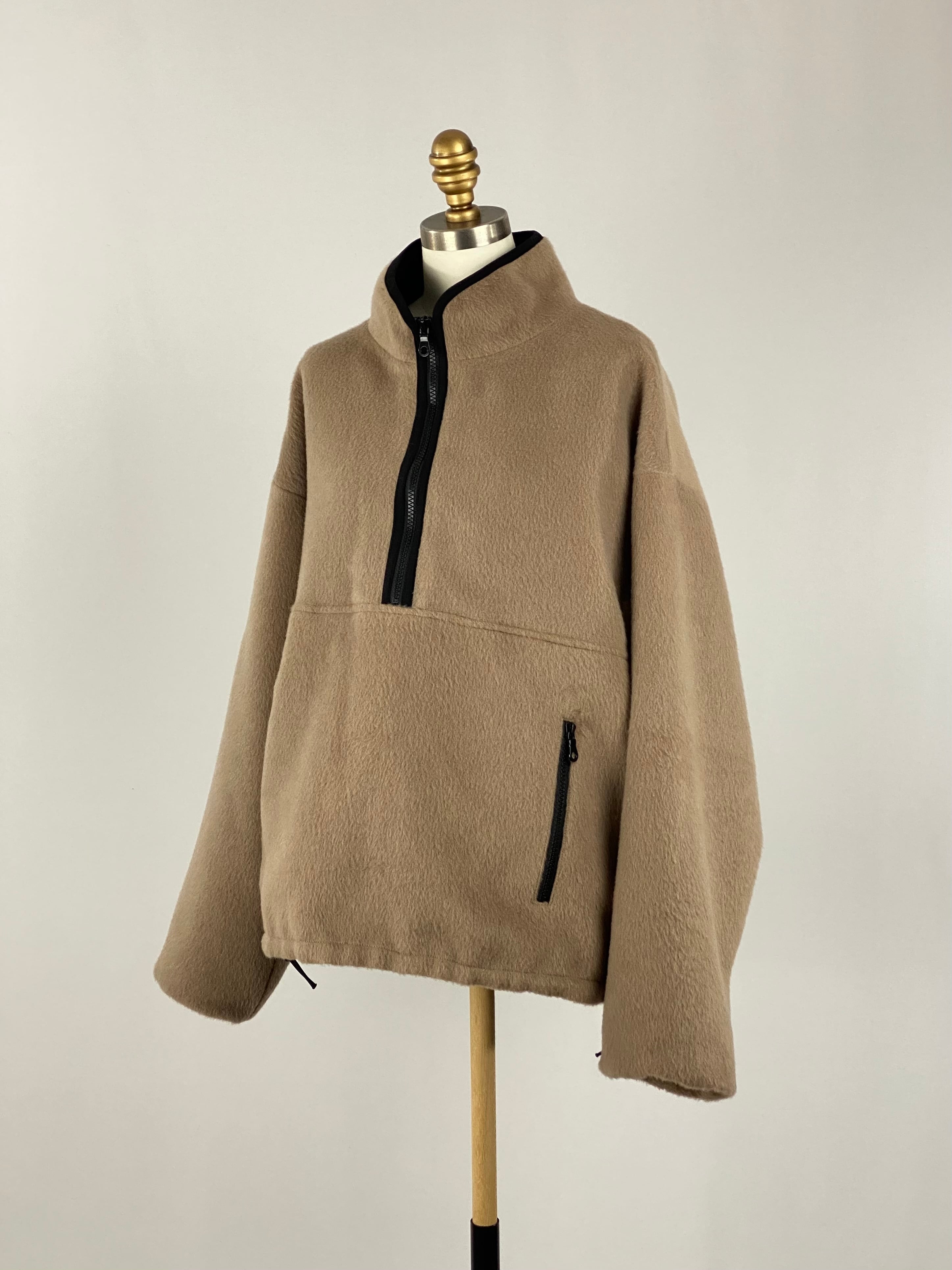 アウトドア製品にあるようなハーフジップのアウターをタウン仕様に落とし込みました。
