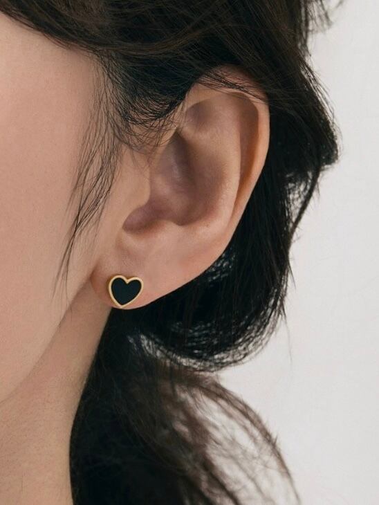 ブラックのハートシェイプが洗練された雰囲気で、絶妙な甘さが魅力的なピアス。