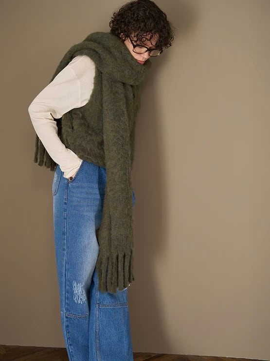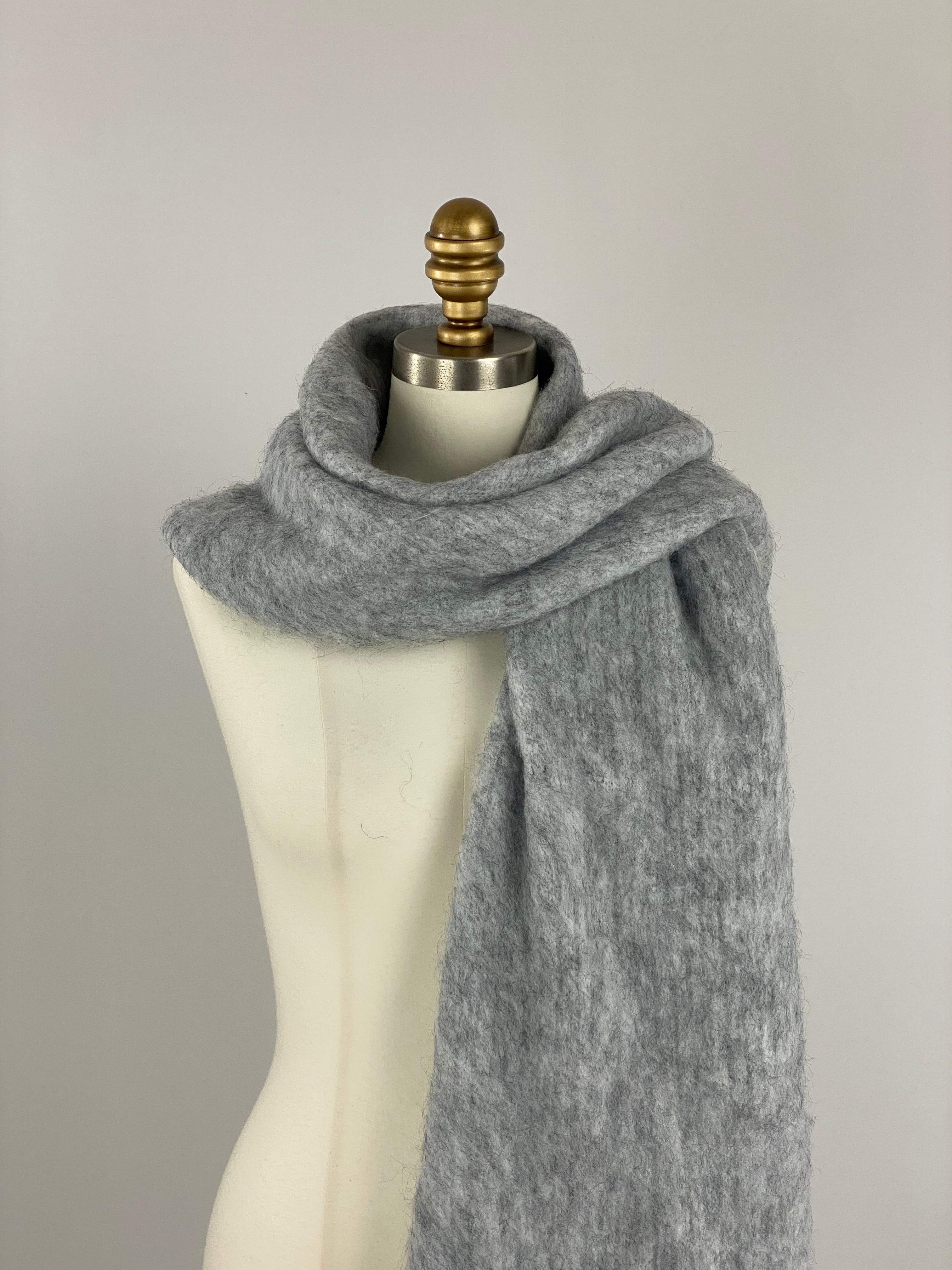 ふわふわの起毛加工を施した大判のニットマフラーです。
