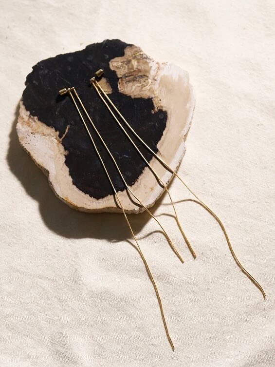 短い方にピアスポストが付いており、長い方が取り外し可能になっているので、2本重ねて着けることでぐっと存在感のある耳元に◎