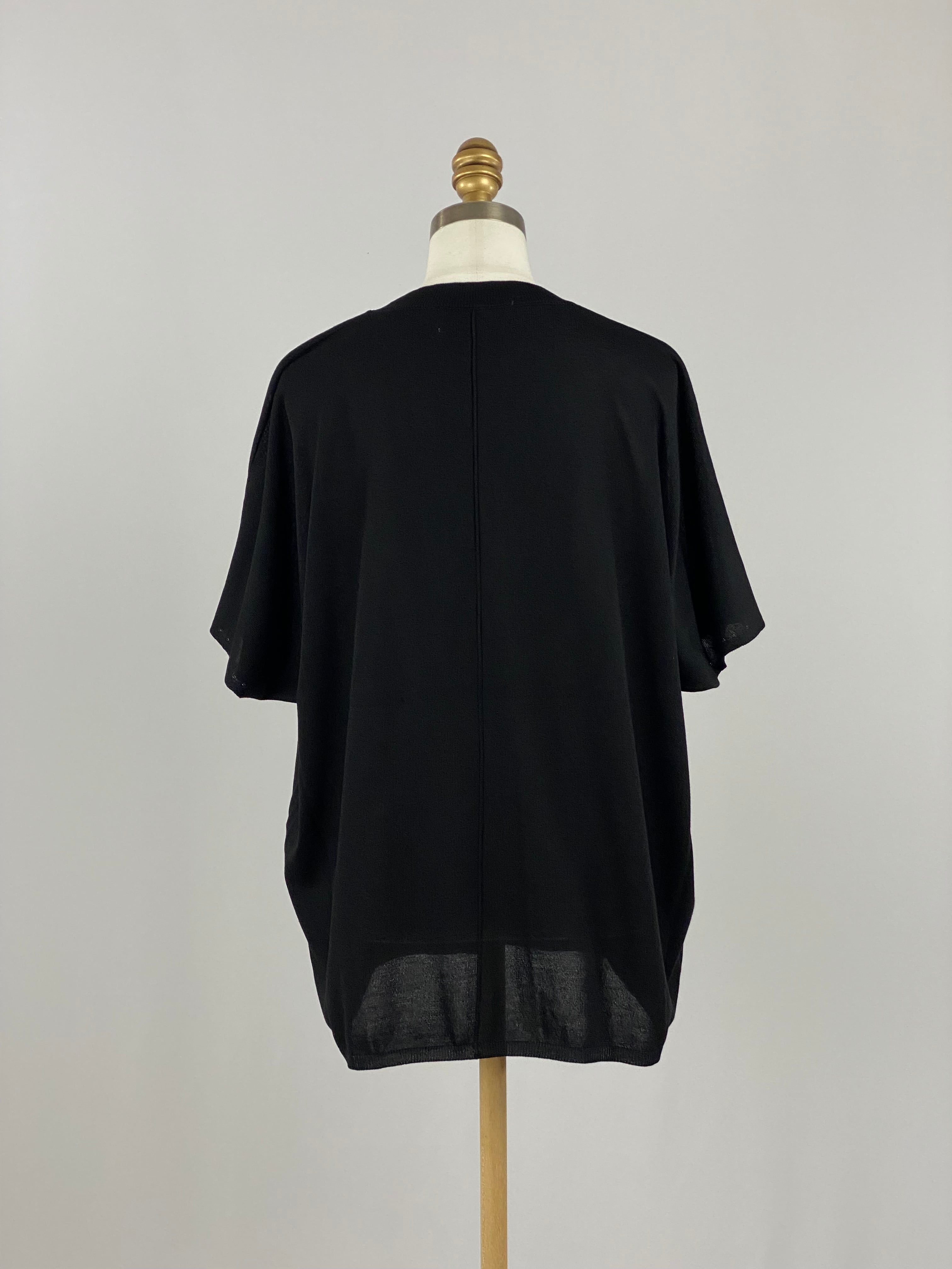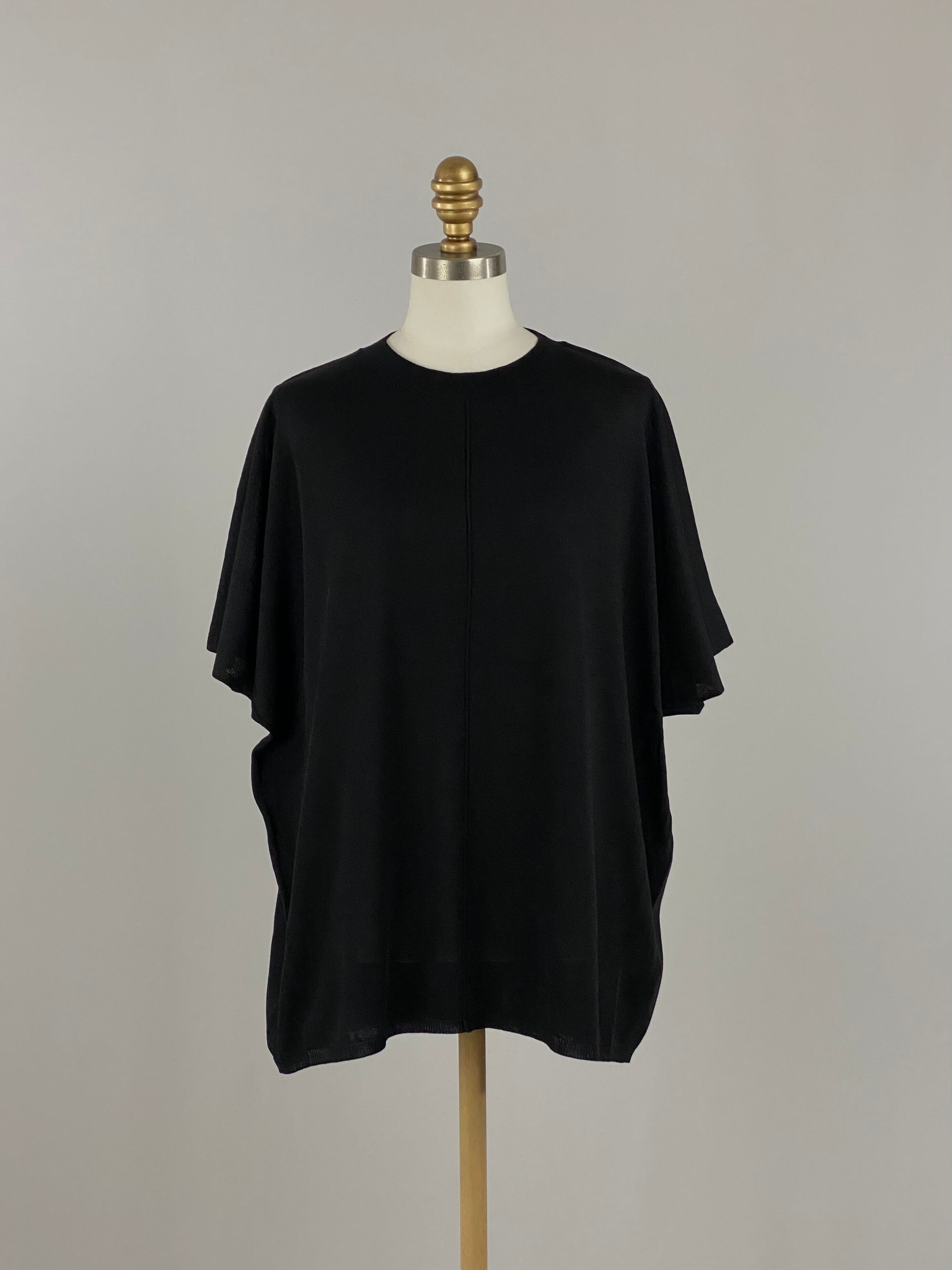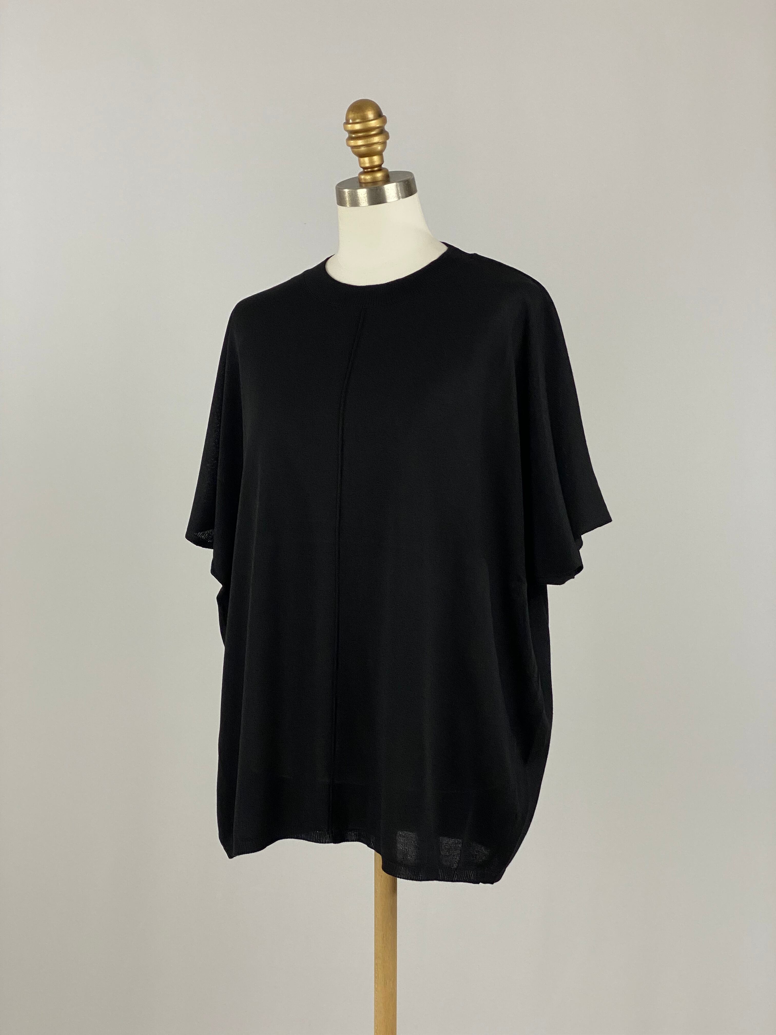 滑らかな質感のニット素材で仕立てたTシャツ型トップス。