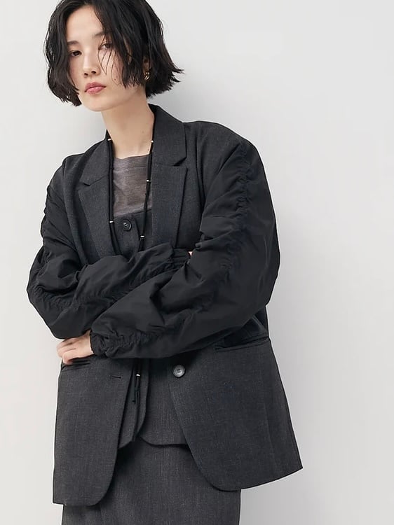 袖にMA-1の袖をドッキングさせたテーラードジャケットです。