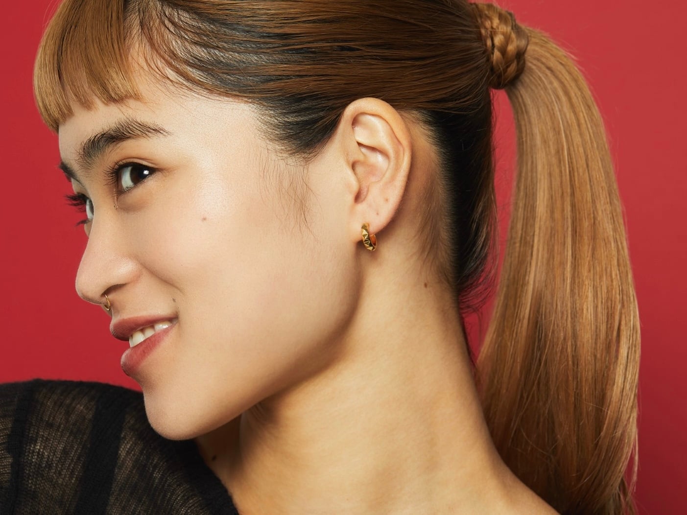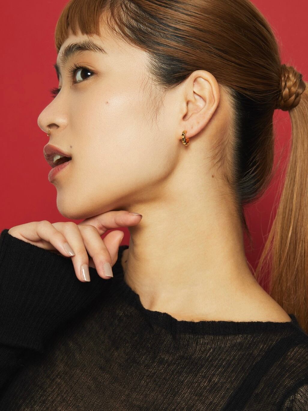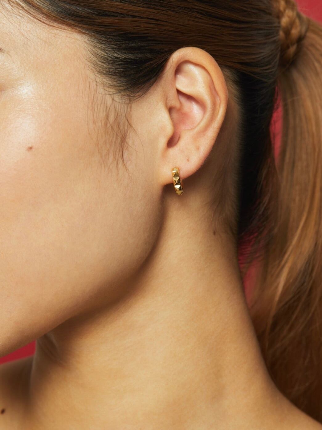 スタッズデザインが施された立体的なフォルムが特徴のフープピアス。