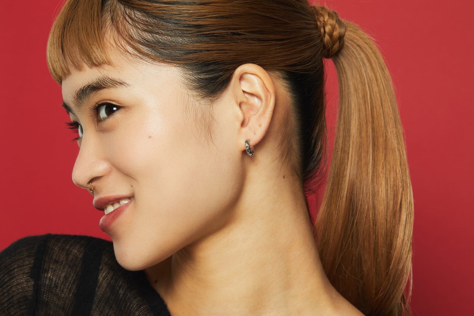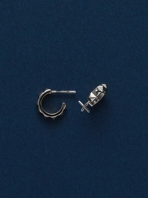 スタッズデザインが施された立体的なフォルムが特徴のフープピアス。