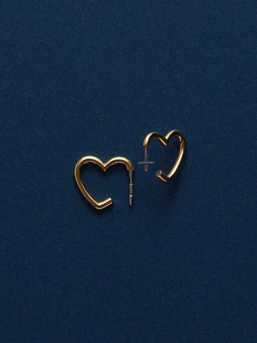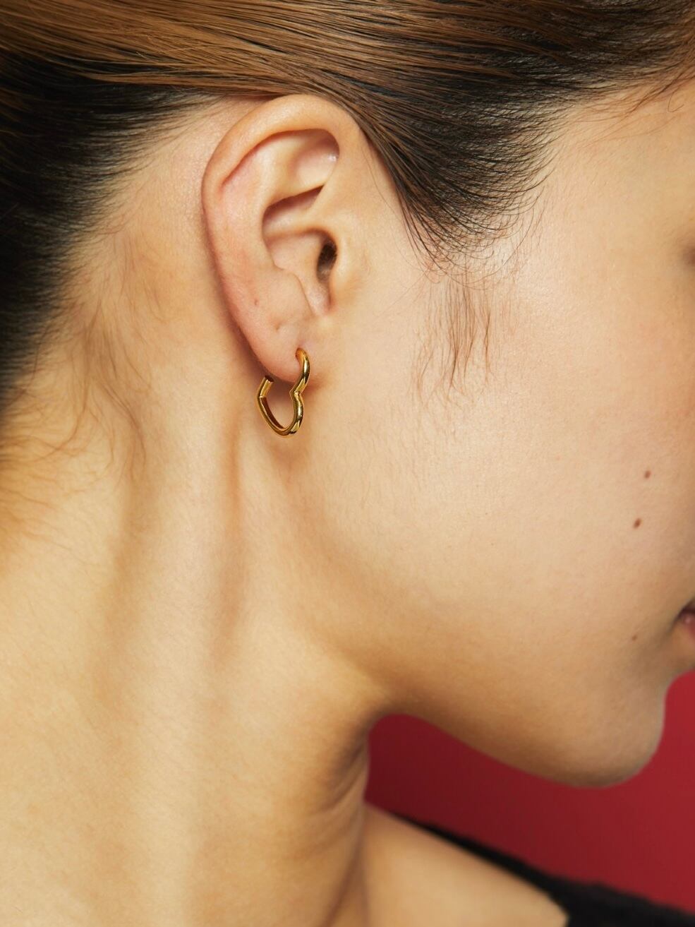 ハートシェイプのフォルムに遊び心を込めたフープピアス。