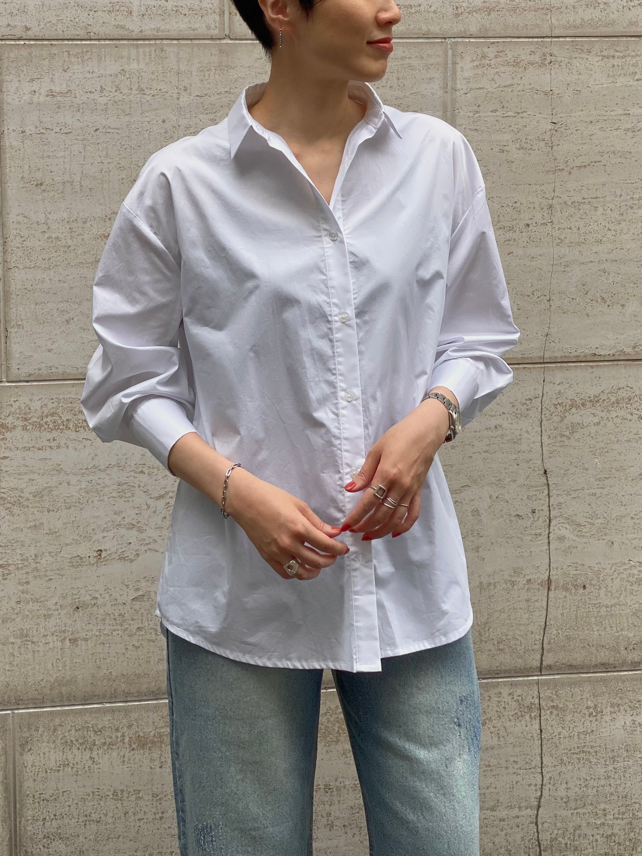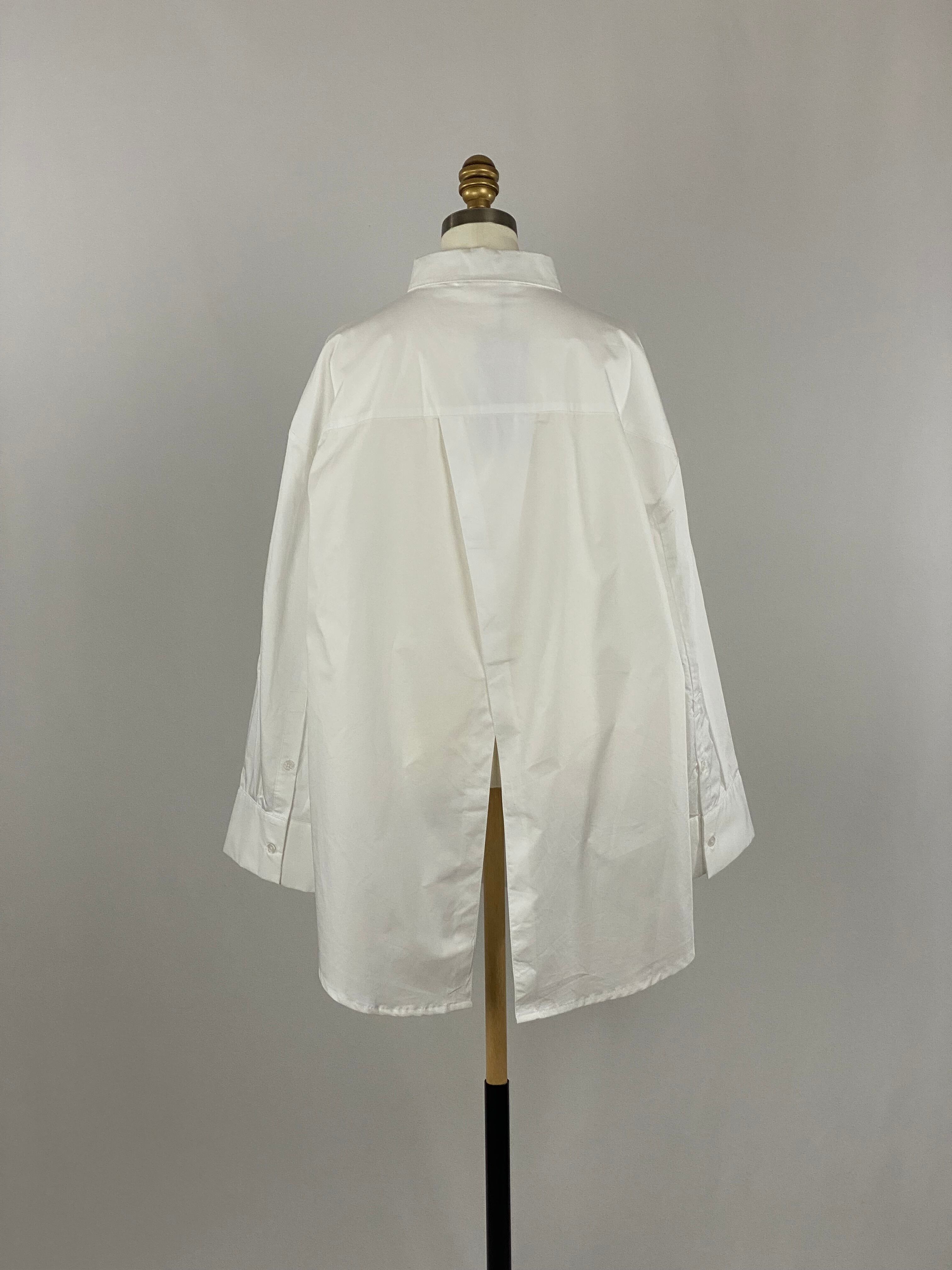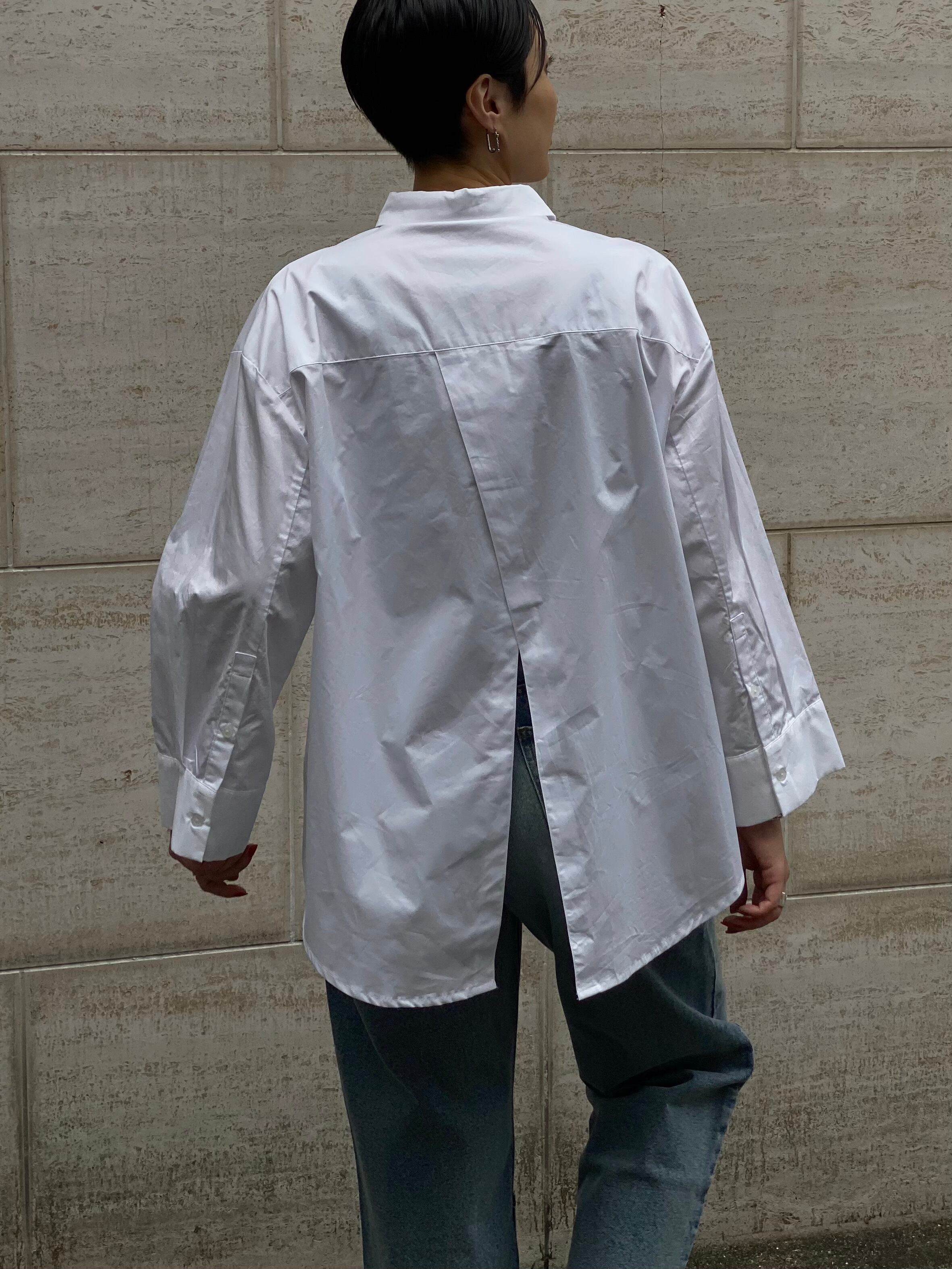 コットンサテンバックスリットシャツ|ホワイト|Maglia Plus