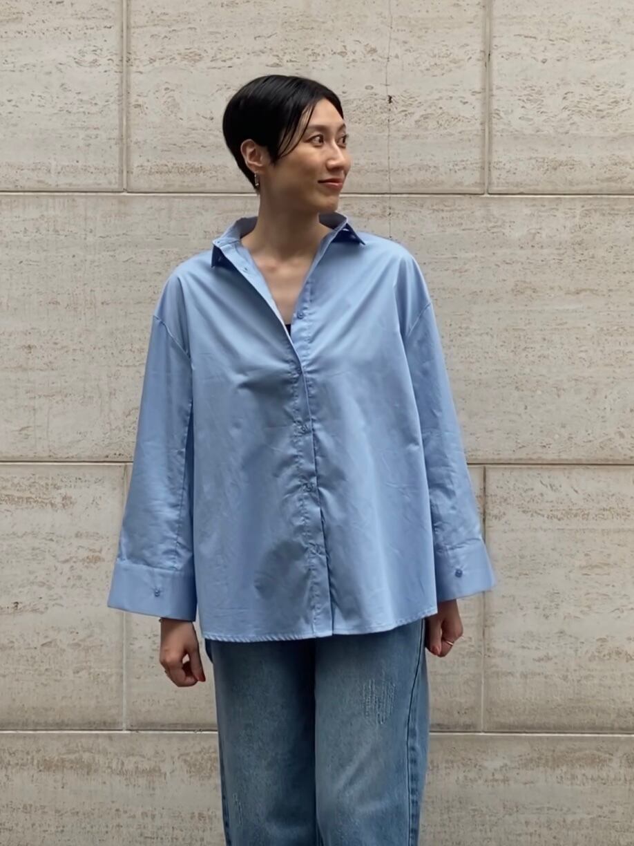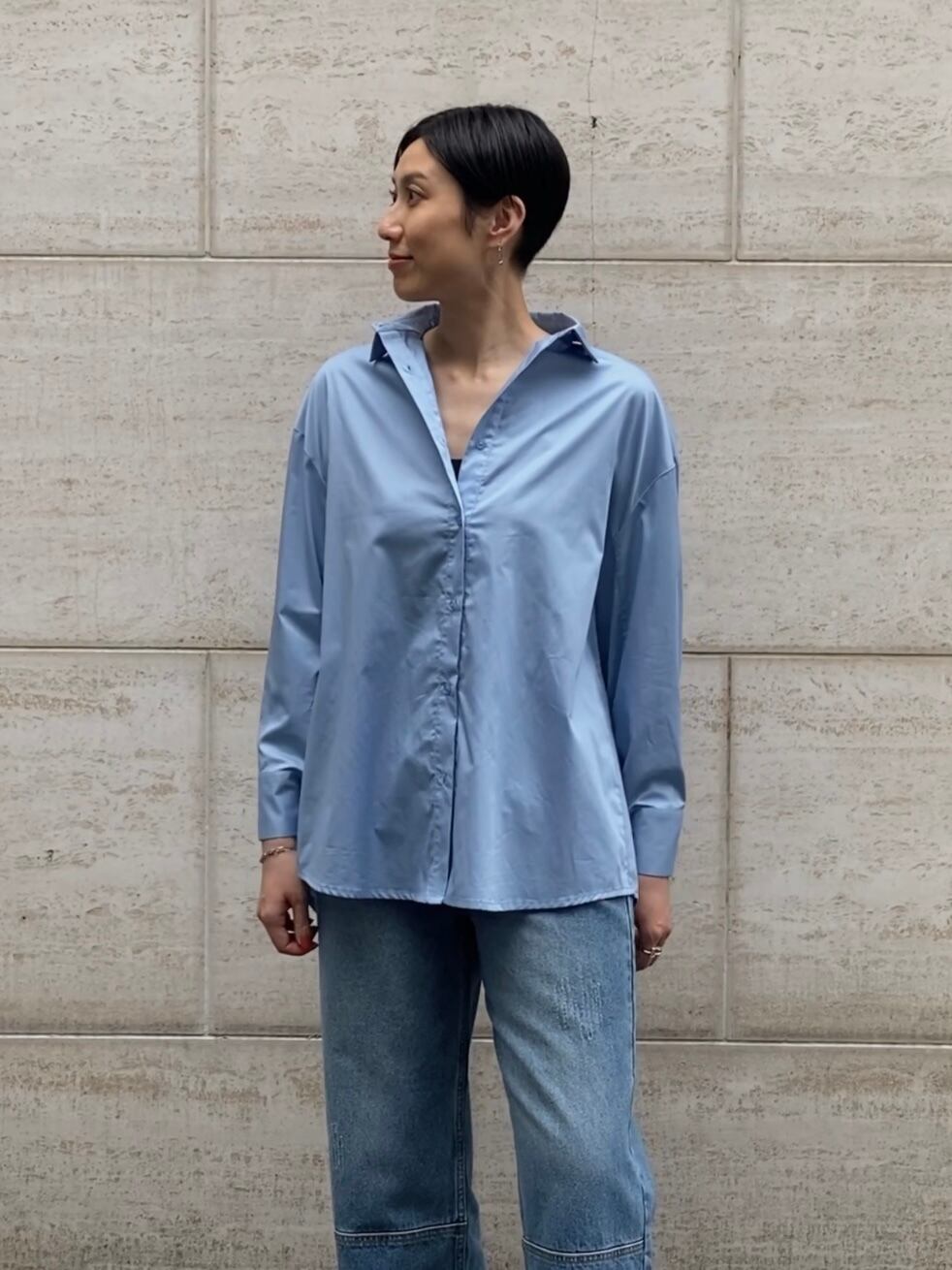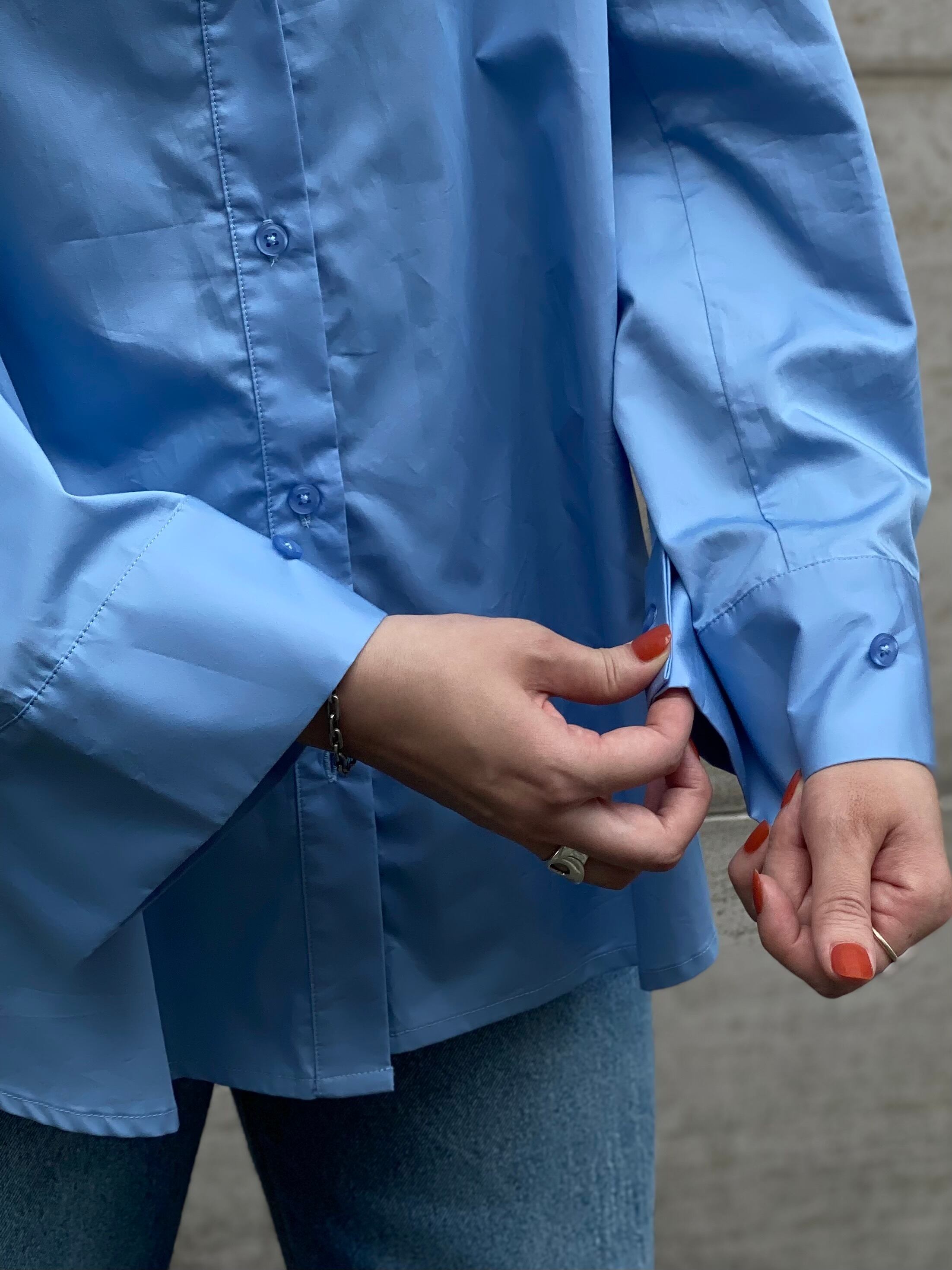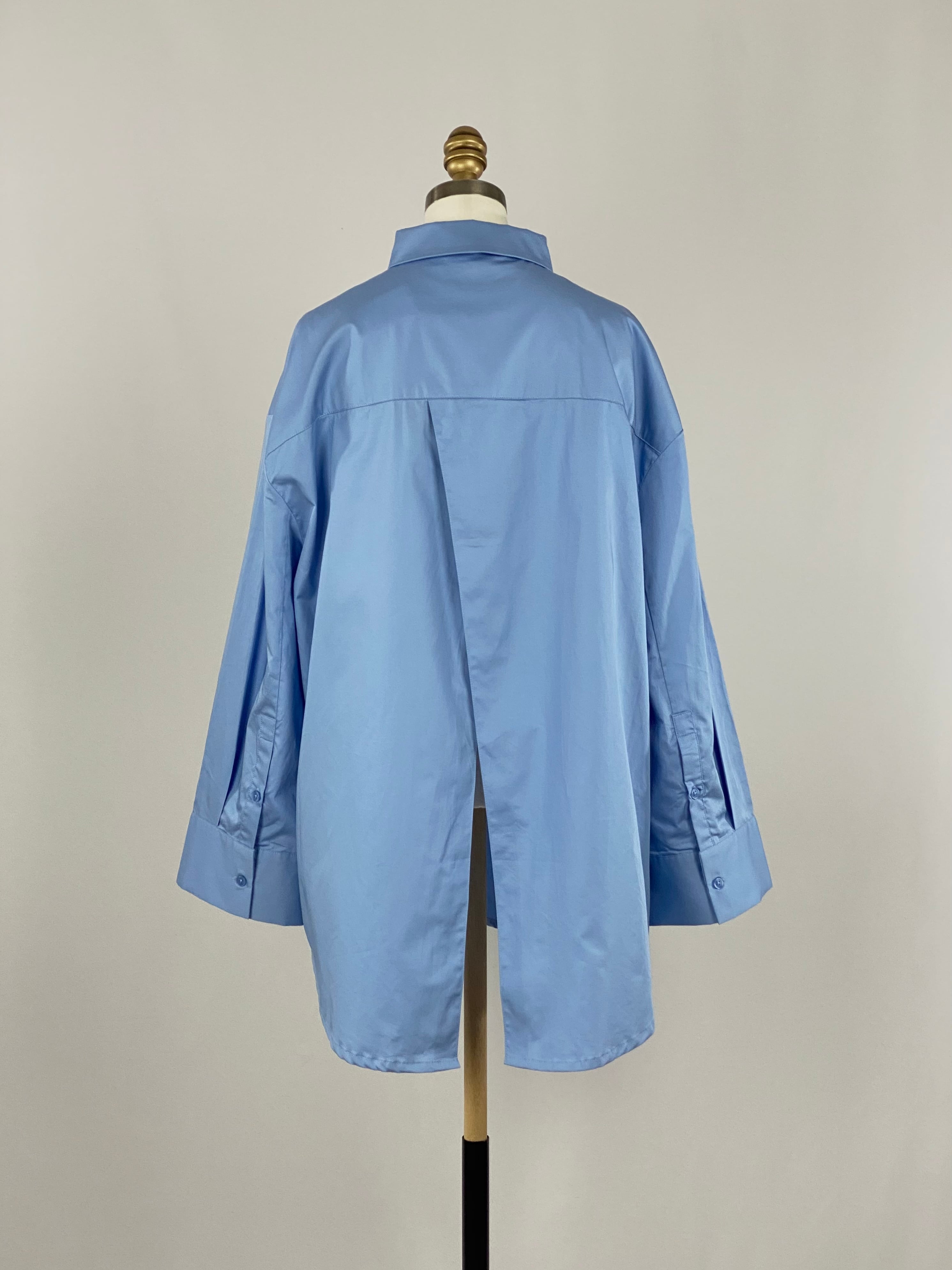 コットンサテンバックスリットシャツ|ブルー|Maglia Plus