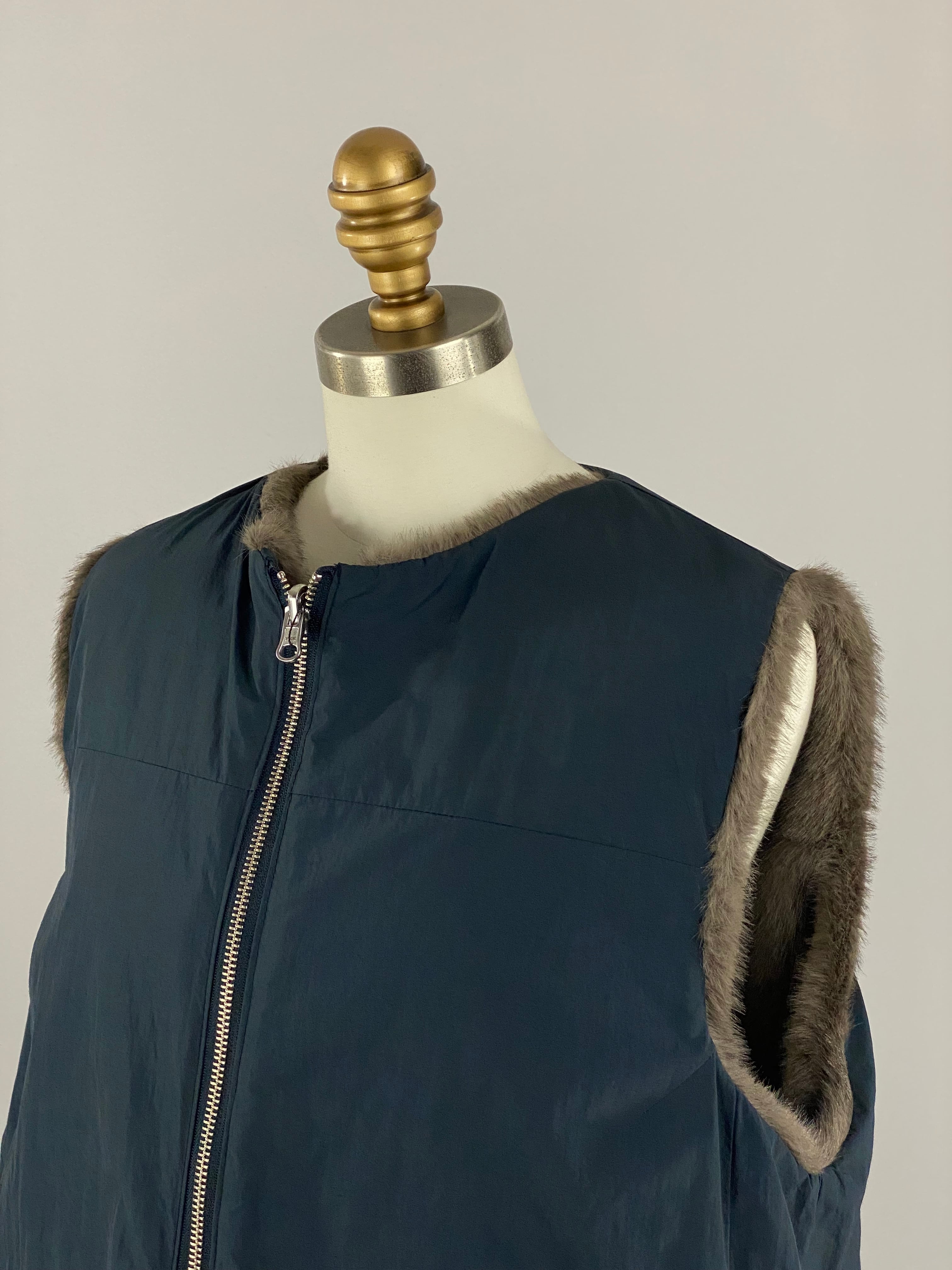 ミンクエコファーリバーシブルベスト|モカ×ネイビー|Maglia Plus
