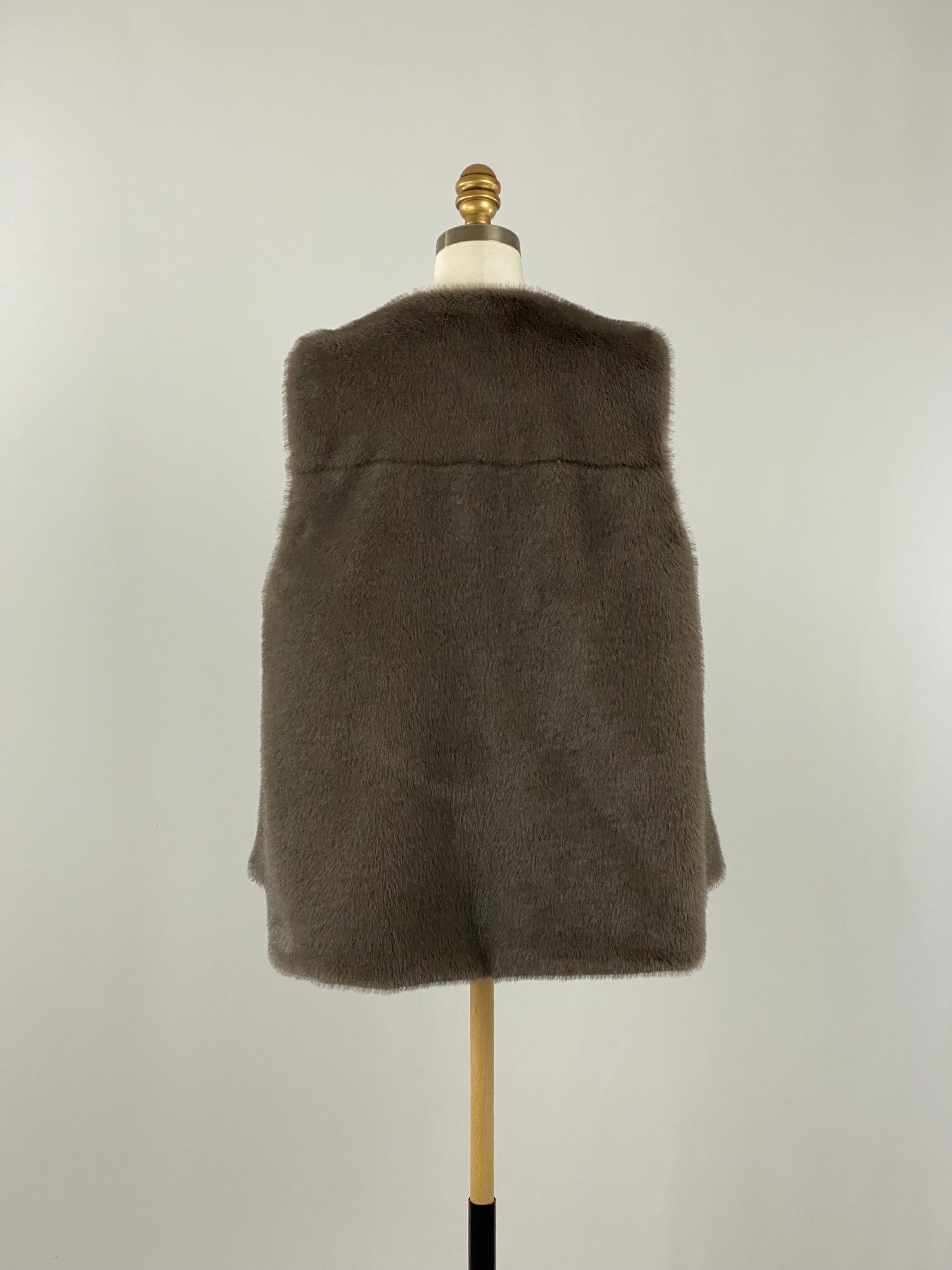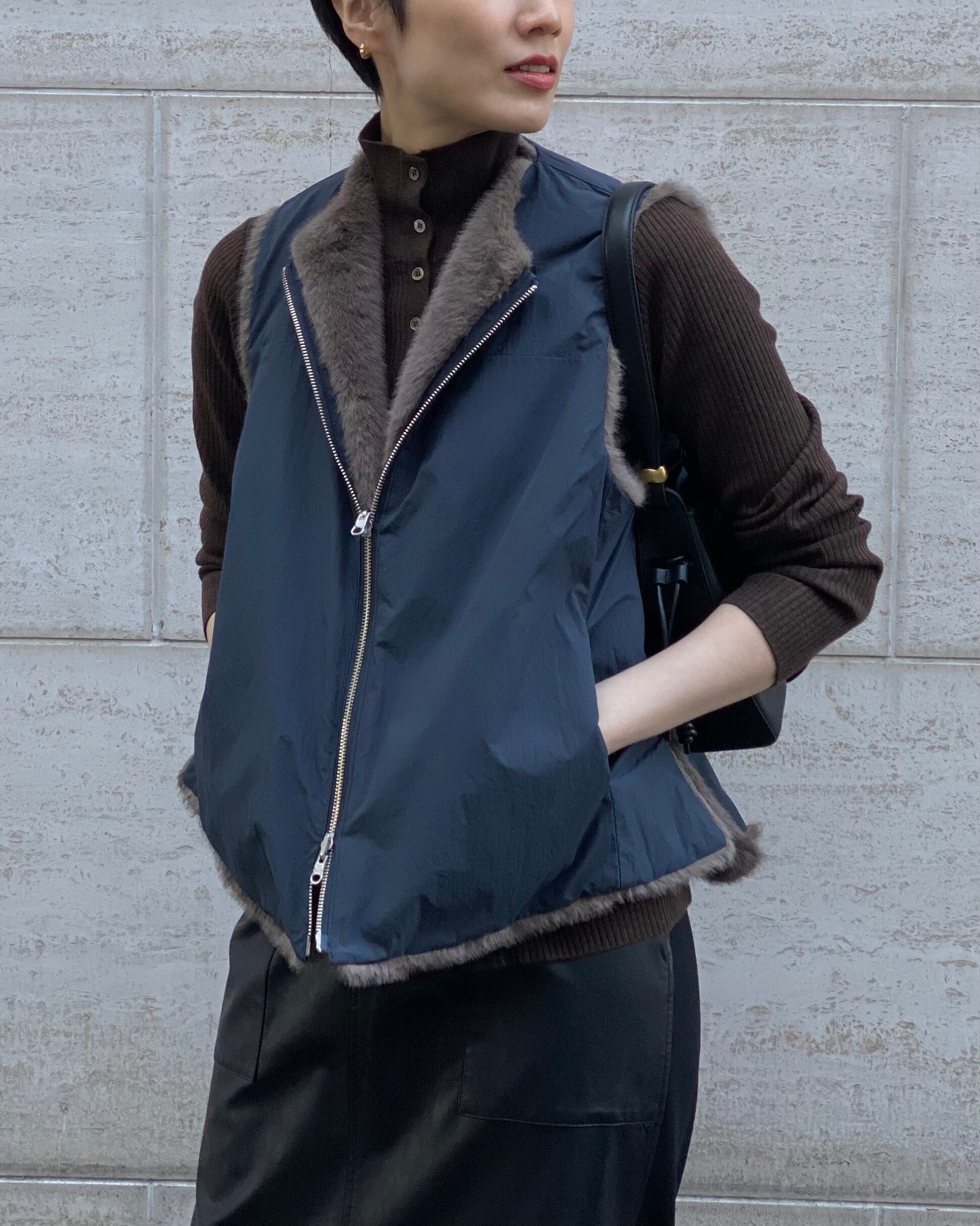 サスティナブルなミンク調のエコファーと、マットな風合いのタフタ生地を使用した裏表2WAY仕様のリバーシブルベスト。