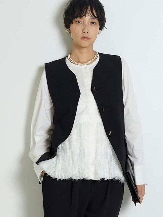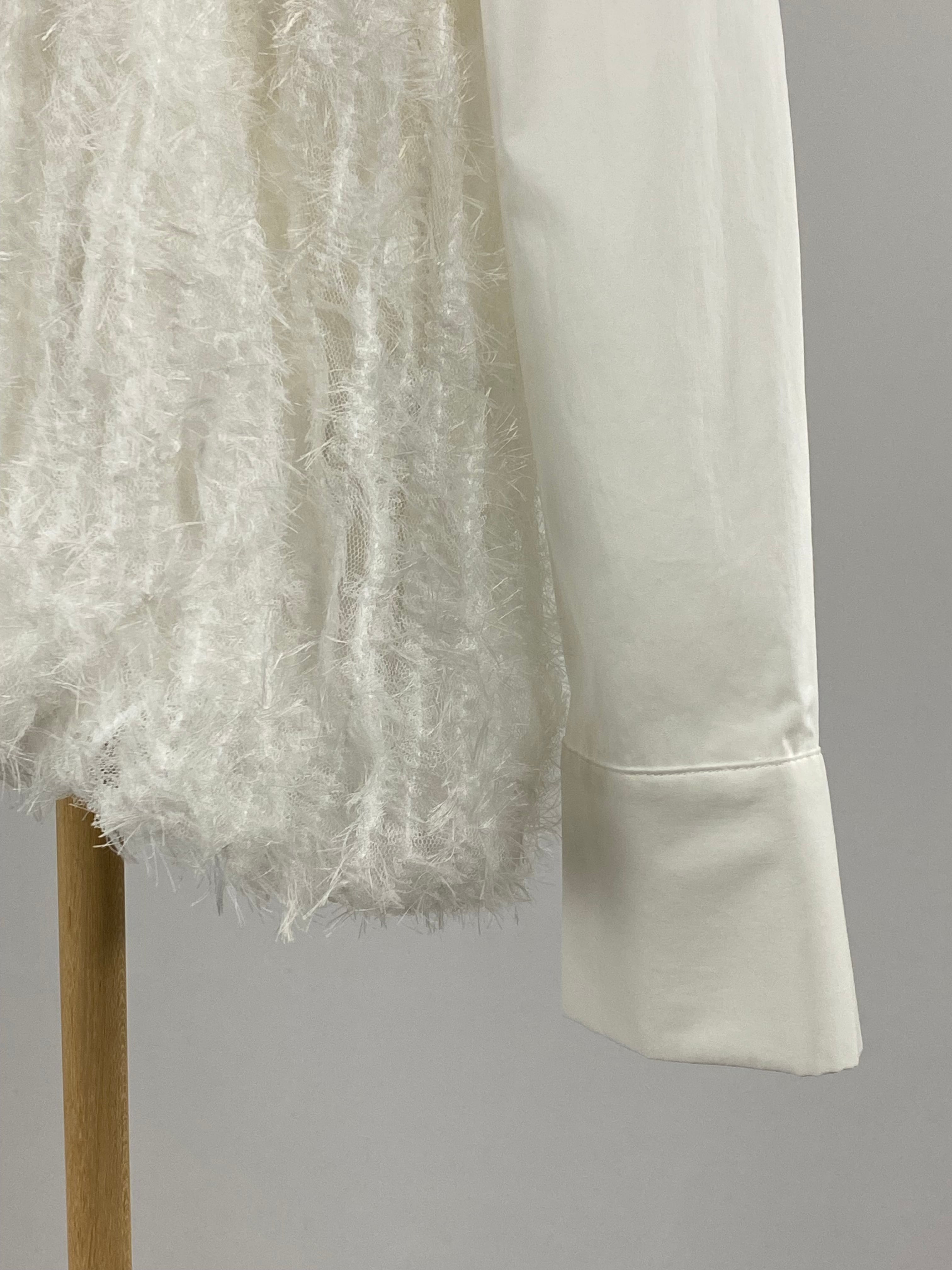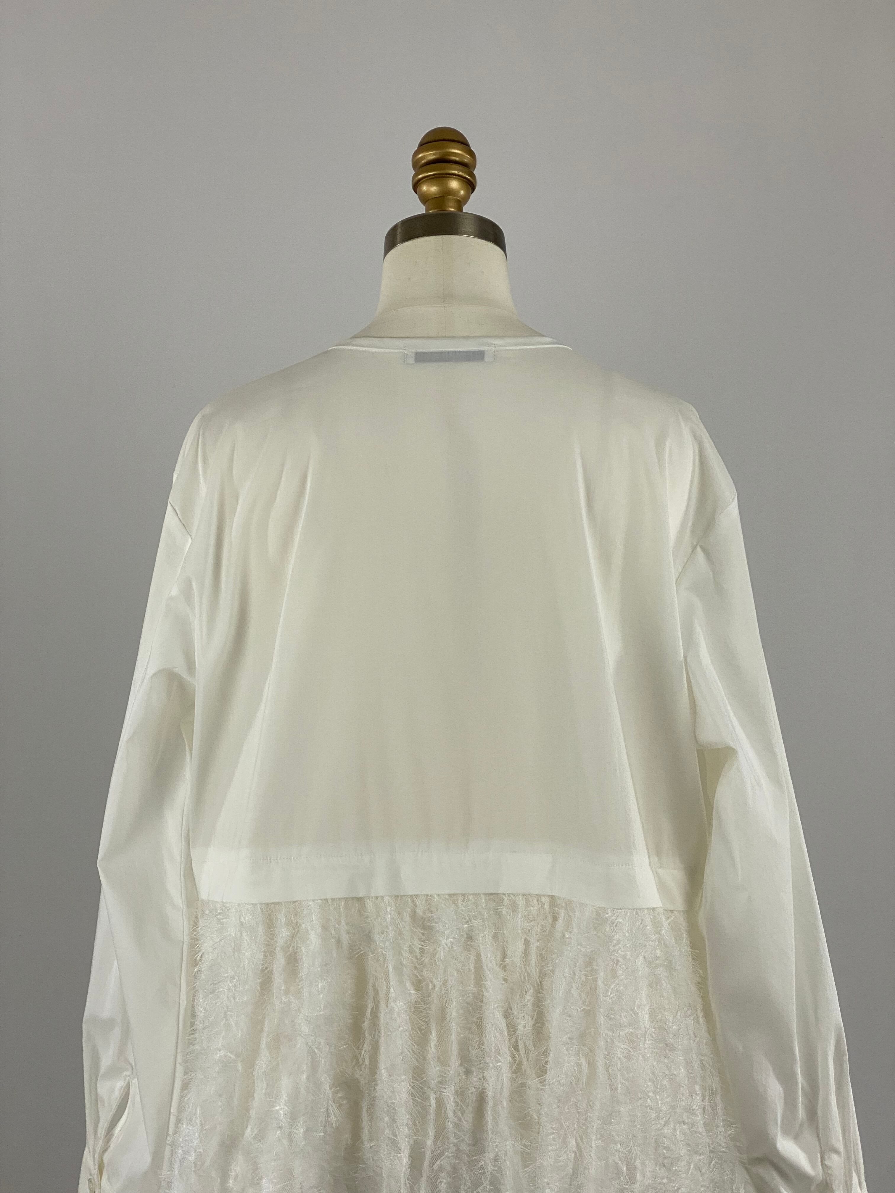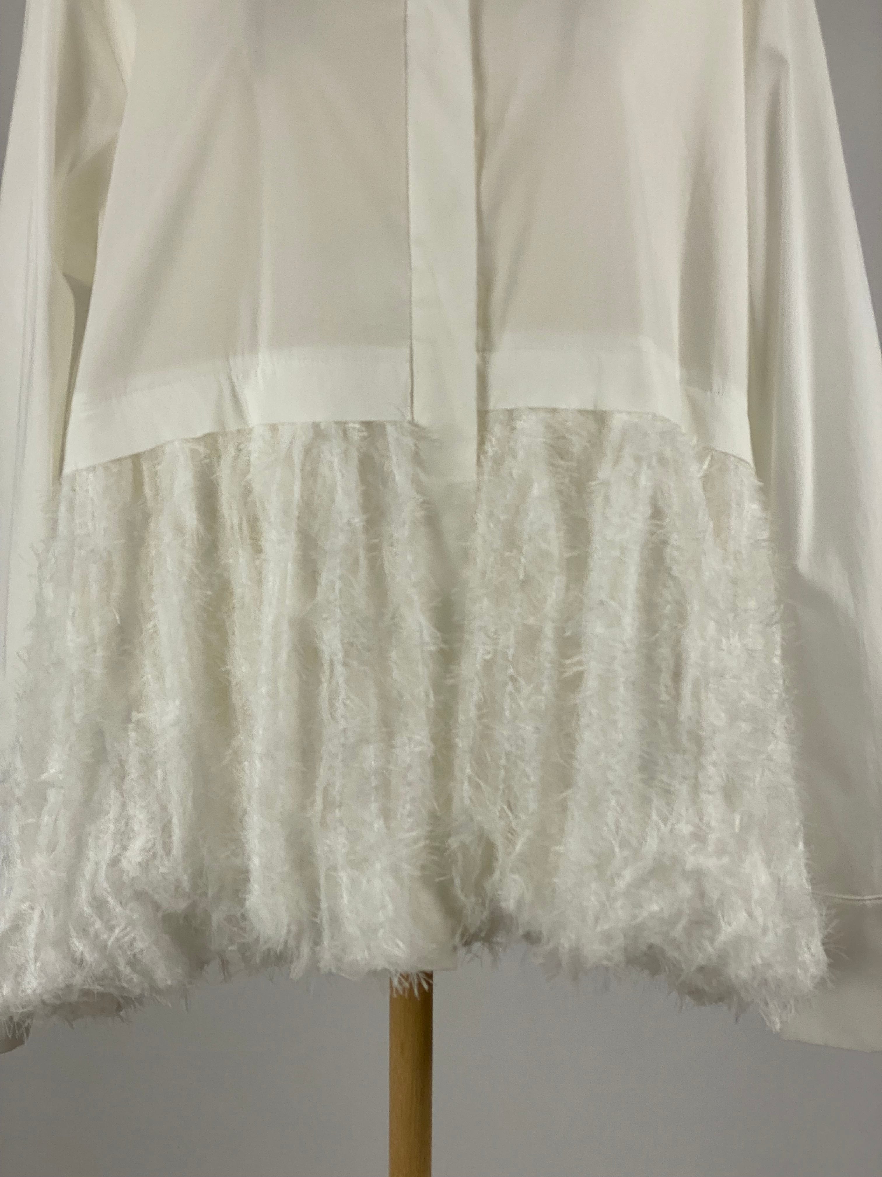 毛足のあるファー素材を裾に切り替えた、華やかなデザインシャツ。
