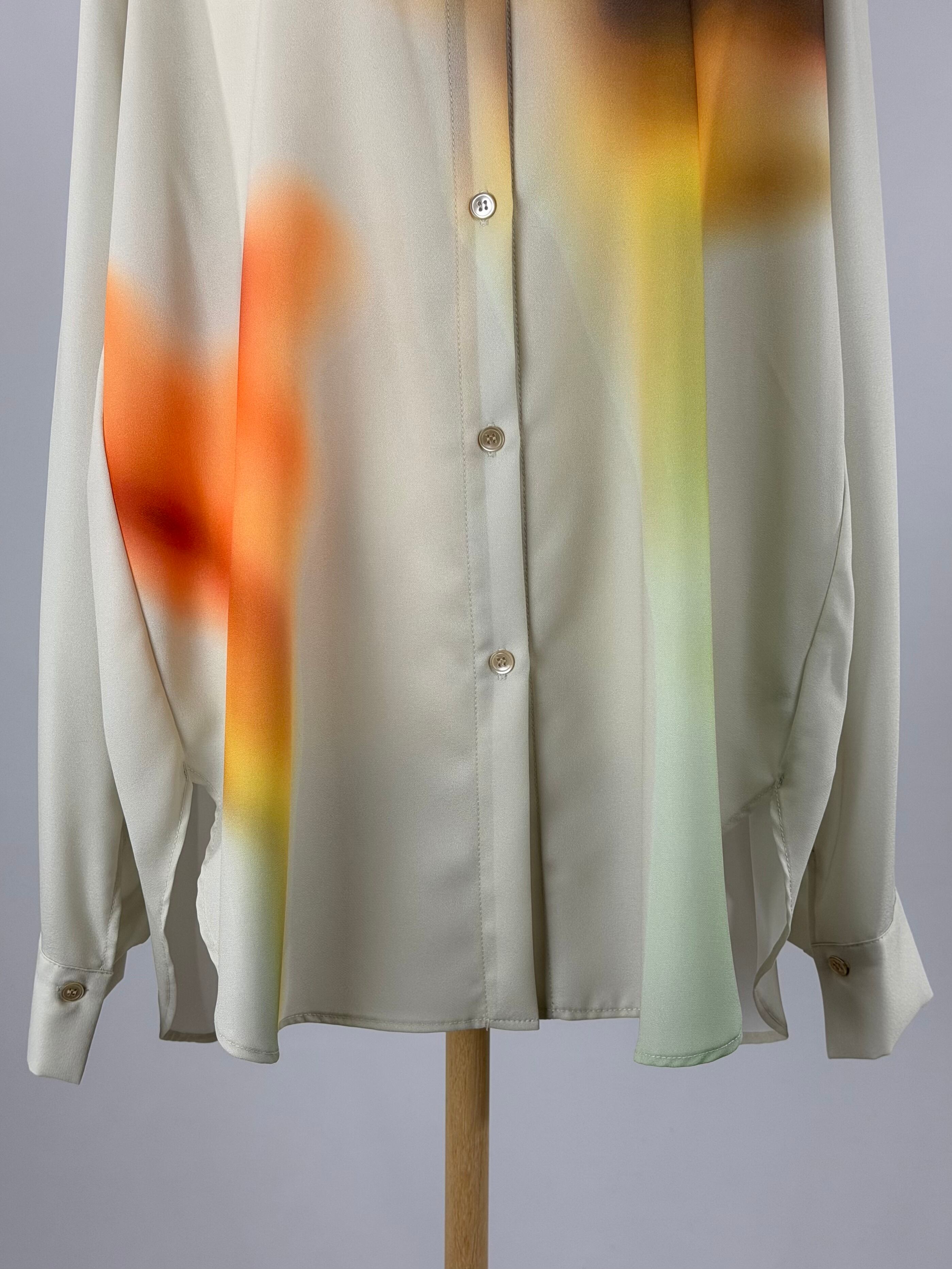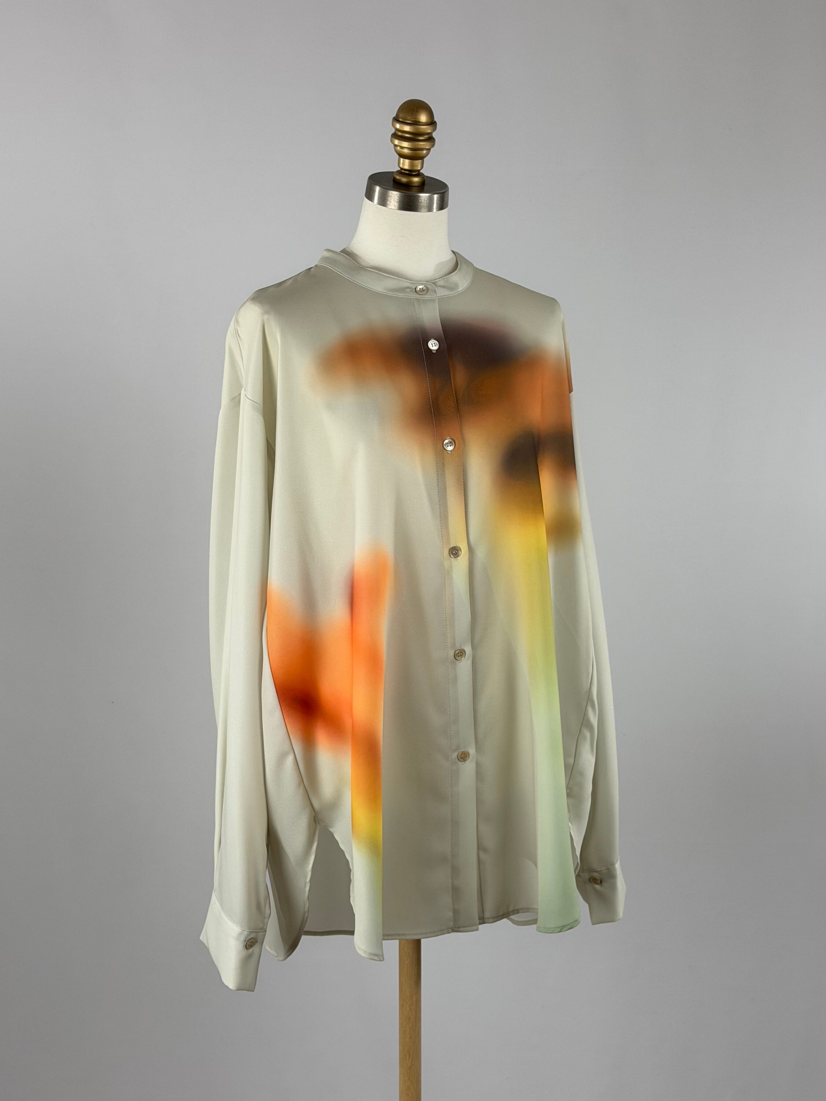 シャツ全体に大きくぼかし風のお花をプリントし、アートのような柔らかい印象。