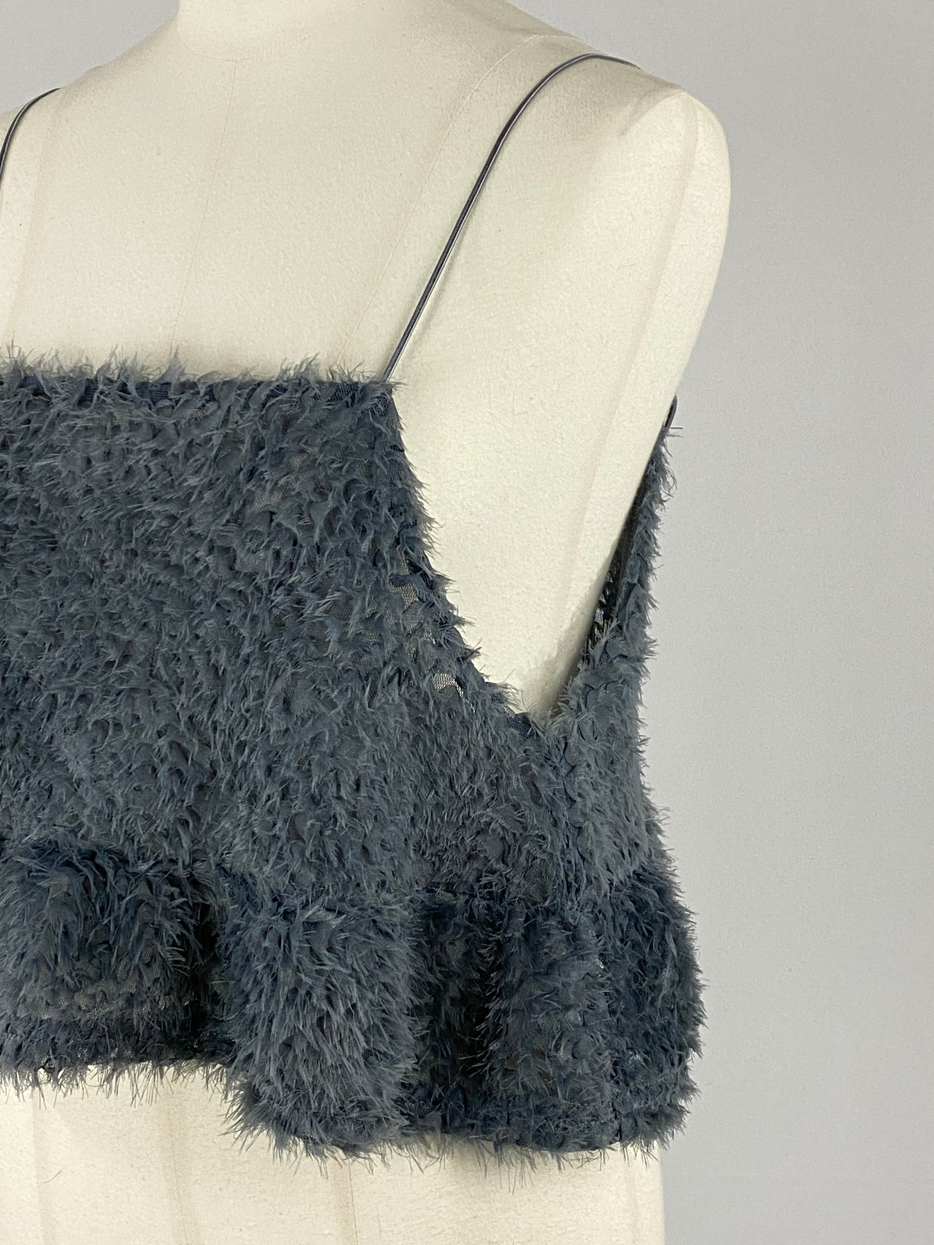 繊細な刺繍チュール素材で仕立てたフェミニンなチュールビスチェ。