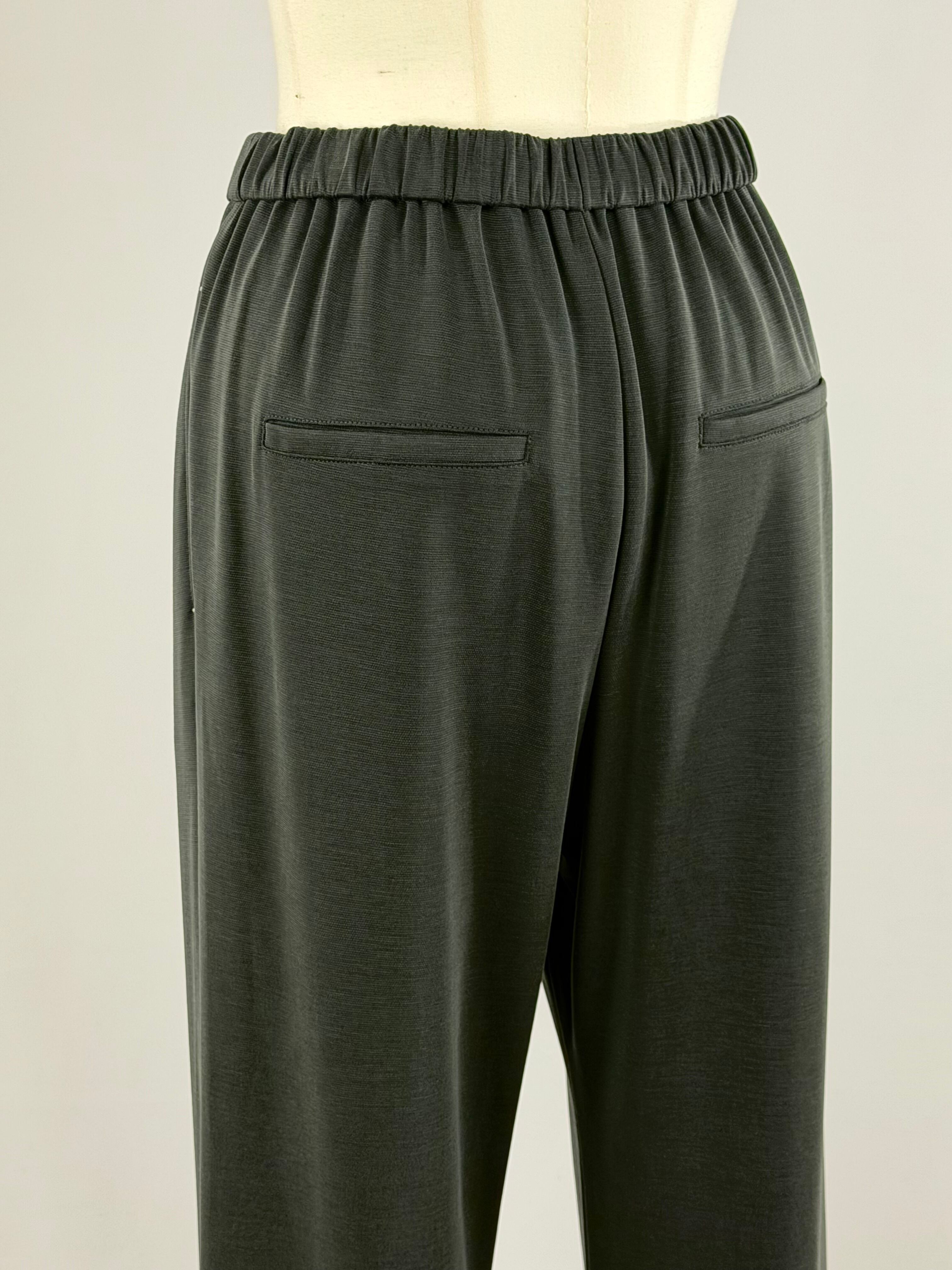 フィブリル加工のダブルジャージー生地で仕立てたスラックスパンツです。