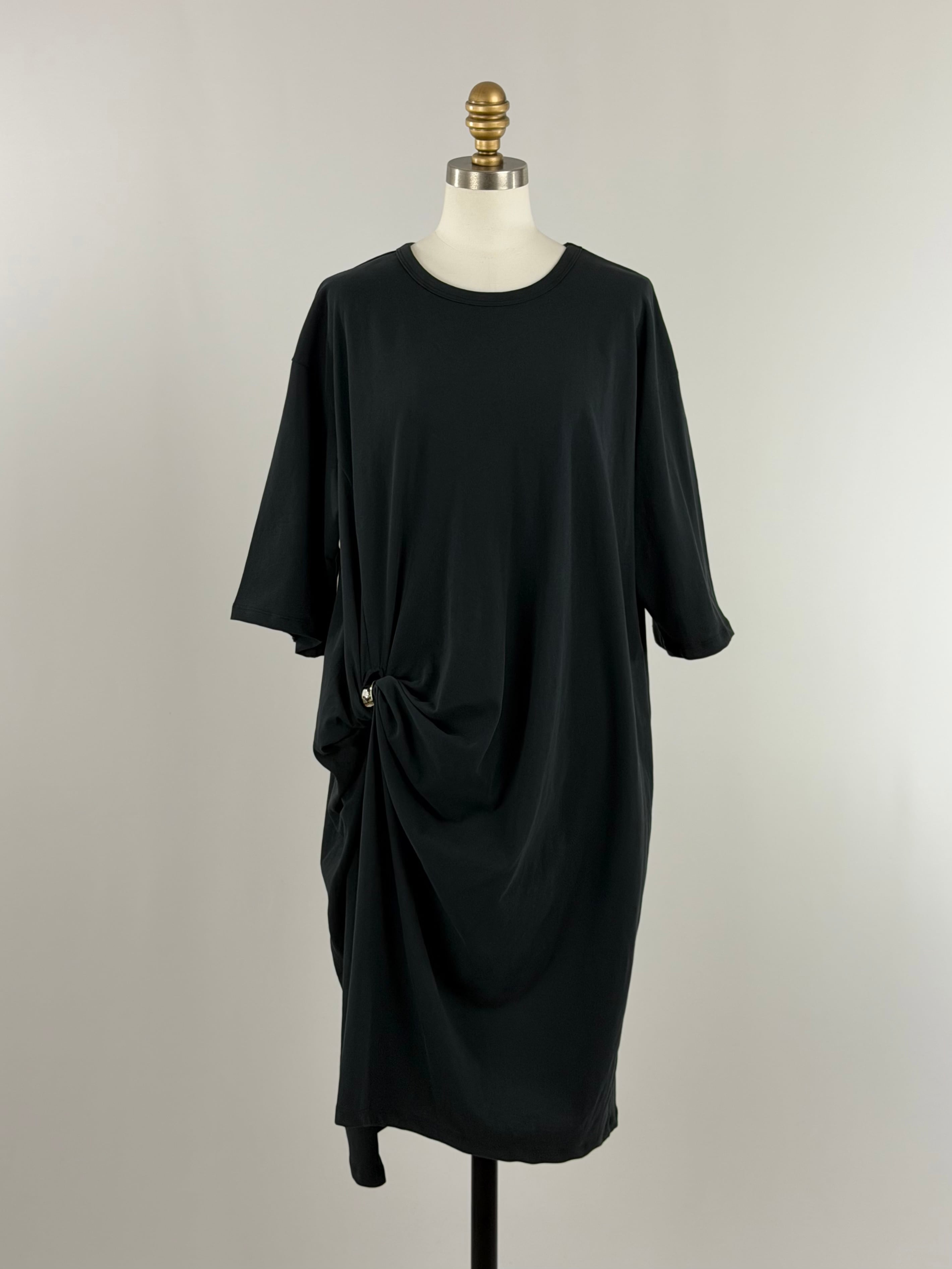 落ち感とほのかなシャリ感が心地よい素材で仕立てたカットソーチュニックです。