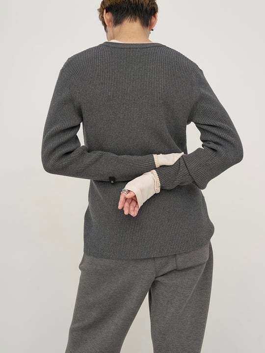 WOOL RIB CREW CD|チャコールグレー|YENN