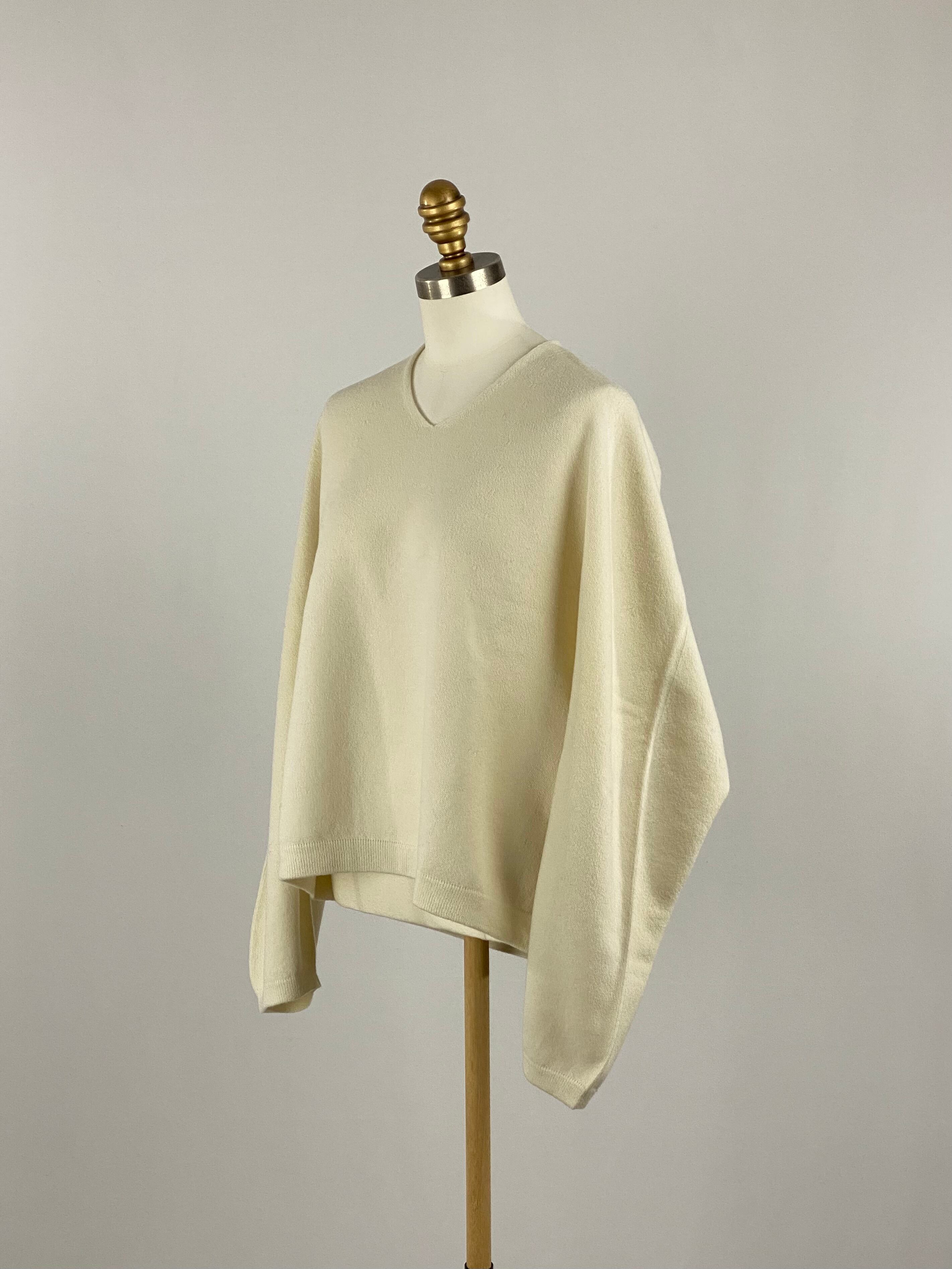 ホールガーメントVネックニット|アイボリー|Maglia Plus