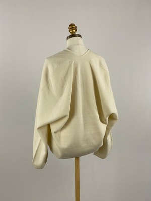 ホールガーメントならではのネック始末や、着用すると背中にボリュームの出るシルエットが抜け感を演出。