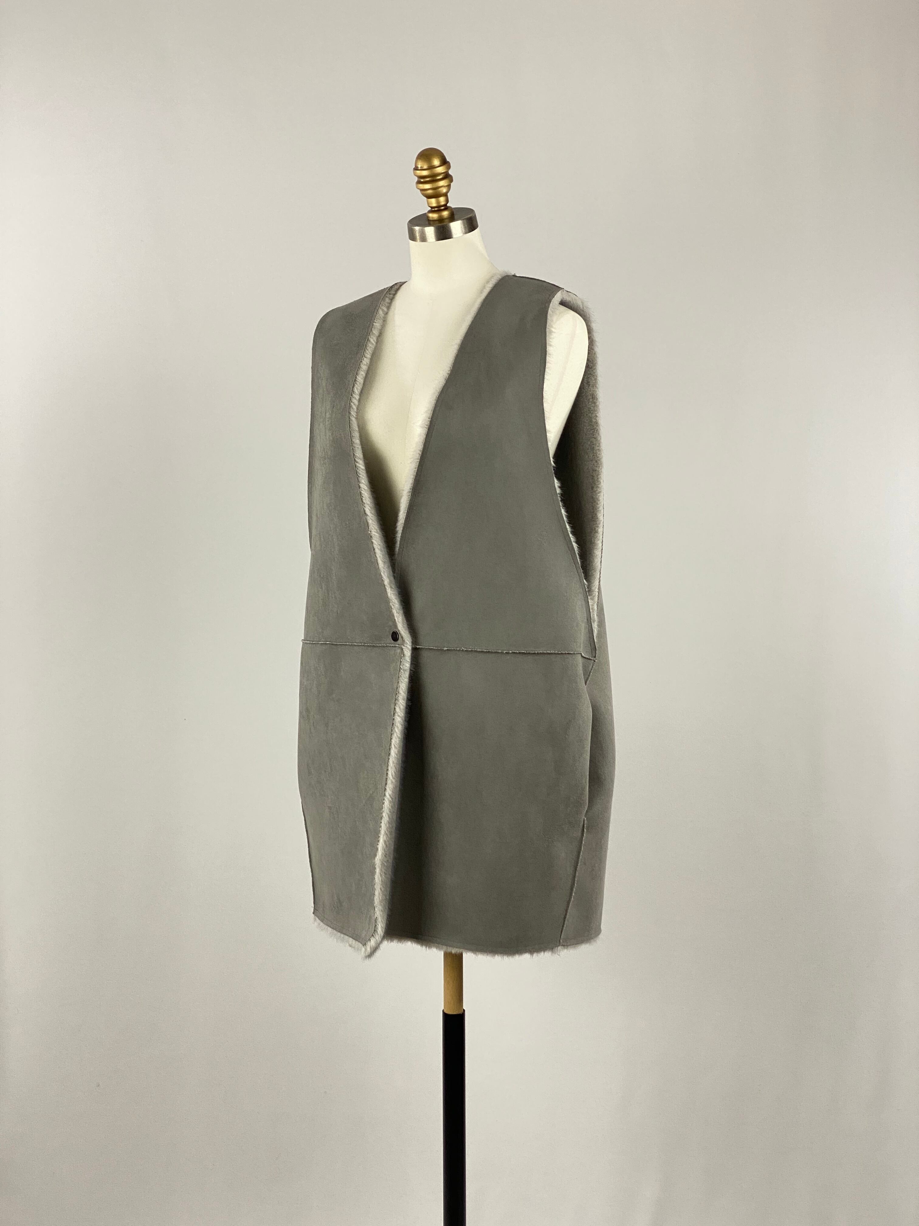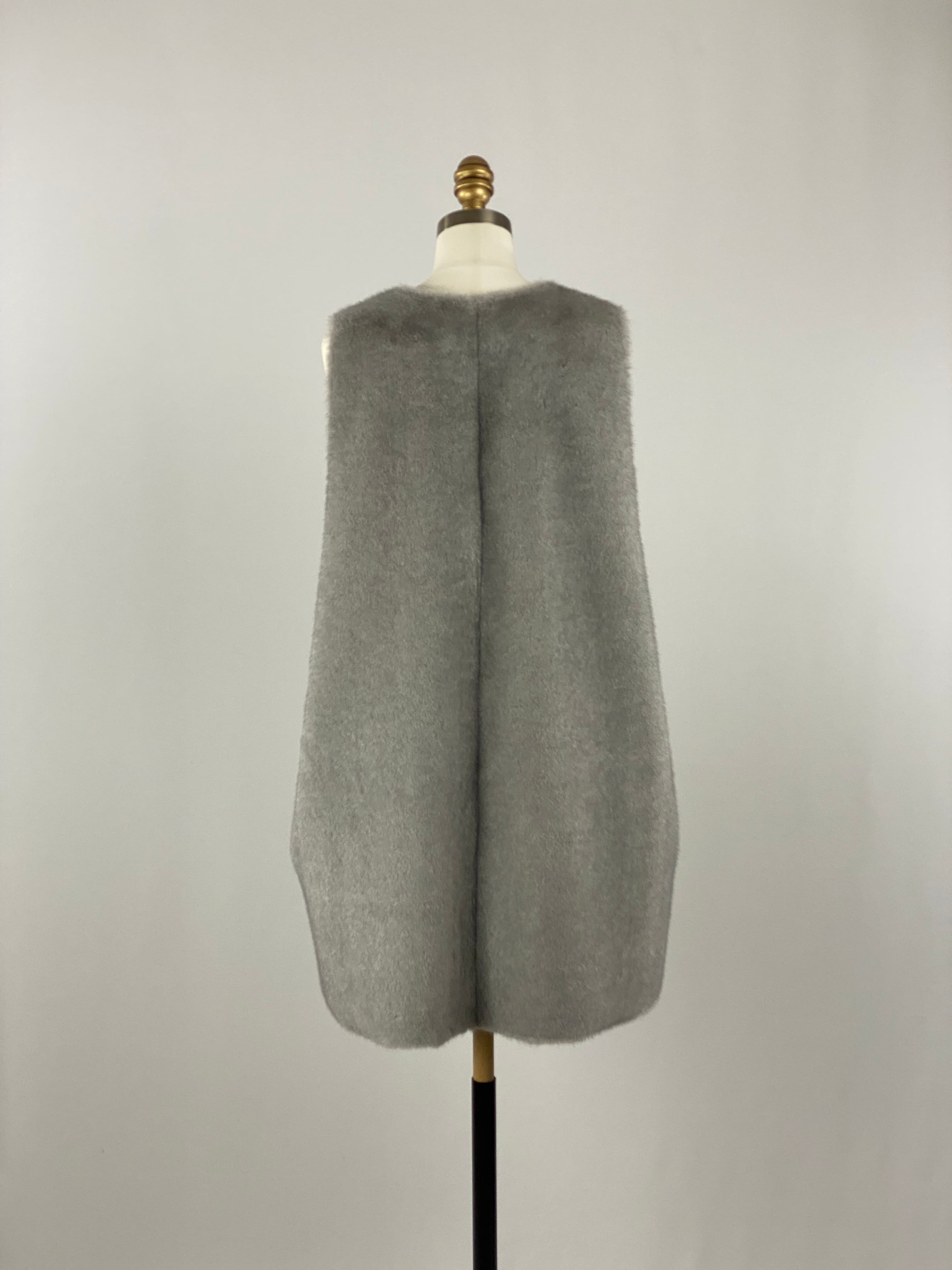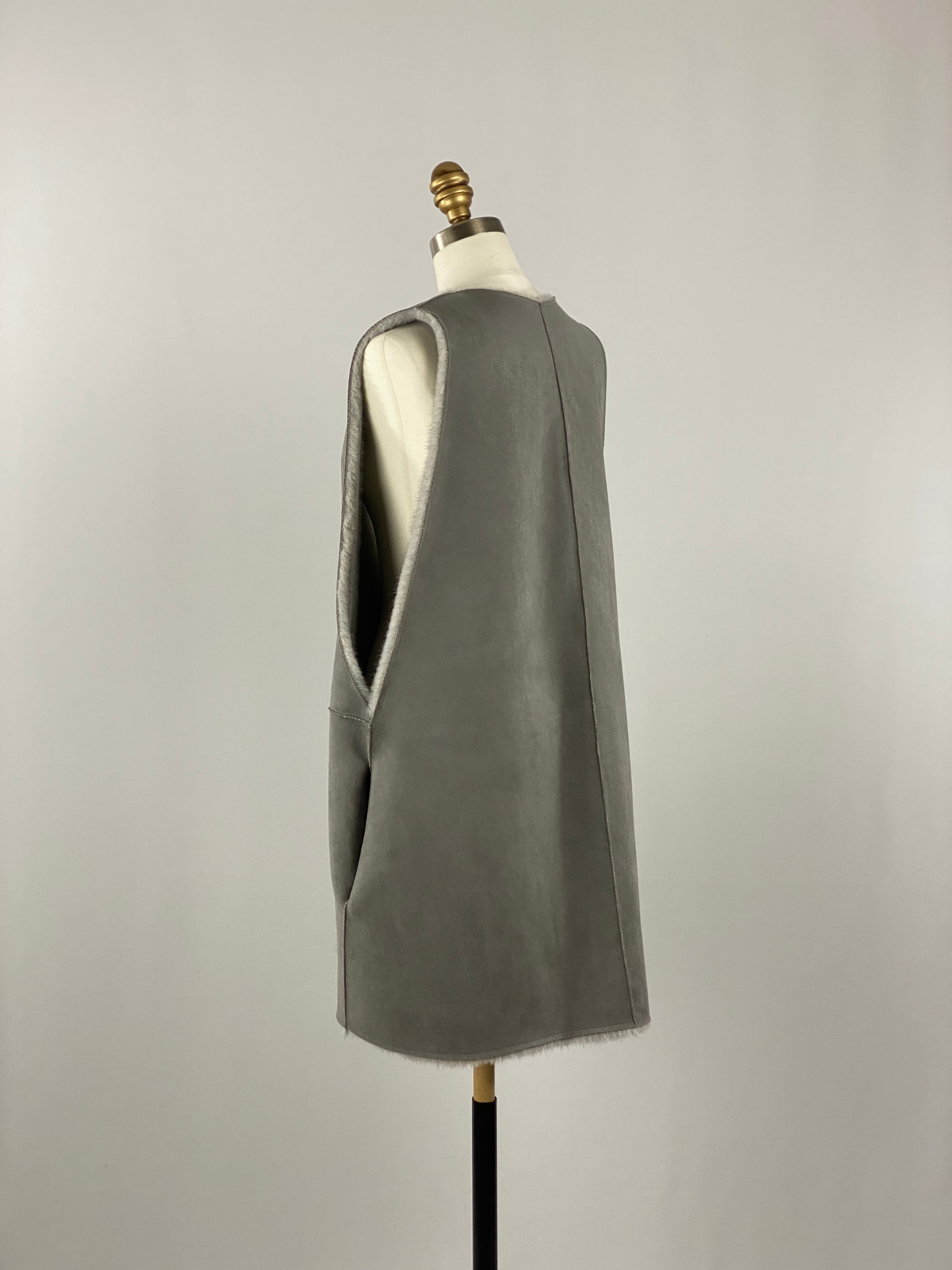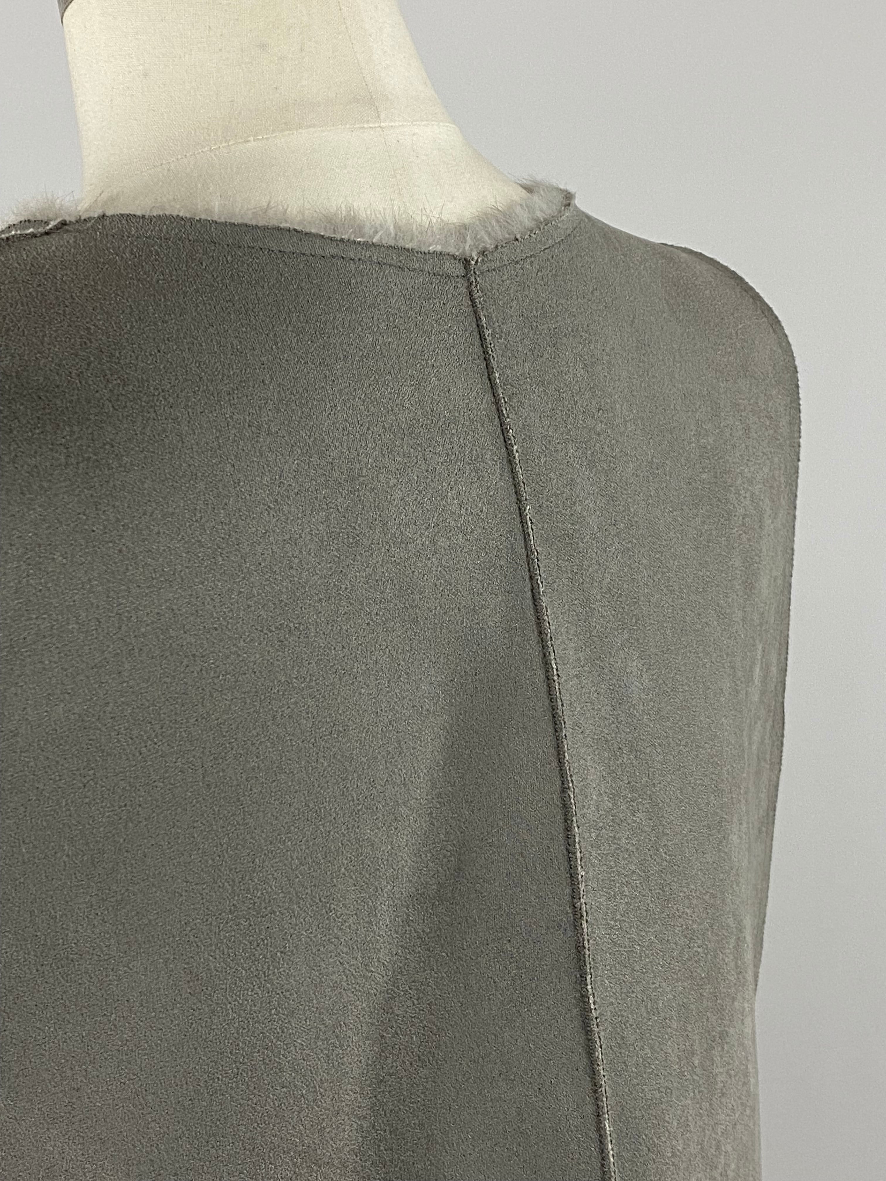 手触り抜群のふわふわなラクーン風フェイクファーと、上質なスエードがリバーシブルで楽しめるアイテムです。