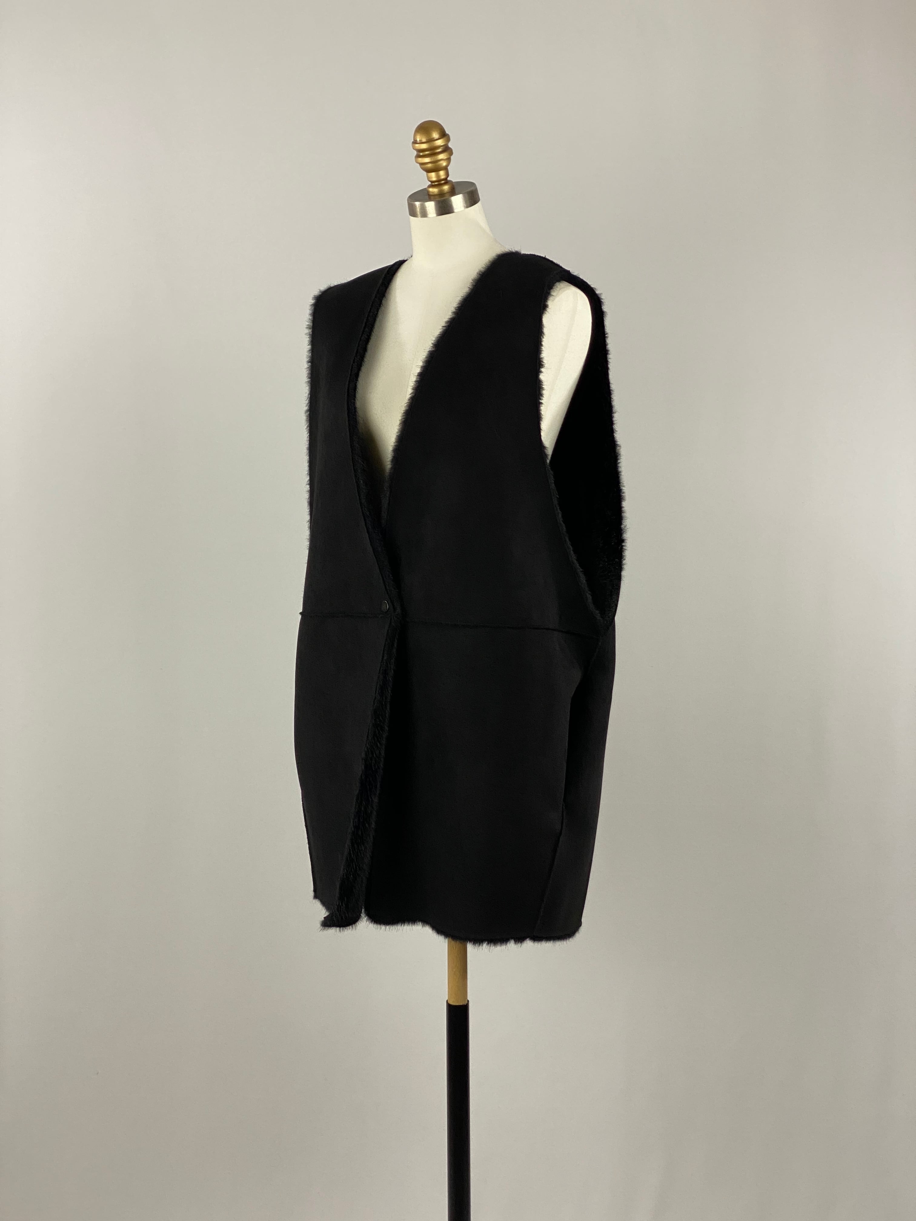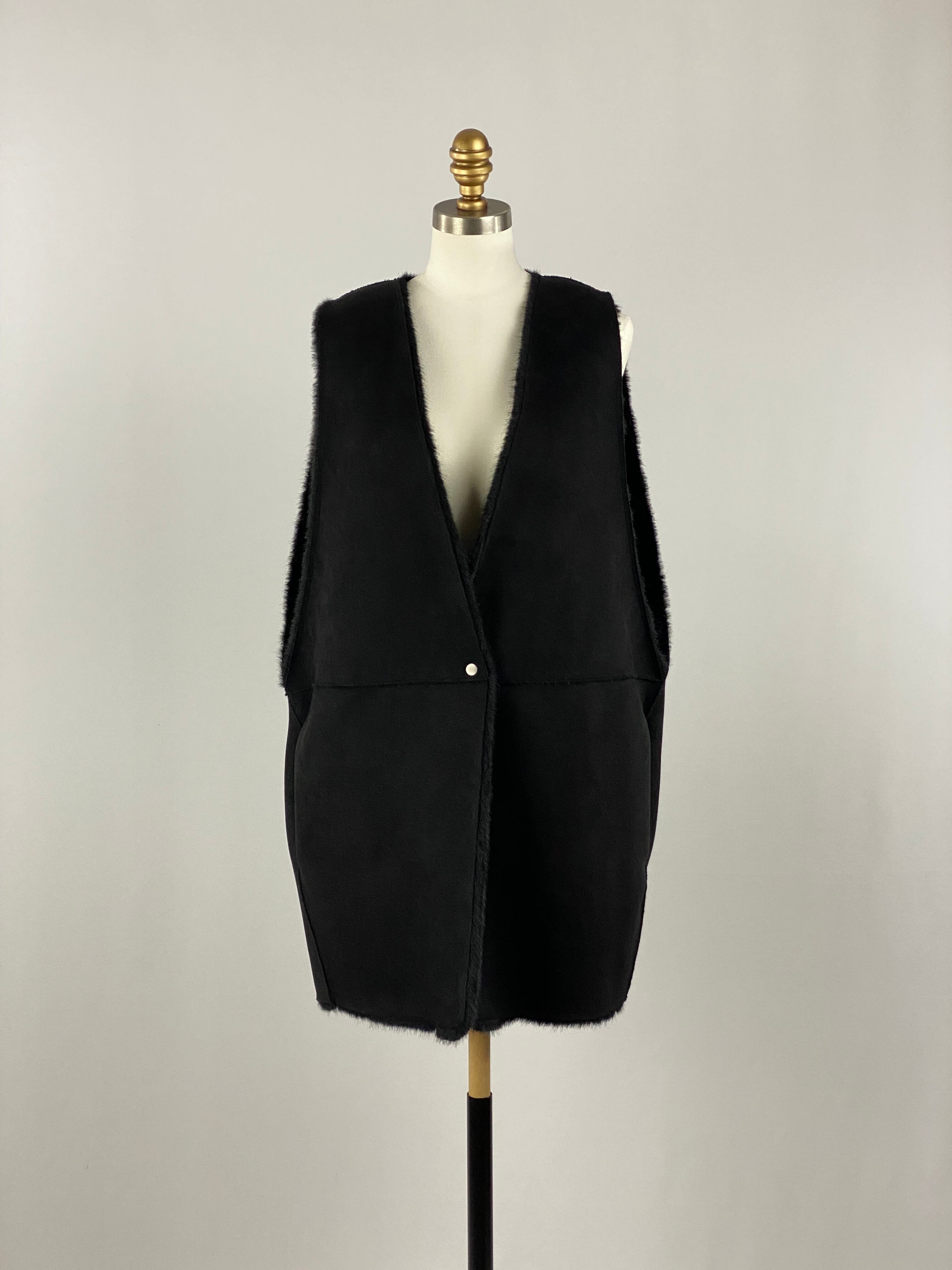 手触り抜群のふわふわなラクーン風フェイクファーと、上質なスエードがリバーシブルで楽しめるアイテムです。