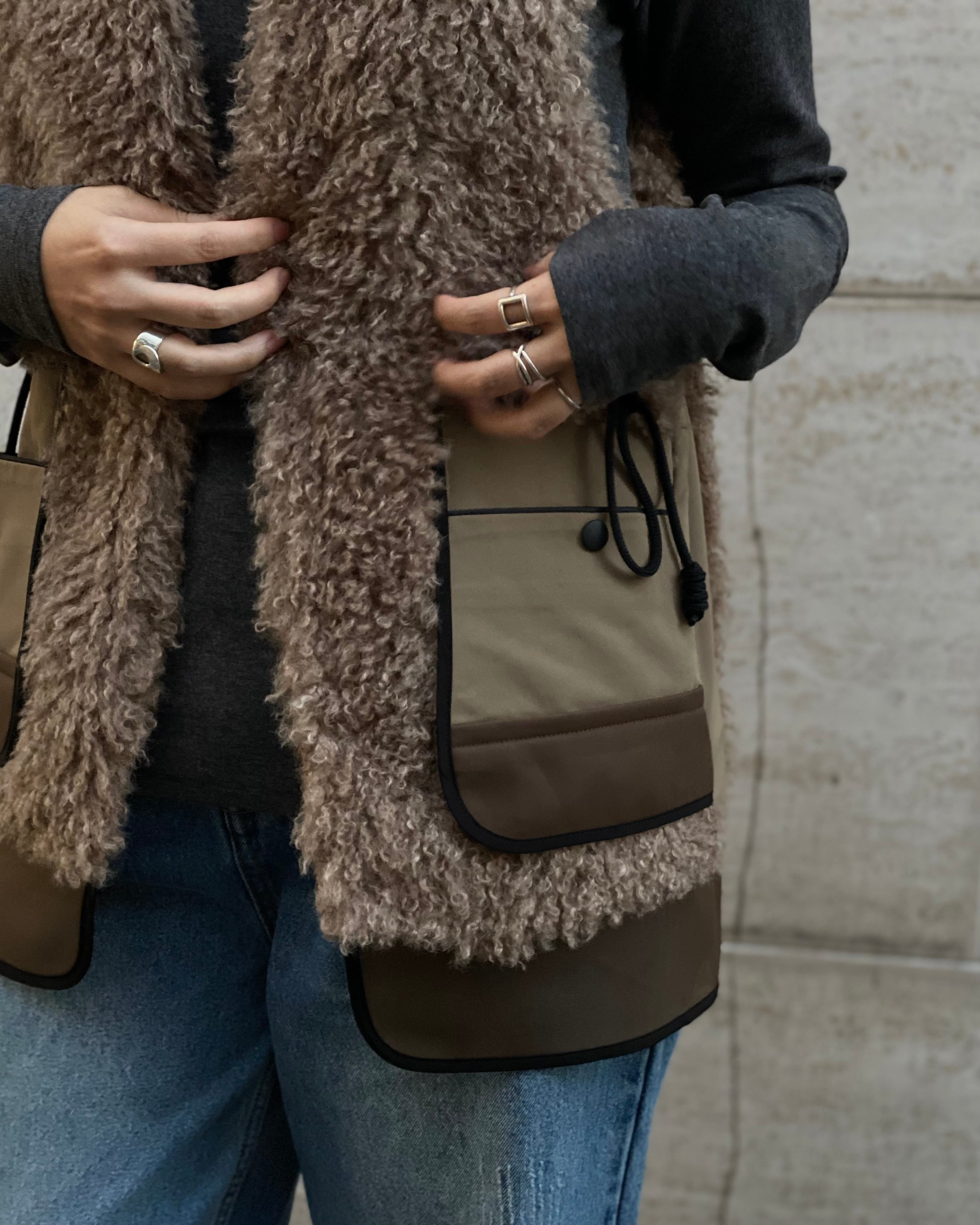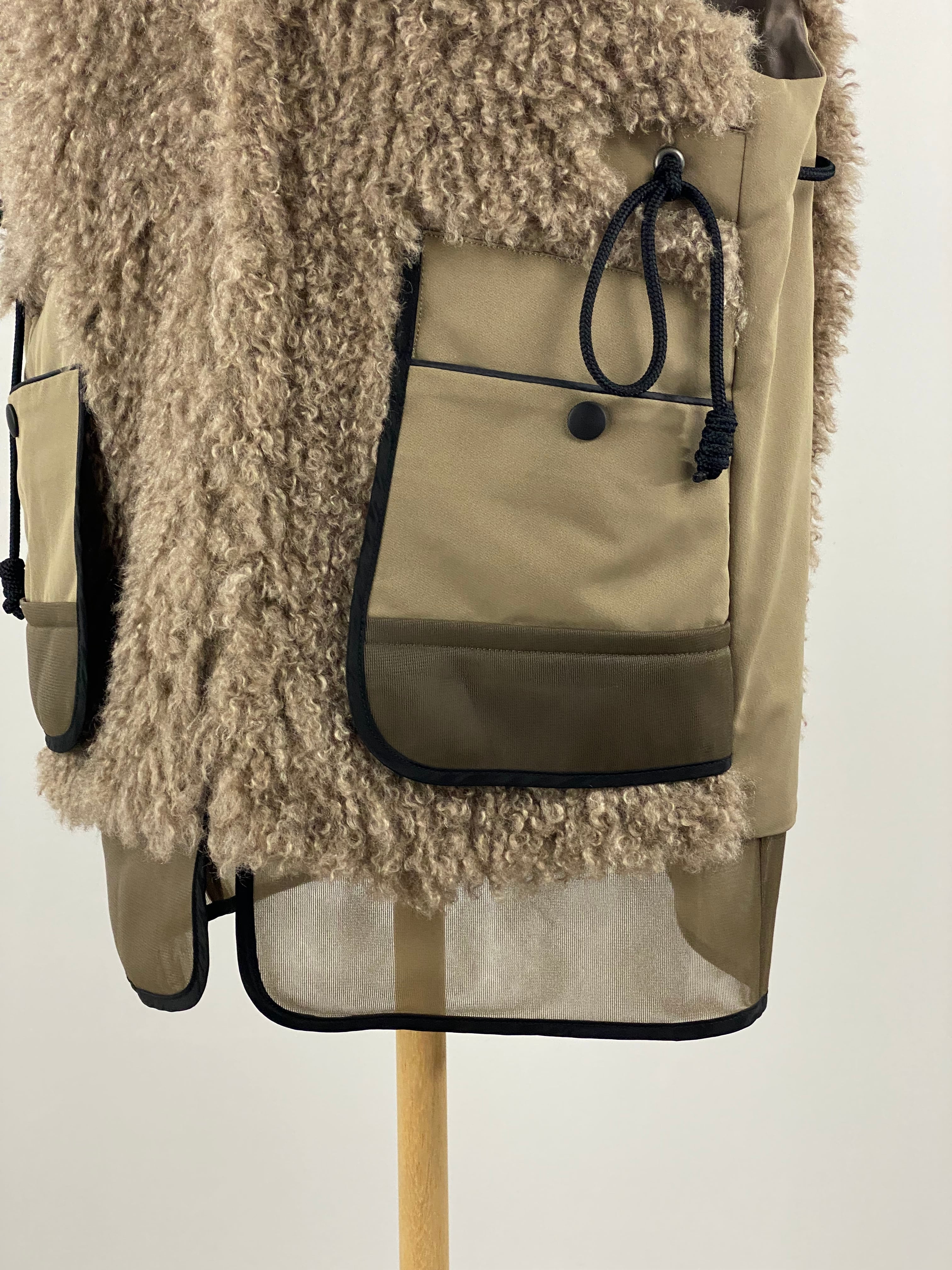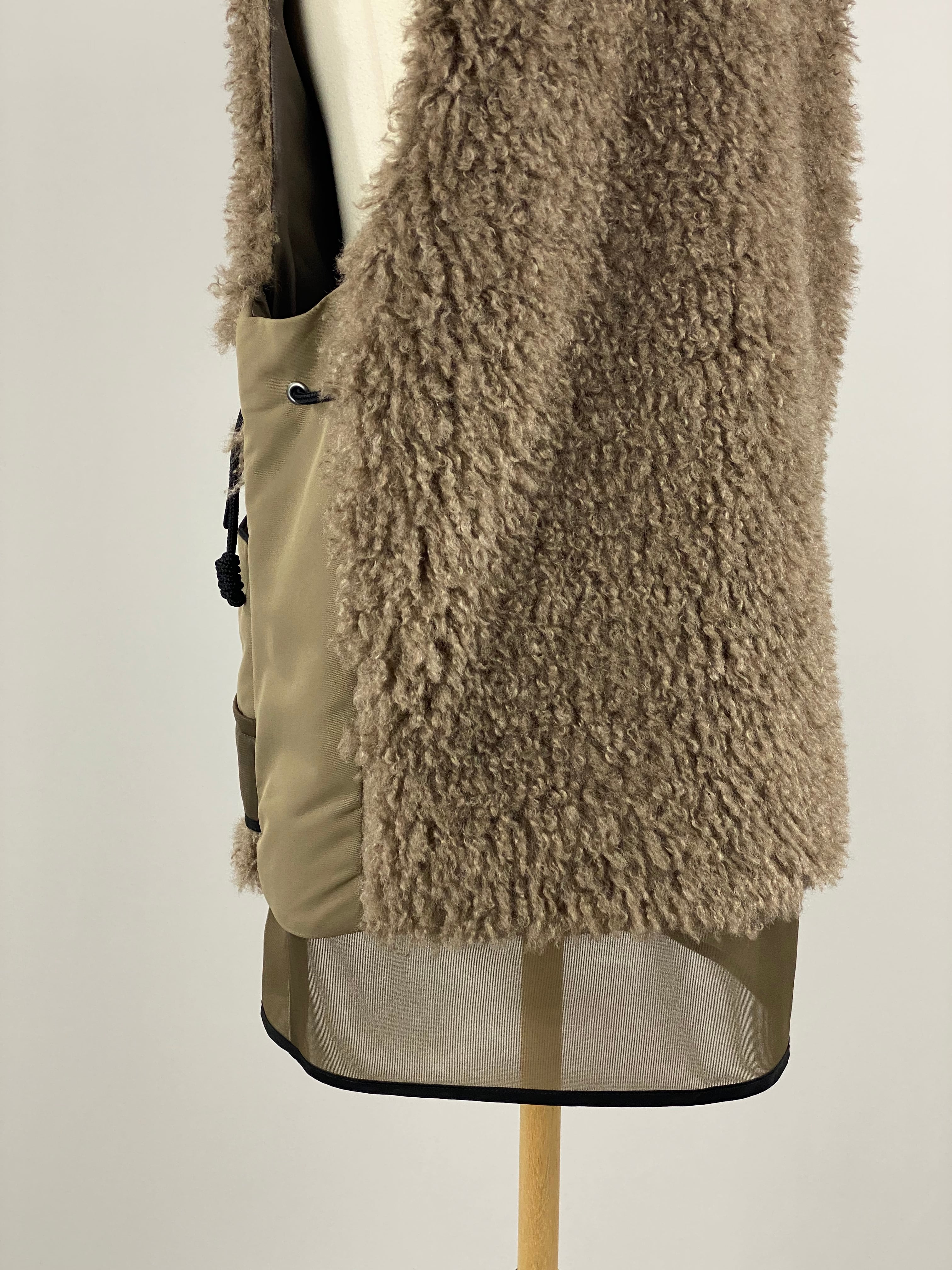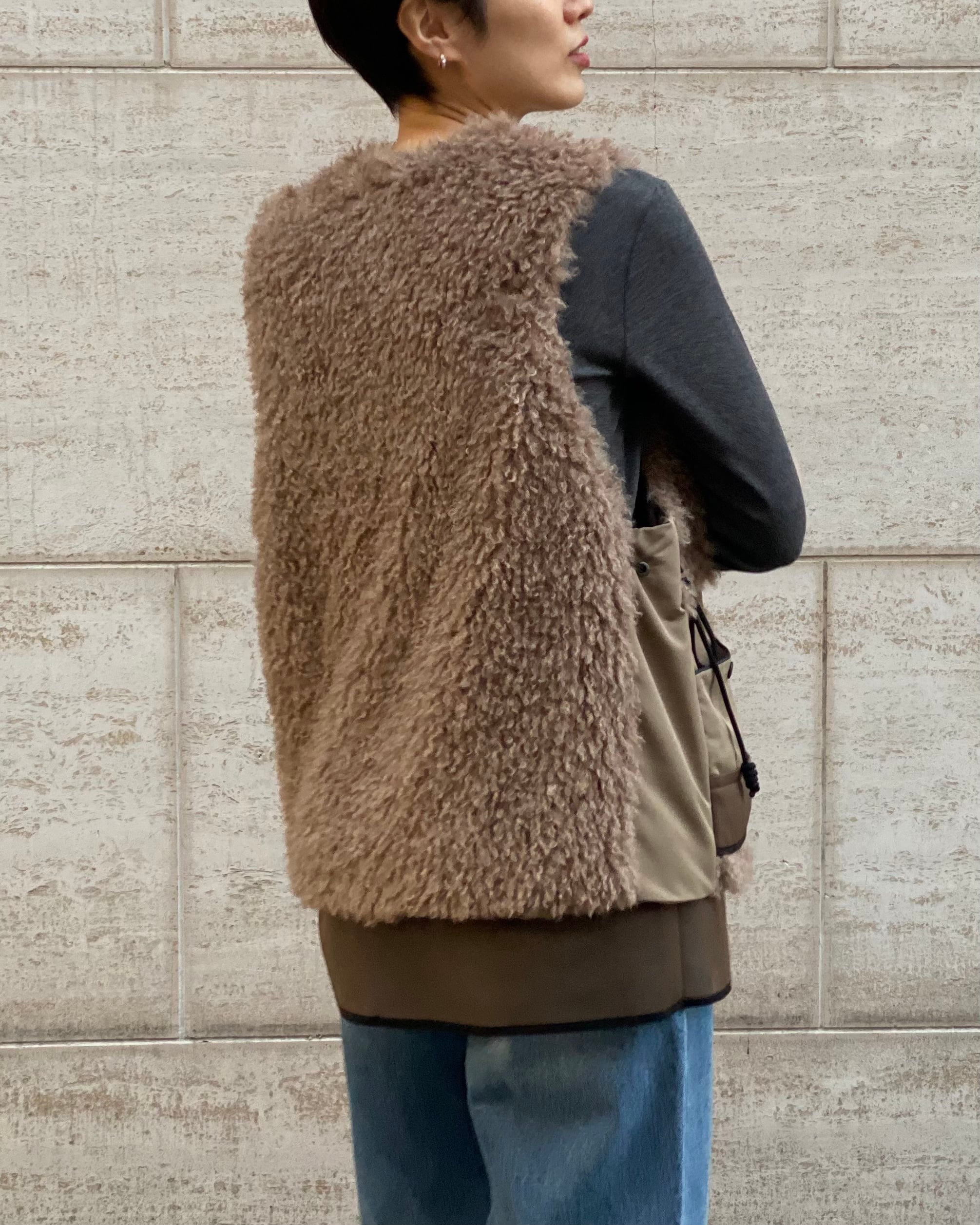 裾のシアーでもたつきがちなファーベストにも抜け感を与えています。