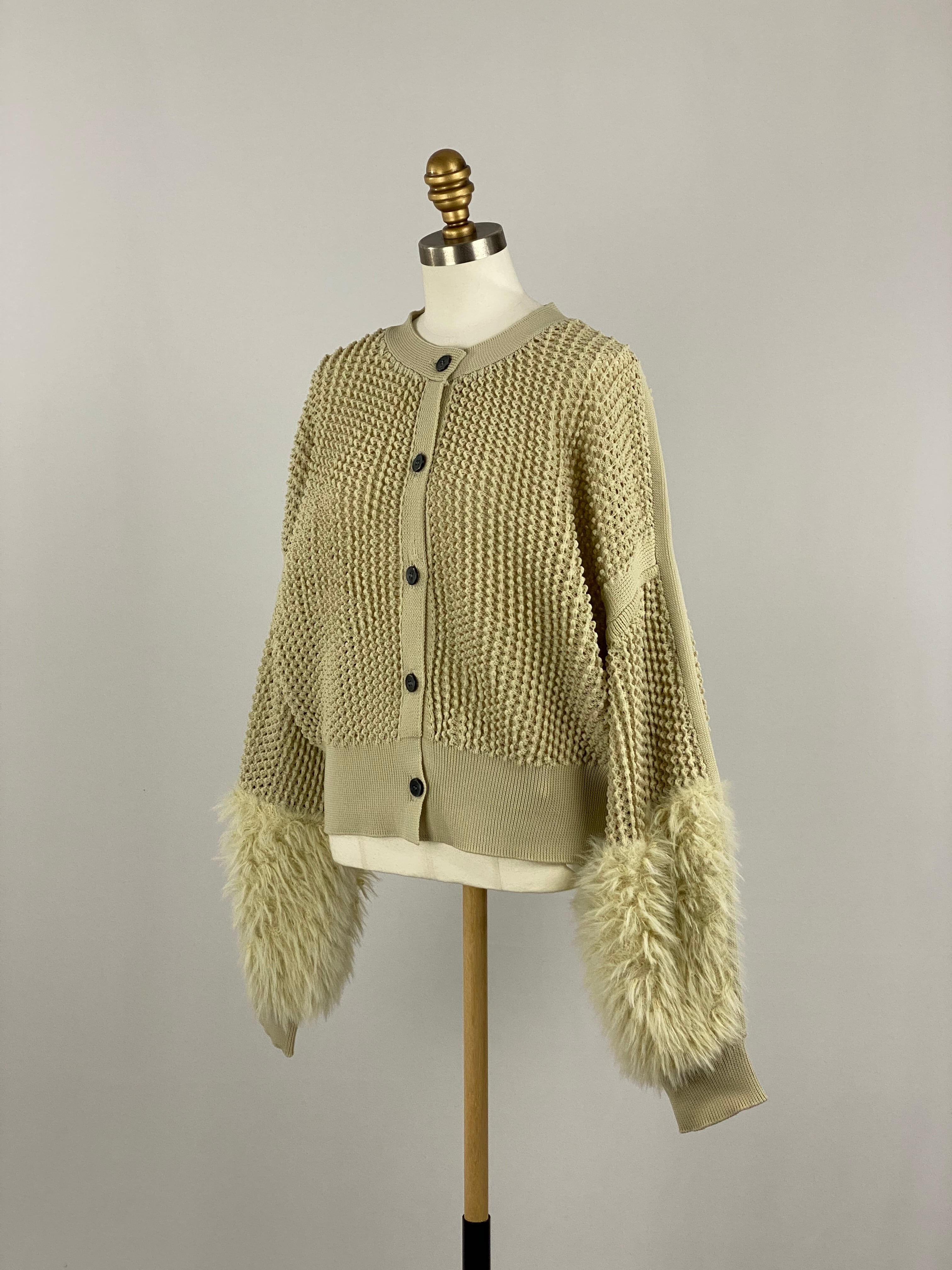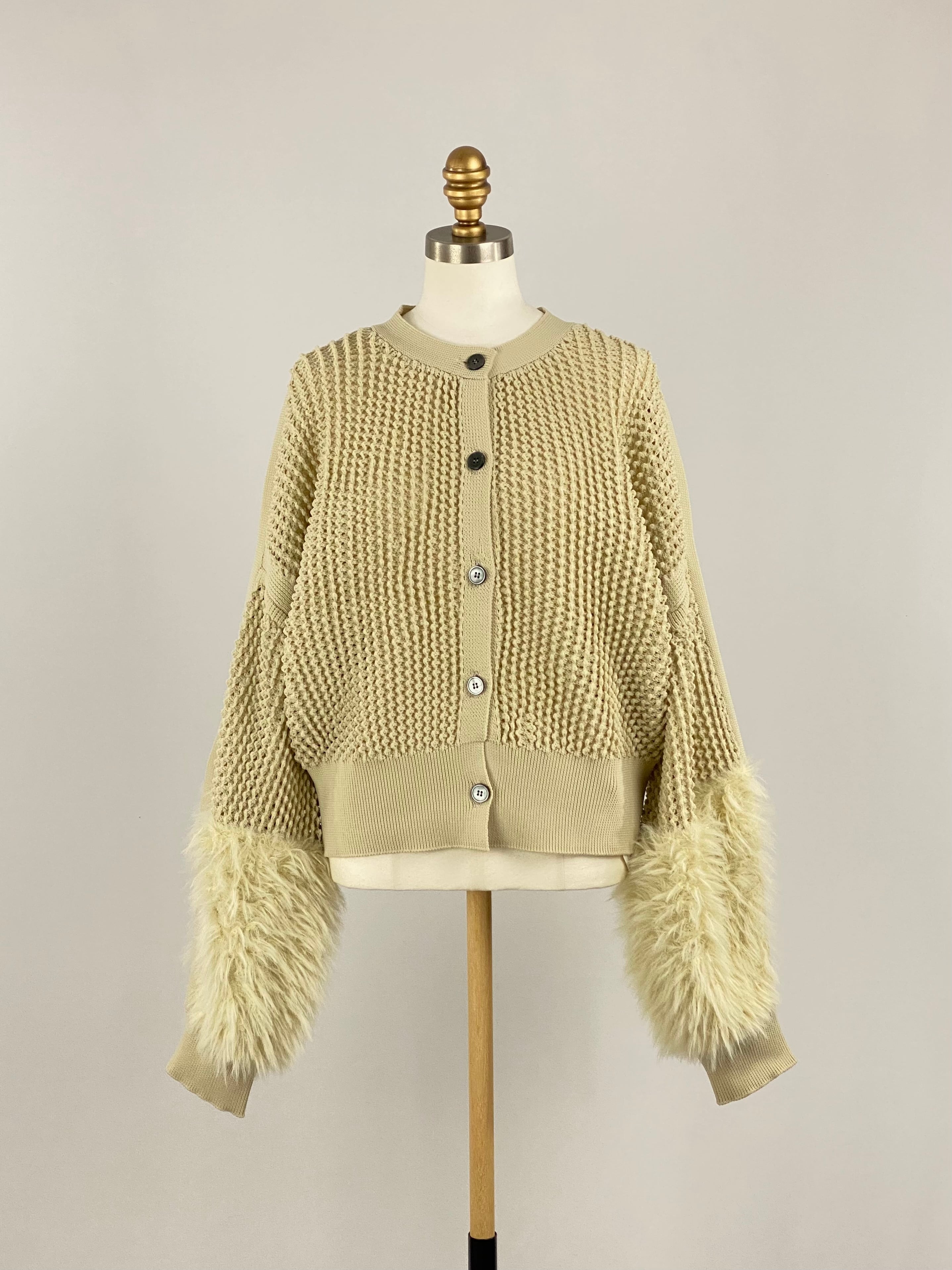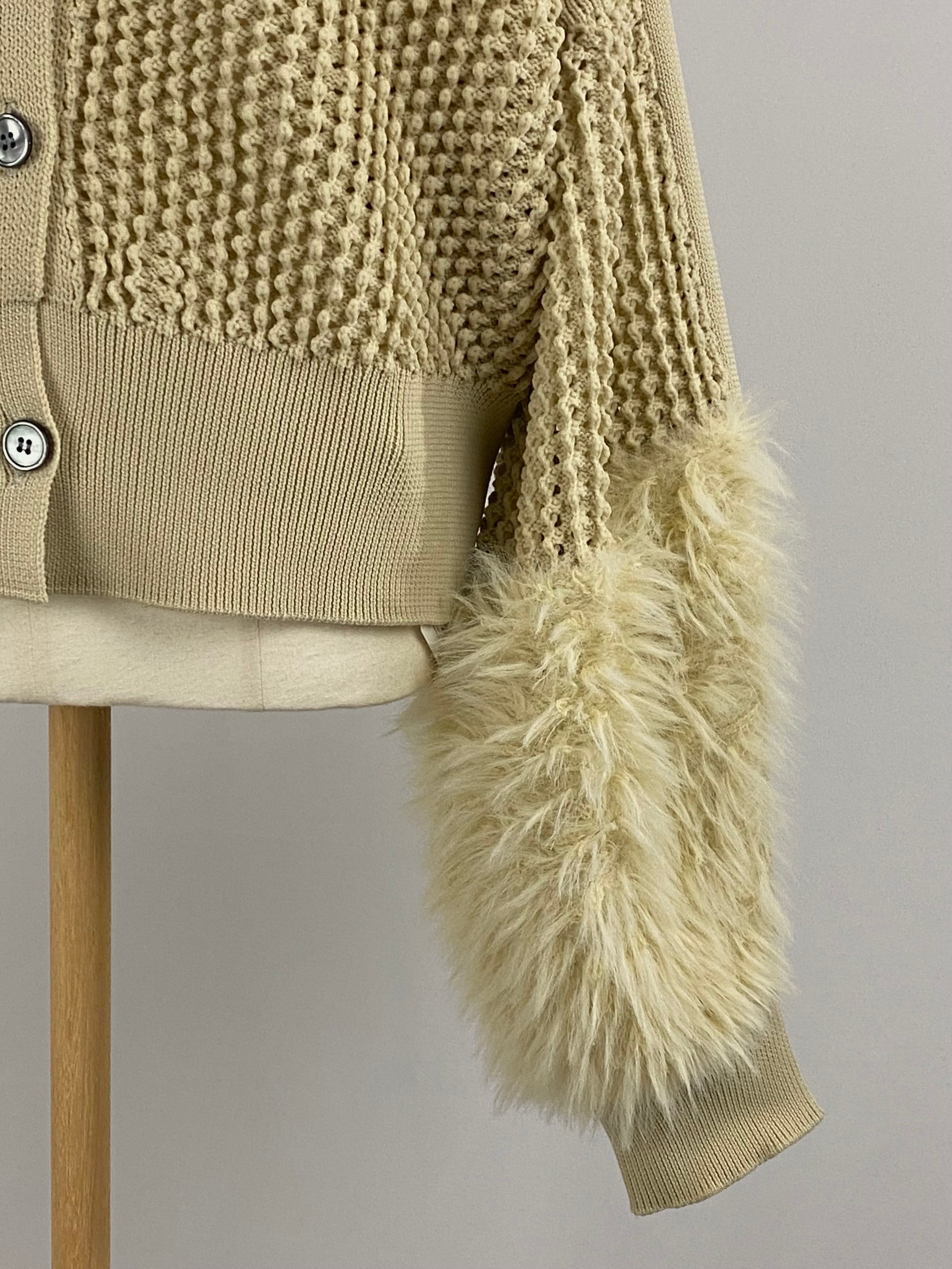 ファースリーブポップコーンカーディガン|ライトベージュ|Lallia Mu