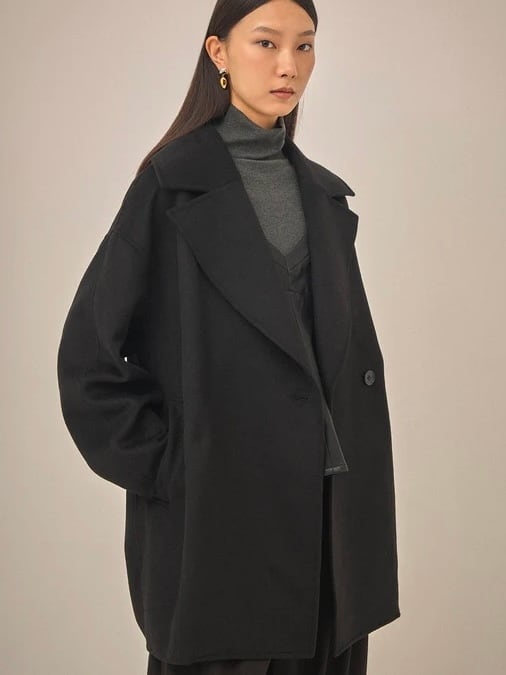 ふっくらと空気を含むようなシルエットが魅力の、リバー仕立てのコート。
