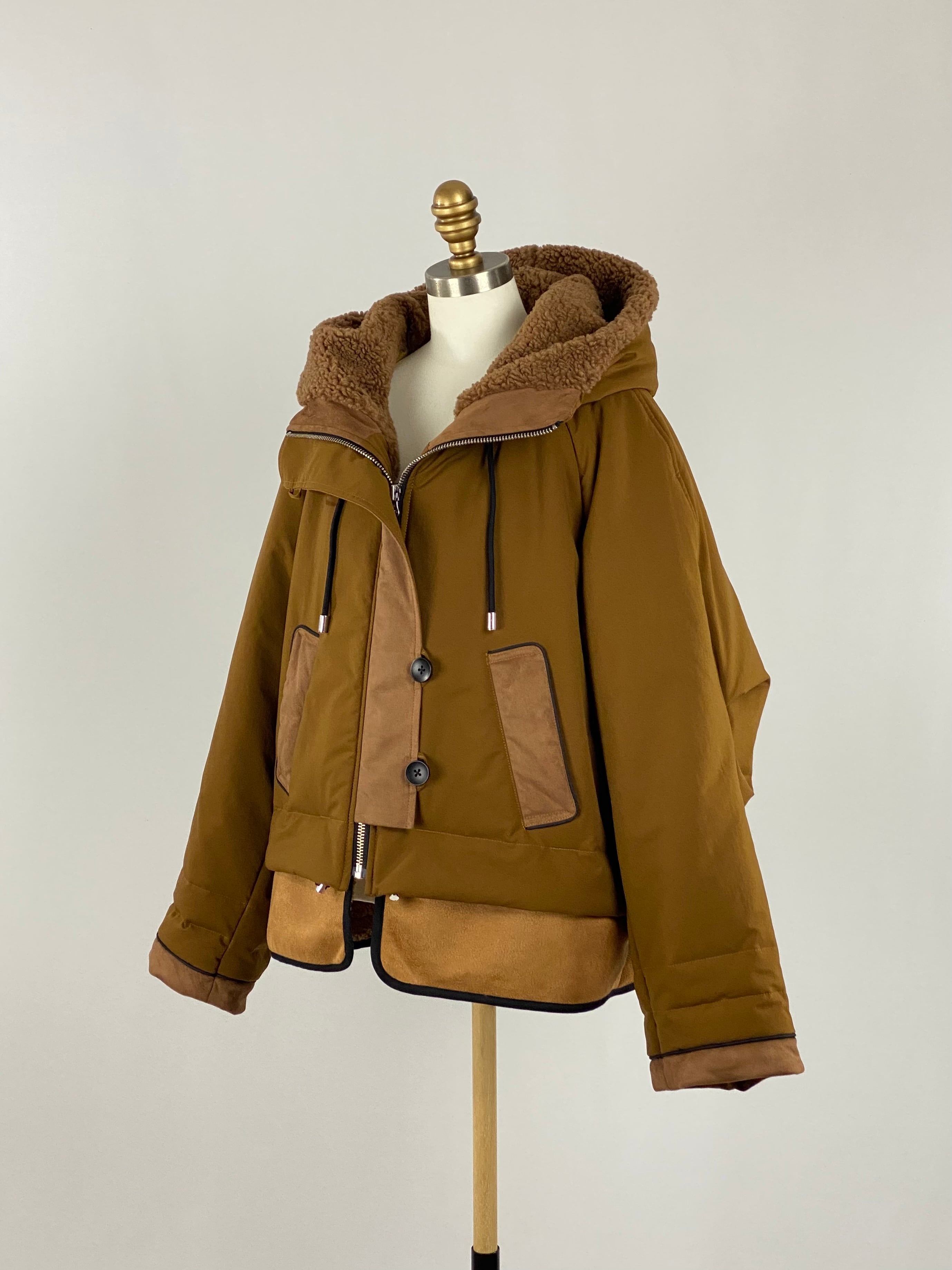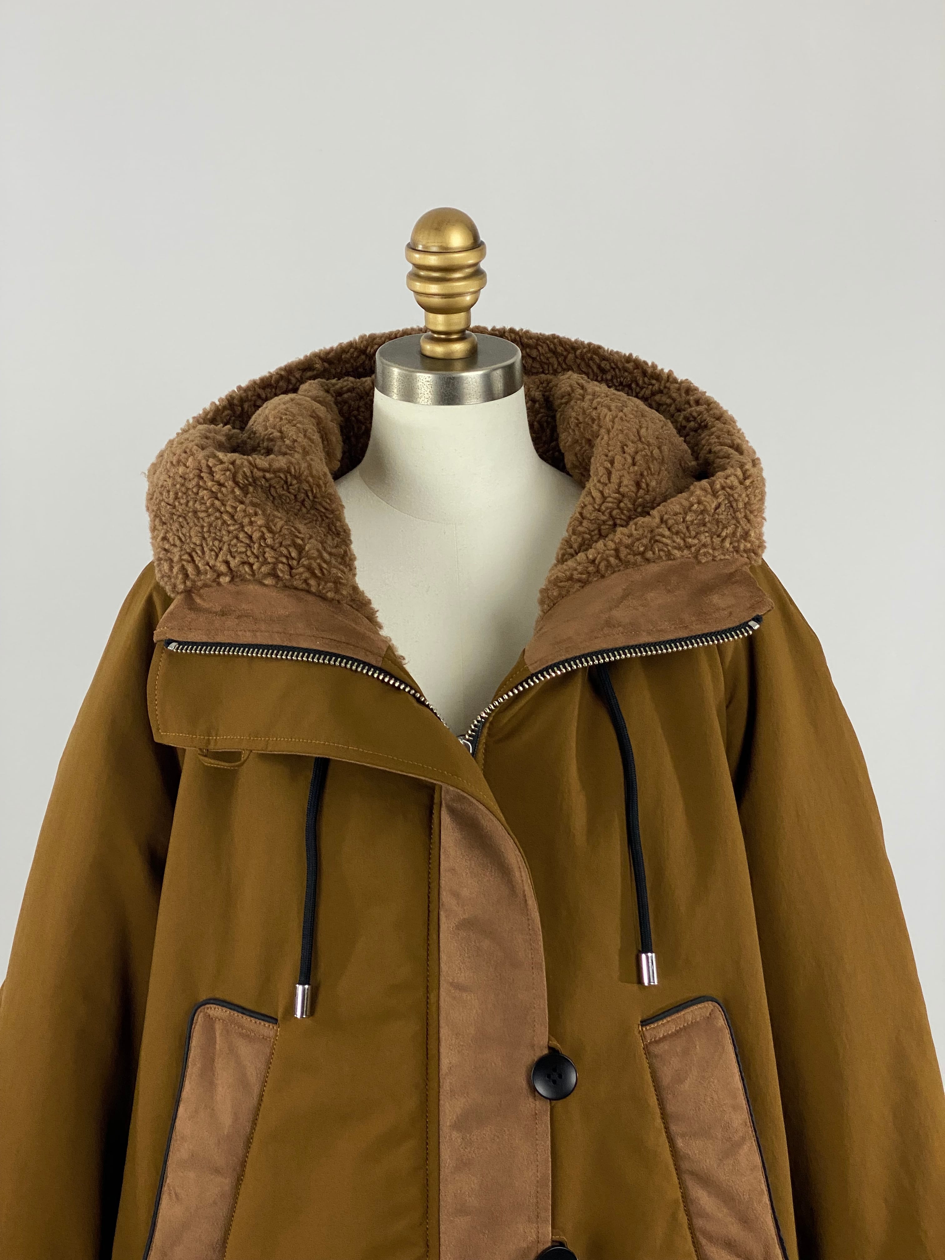 裾にバイカラースエードをドッキングしたアイコニックなデザインのラリアムーらしいフードコート。
