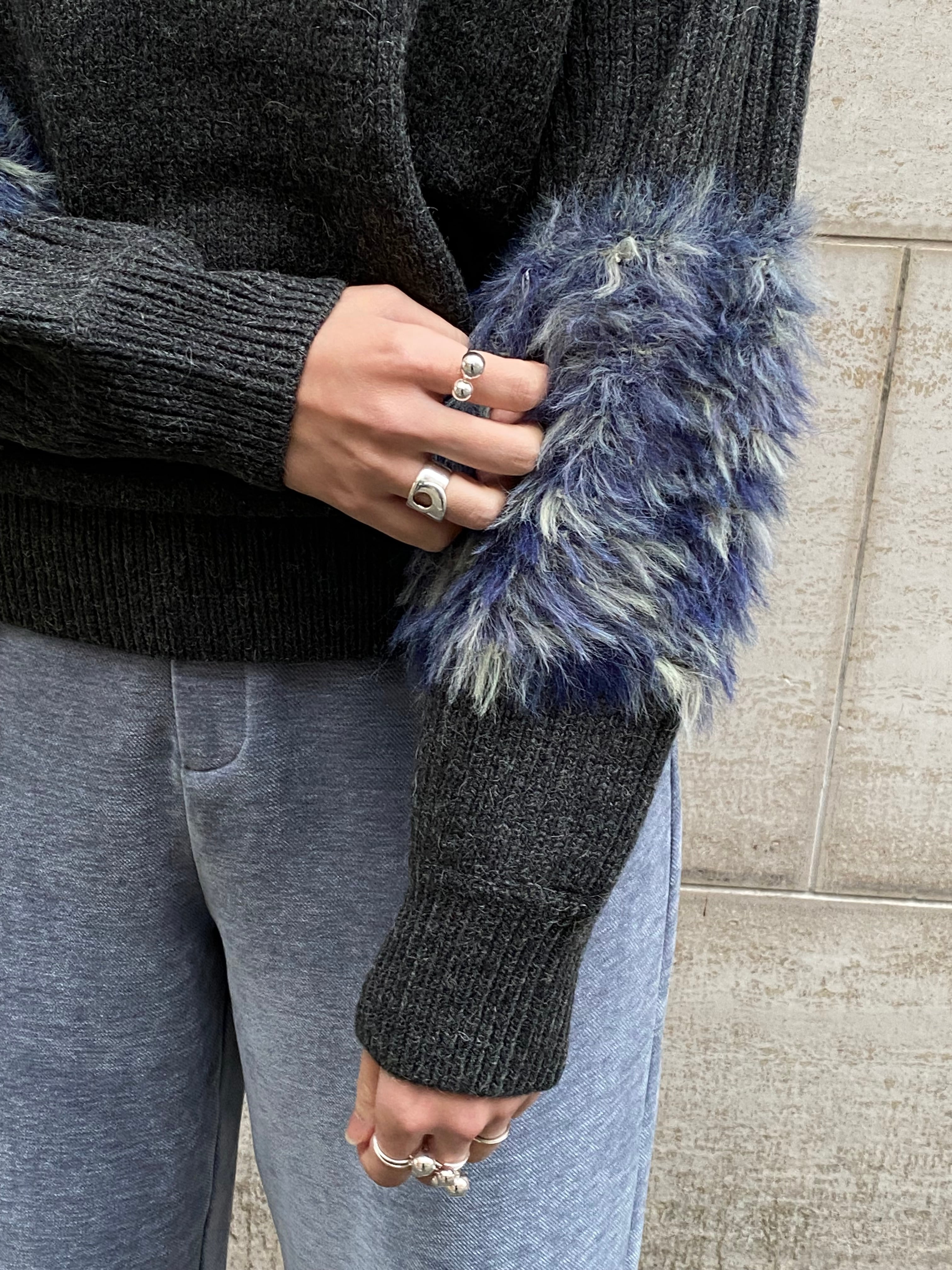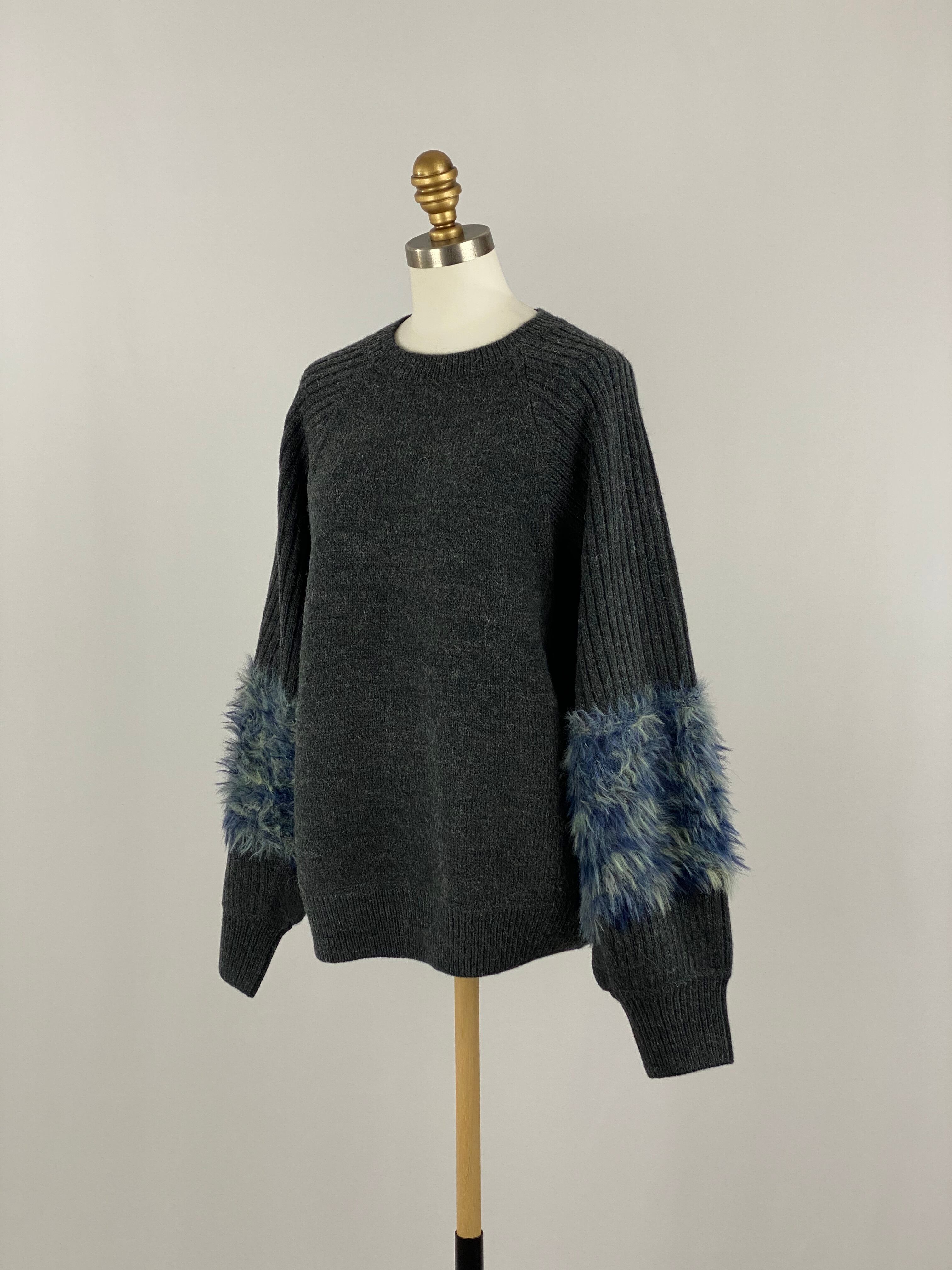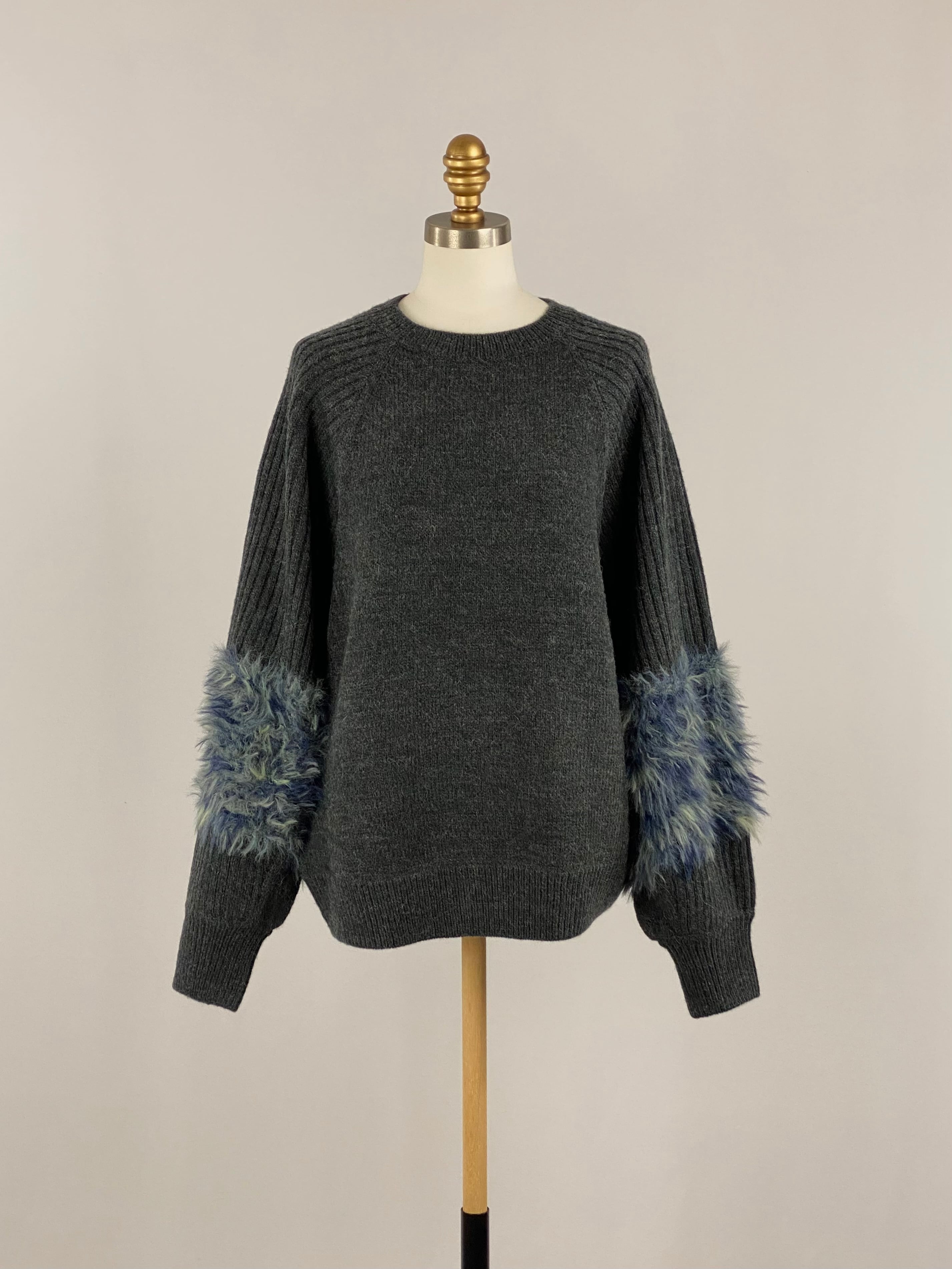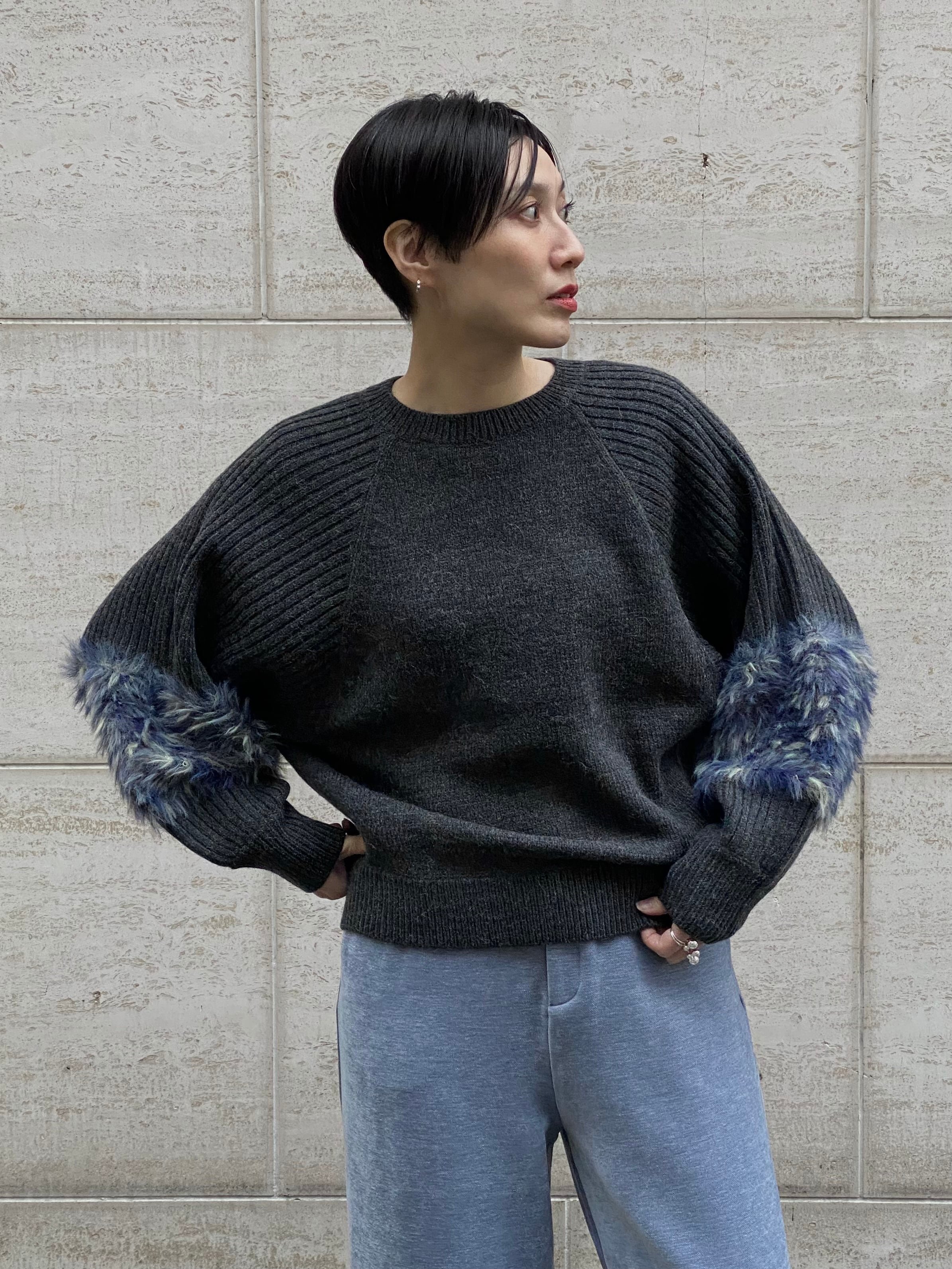 ファースリーブニット|チャコールグレー|Lallia Mu