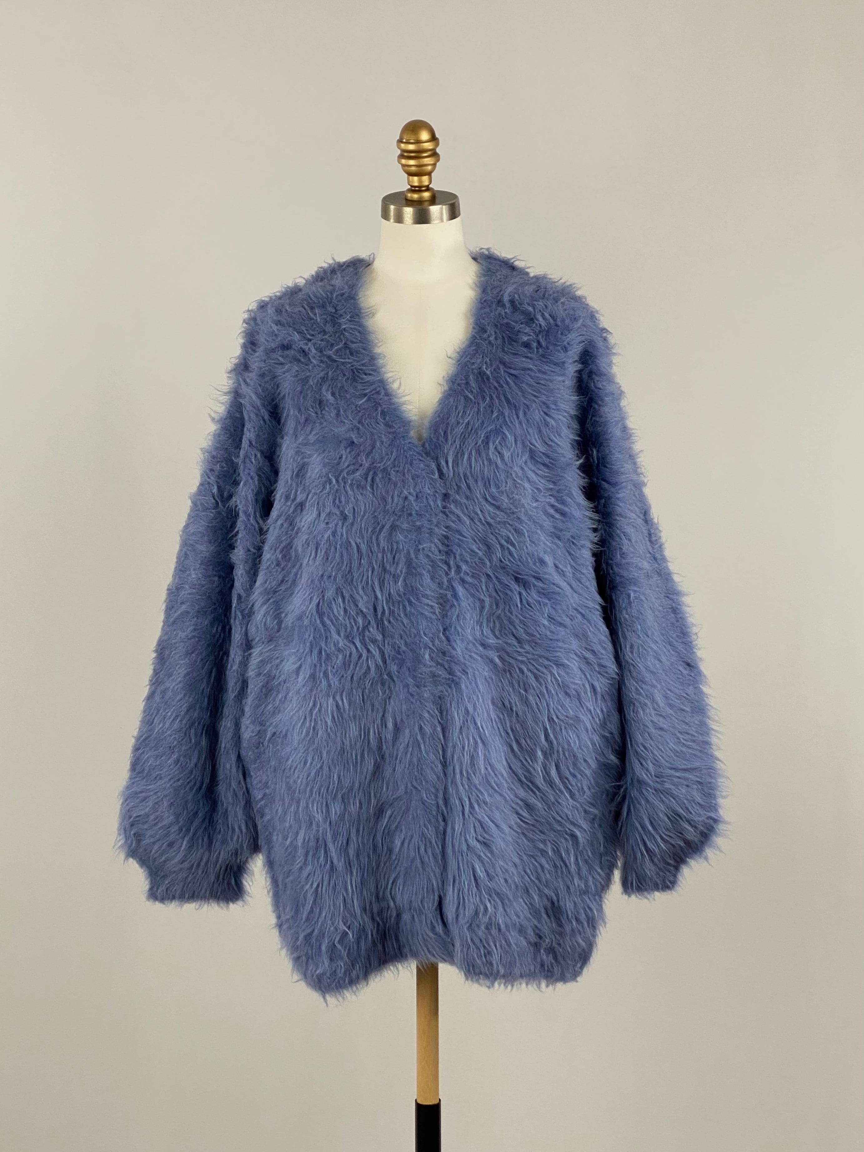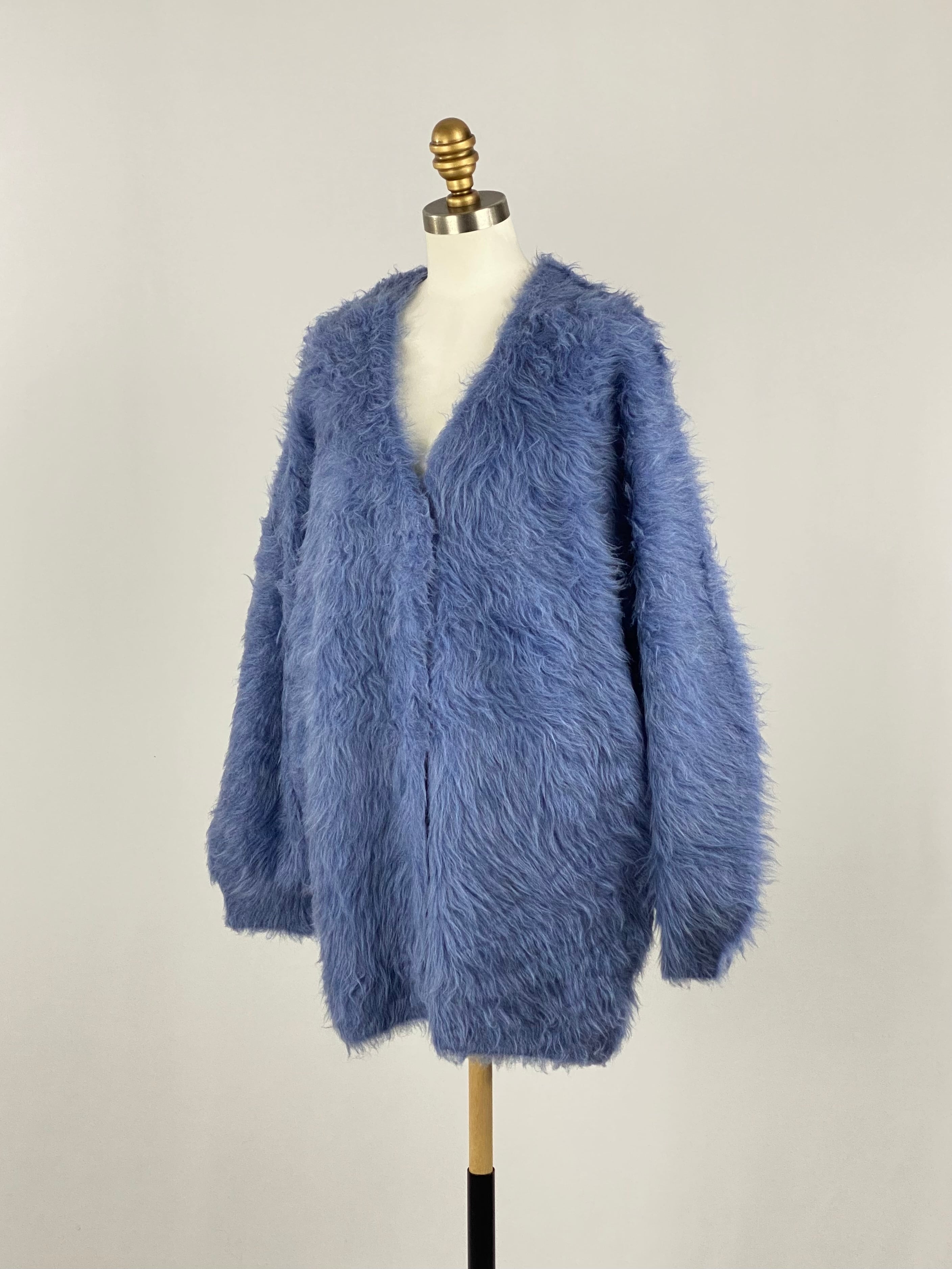 シャギーニットカーディガン|ブルー|Lallia Mu