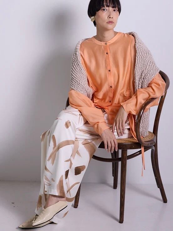 程よく光沢があり、落ち感のある素材なので大人っぽく着こなして頂けます。