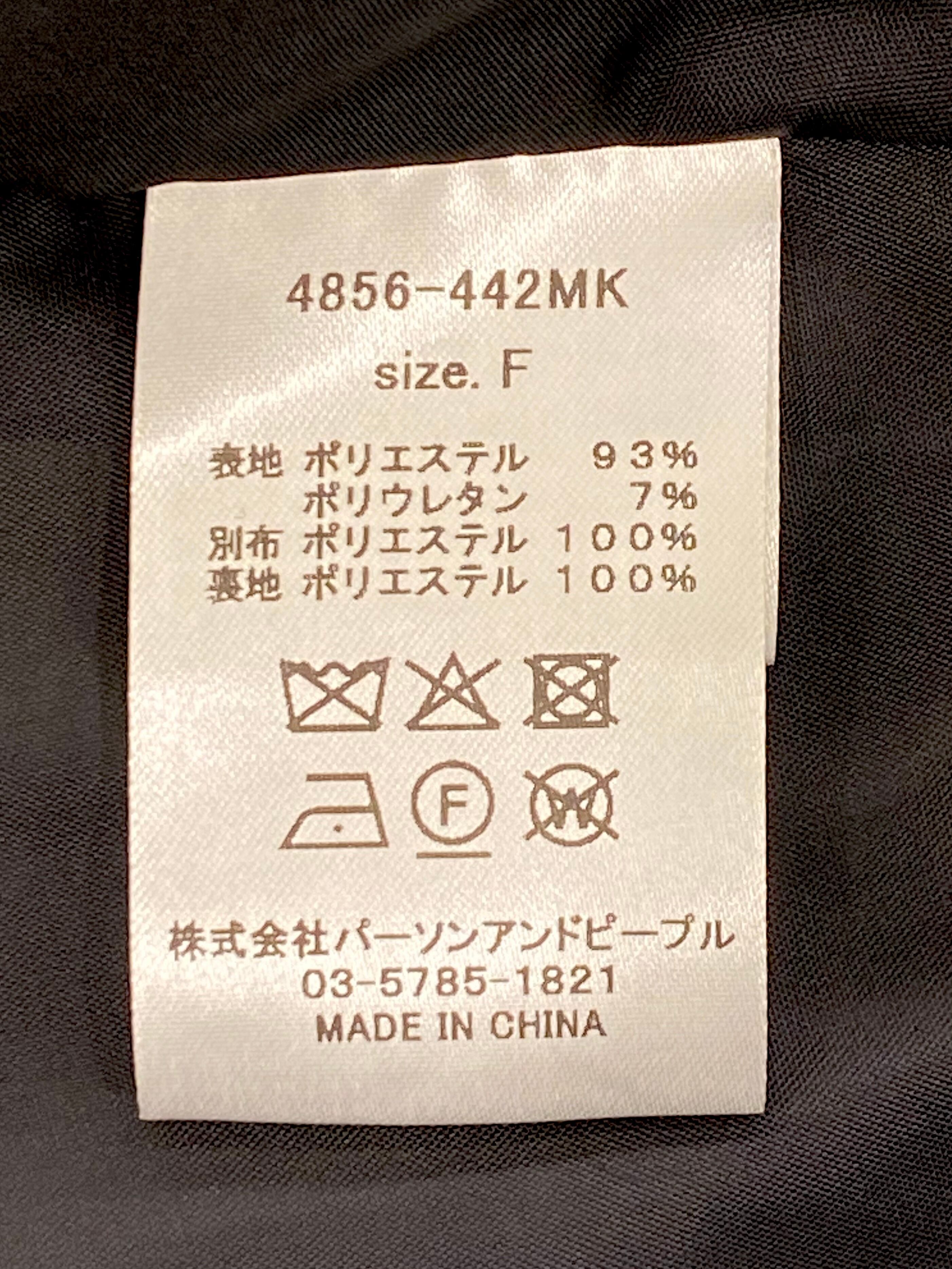 前身頃はすっきりとしたノーカラーデザインで、後にかけて大胆にフレアをいれたシルエットになっています。