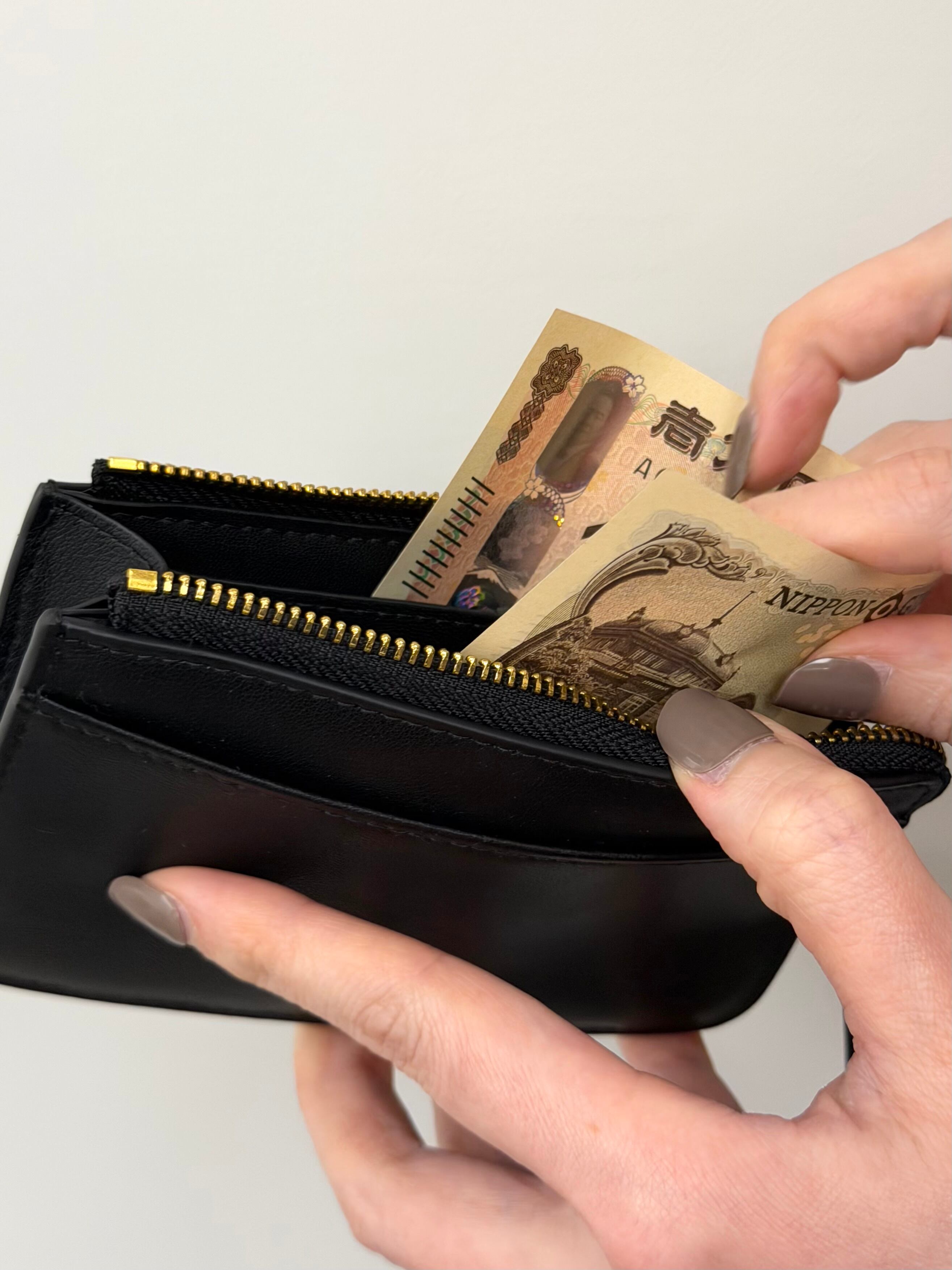 ファスナーポケット内にはコインやアクセサリーを仕切って入れられ、ストレスフリーな使い心地を追求しました。