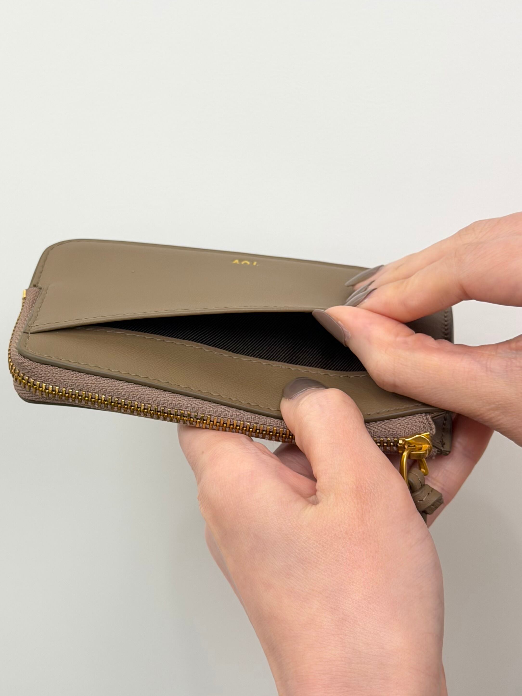 ファスナーポケット内にはコインやアクセサリーを仕切って入れられ、ストレスフリーな使い心地を追求しました。