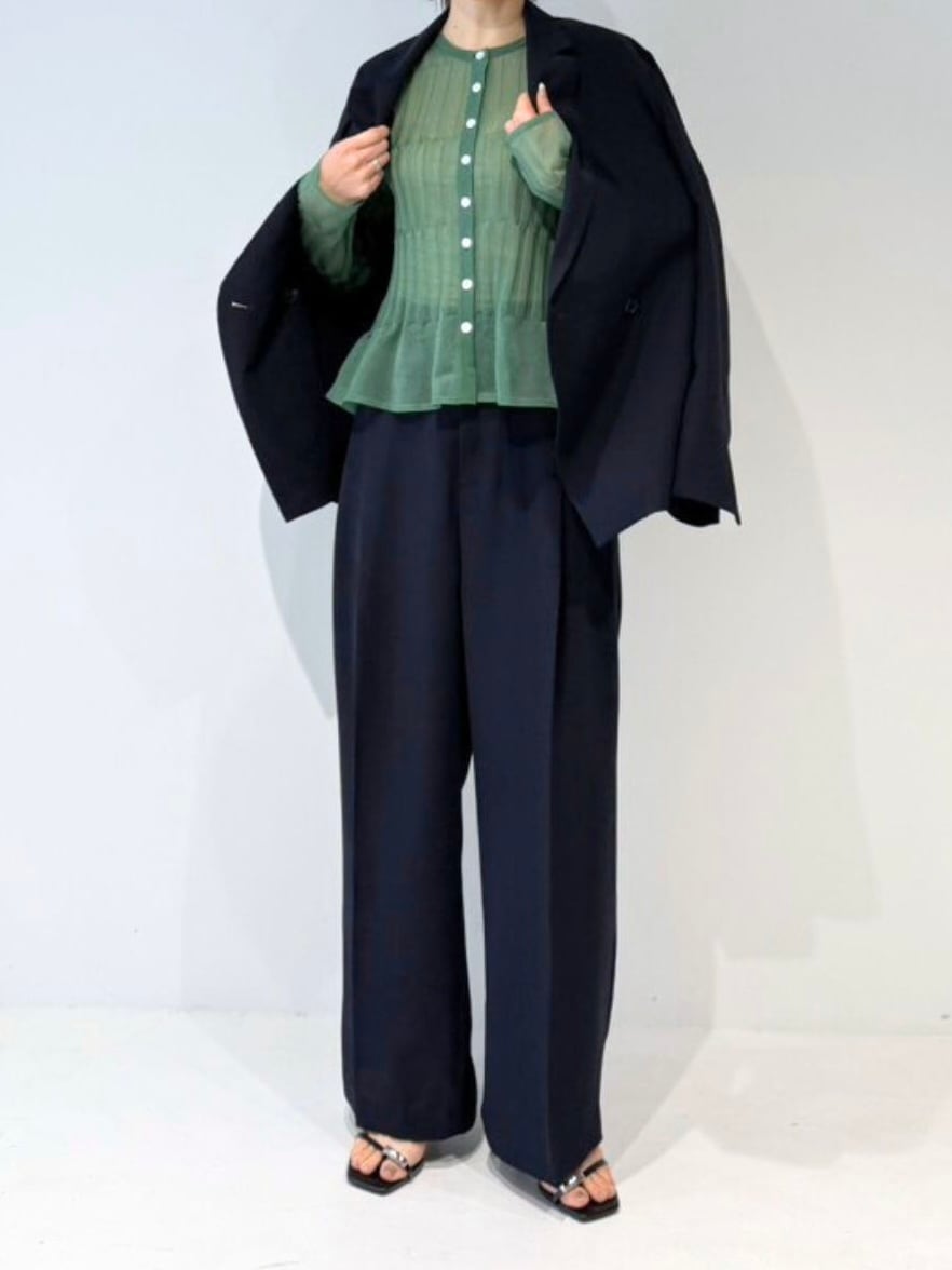 同シリーズのワイドパンツと合わせることで、肩の力を抜いて着られる、洗練されたリラックススタイルが完成します。