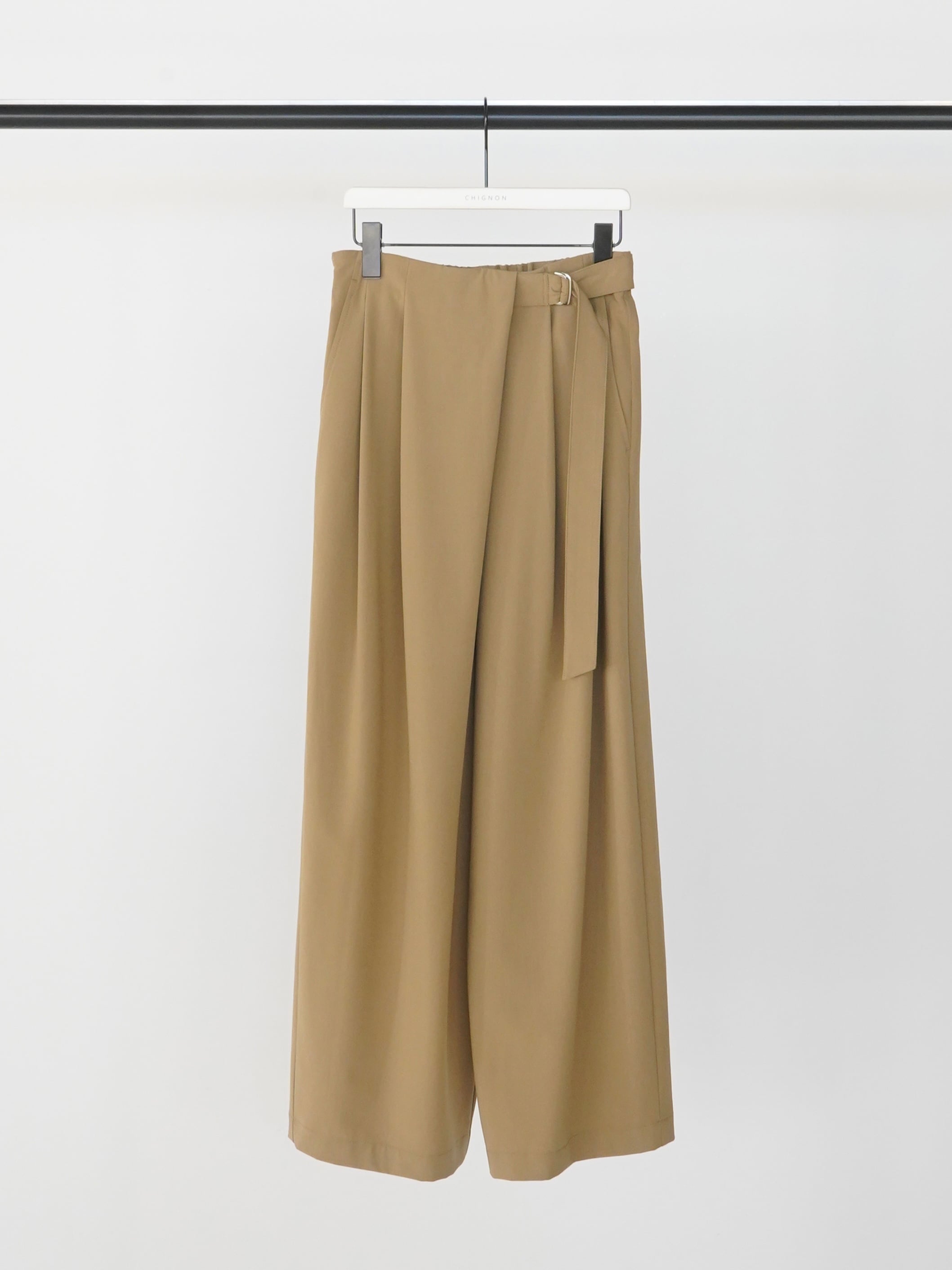 梳毛調ベルト付きラップパンツ|キャメル|CHIGNON